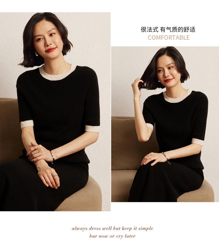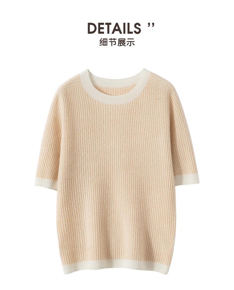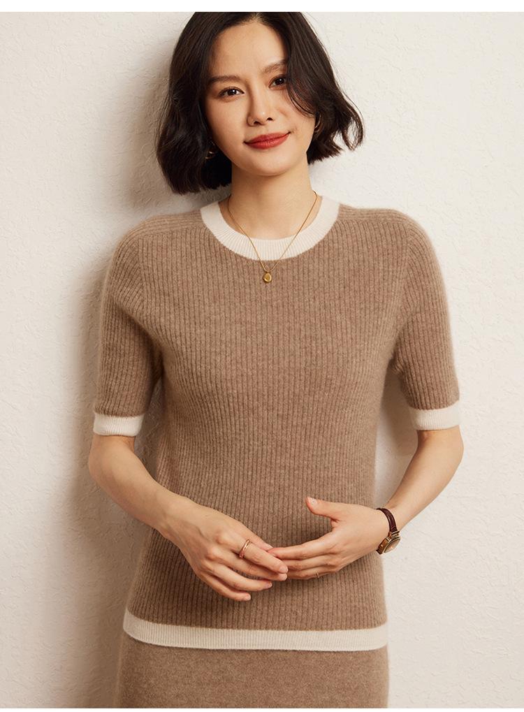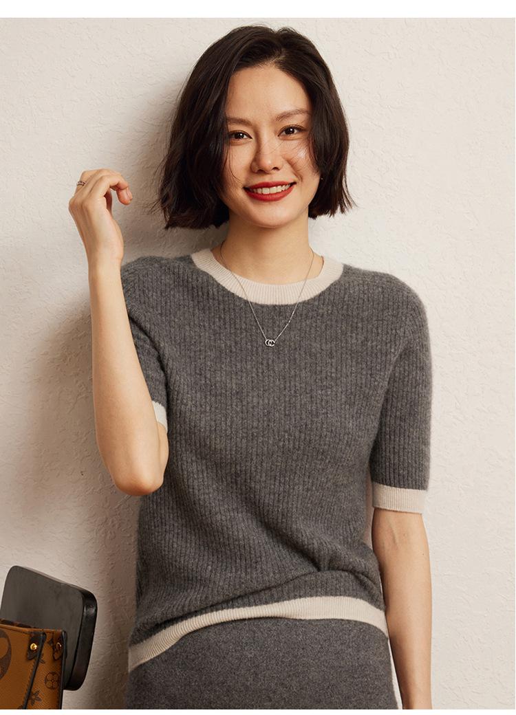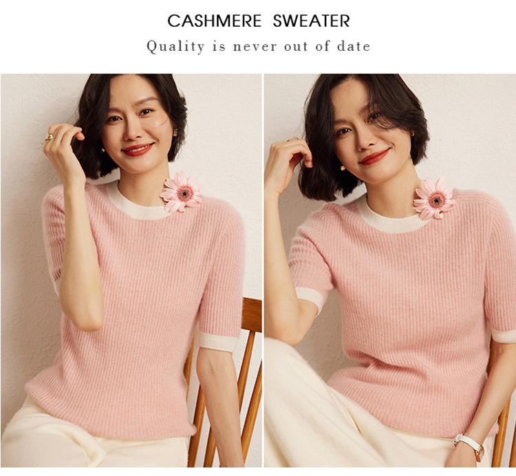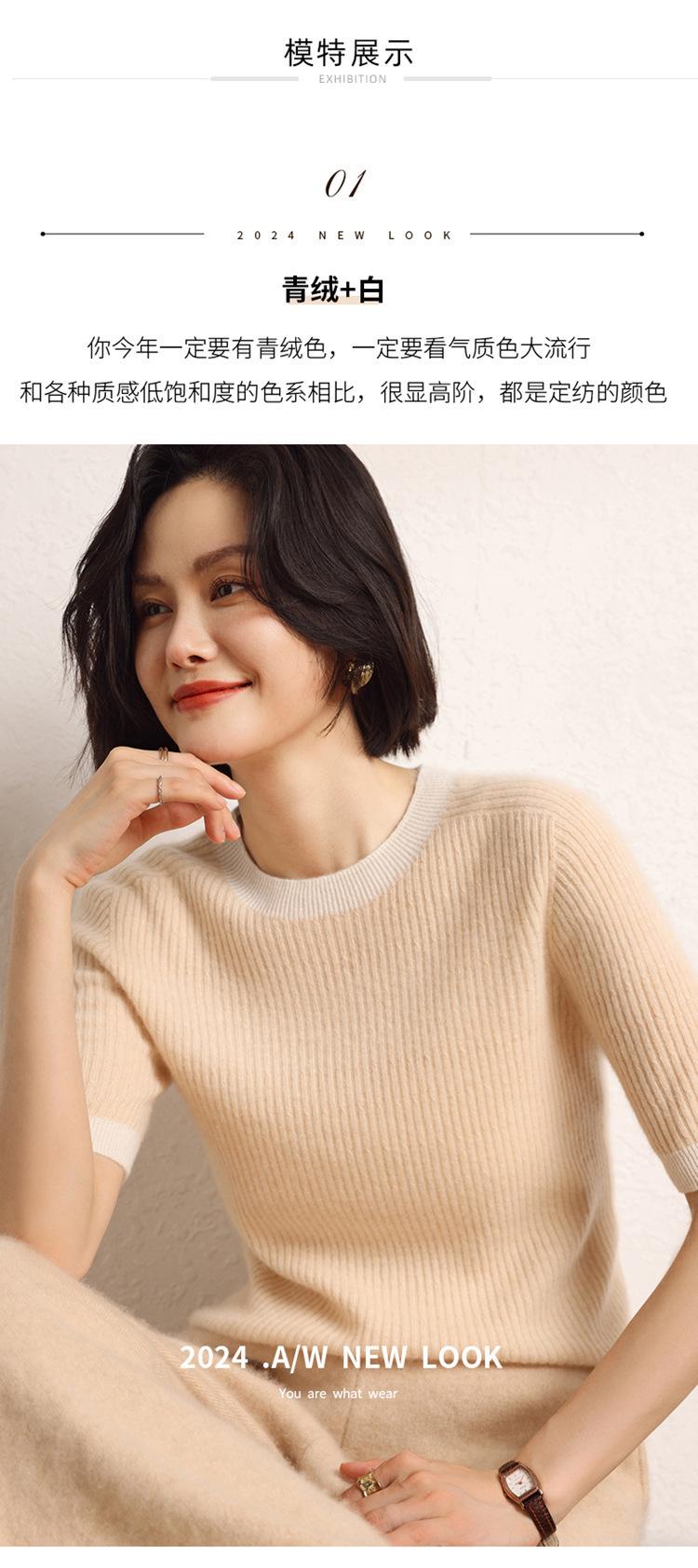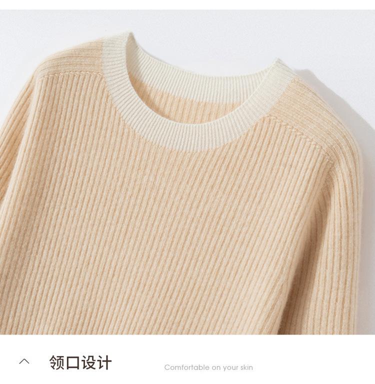 Cachemira 2024 otoño e invierno nuevo jersey de cuello redondo de dos piezas falsas corto ajustado de fondo para mujer