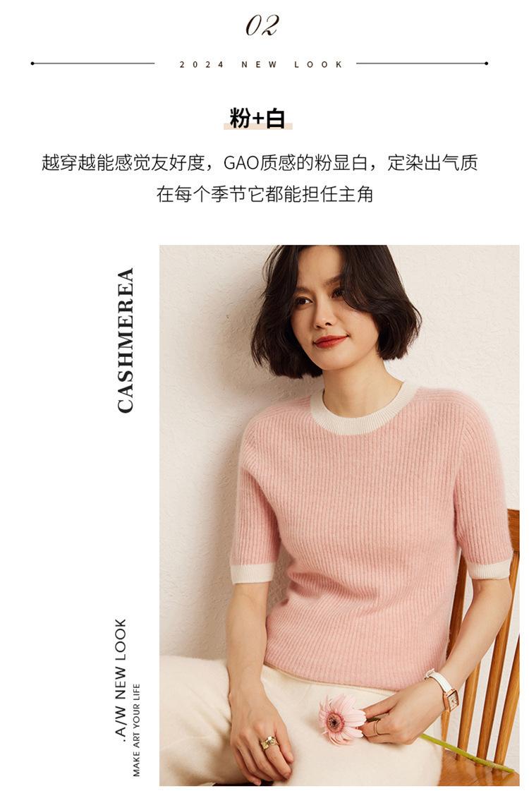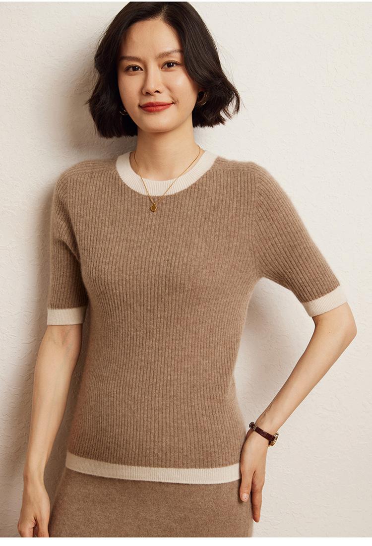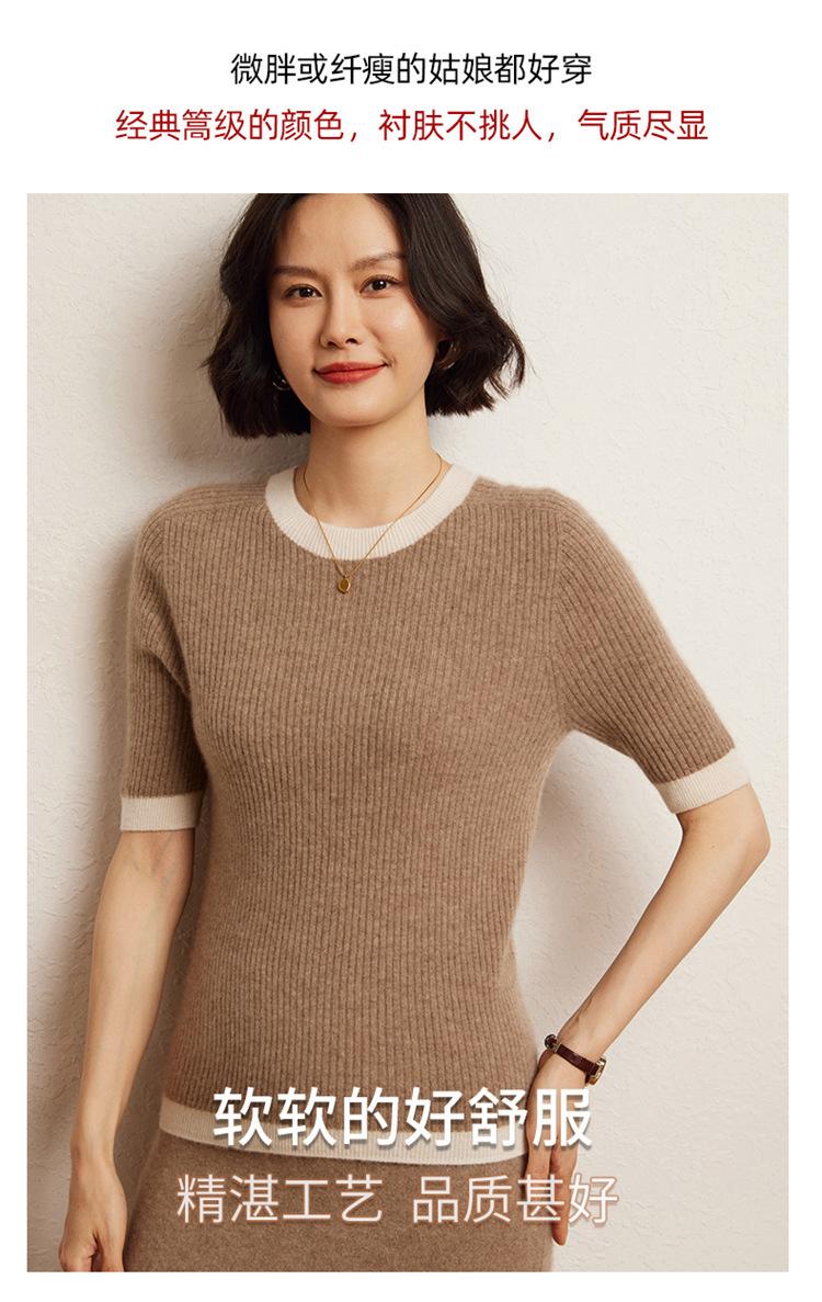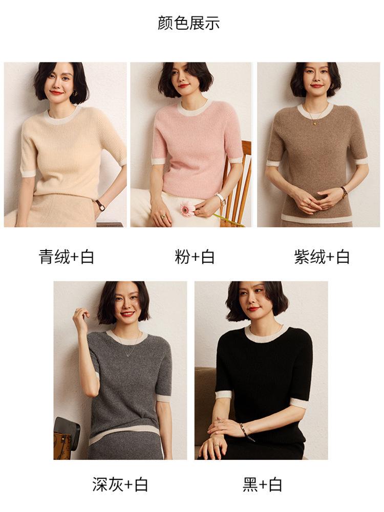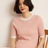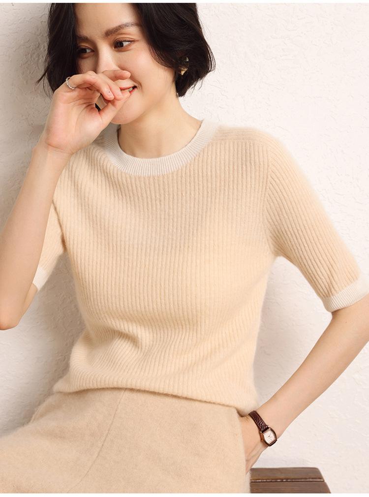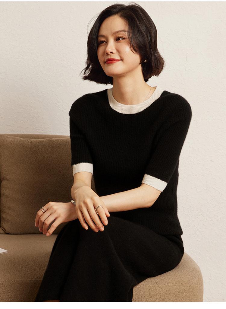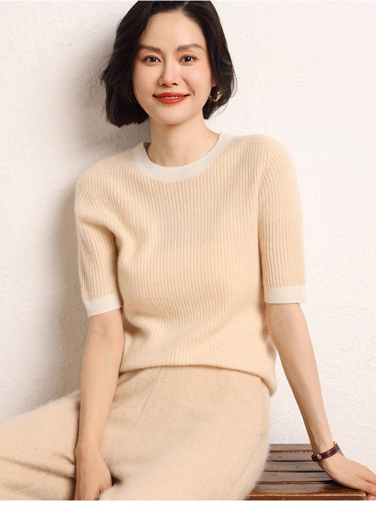 Cachemira 2024 otoño e invierno nuevo jersey de cuello redondo de dos piezas falsas corto ajustado de fondo para mujer