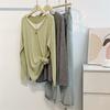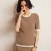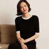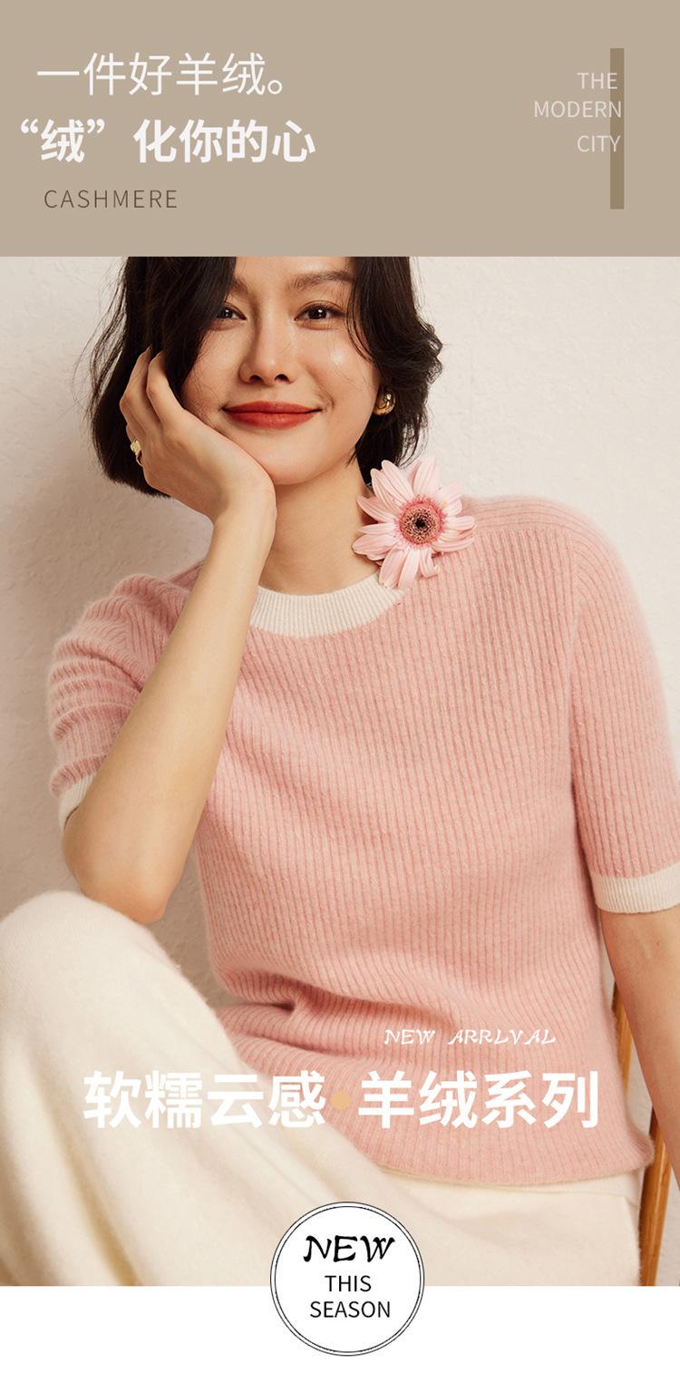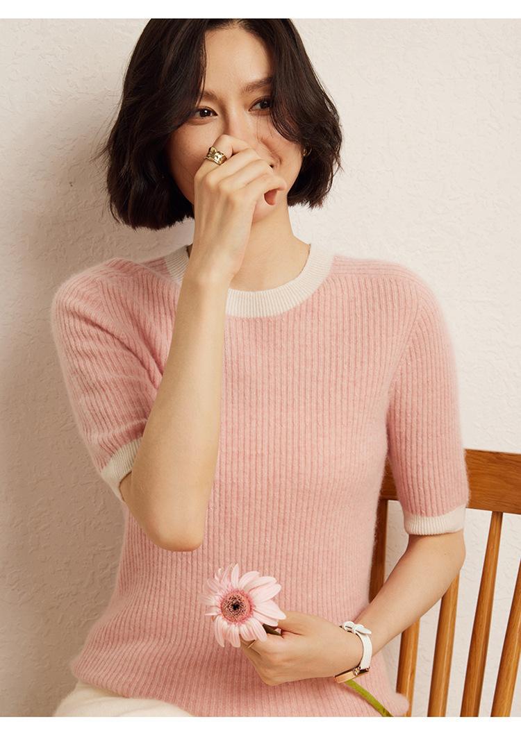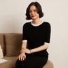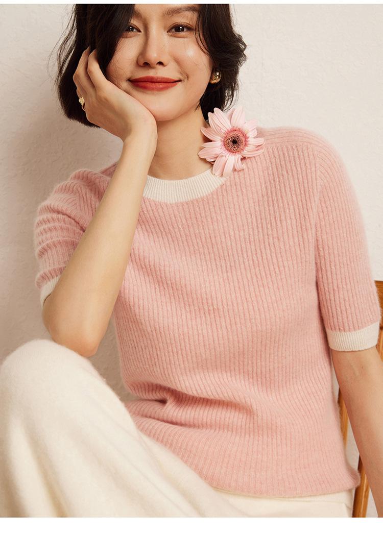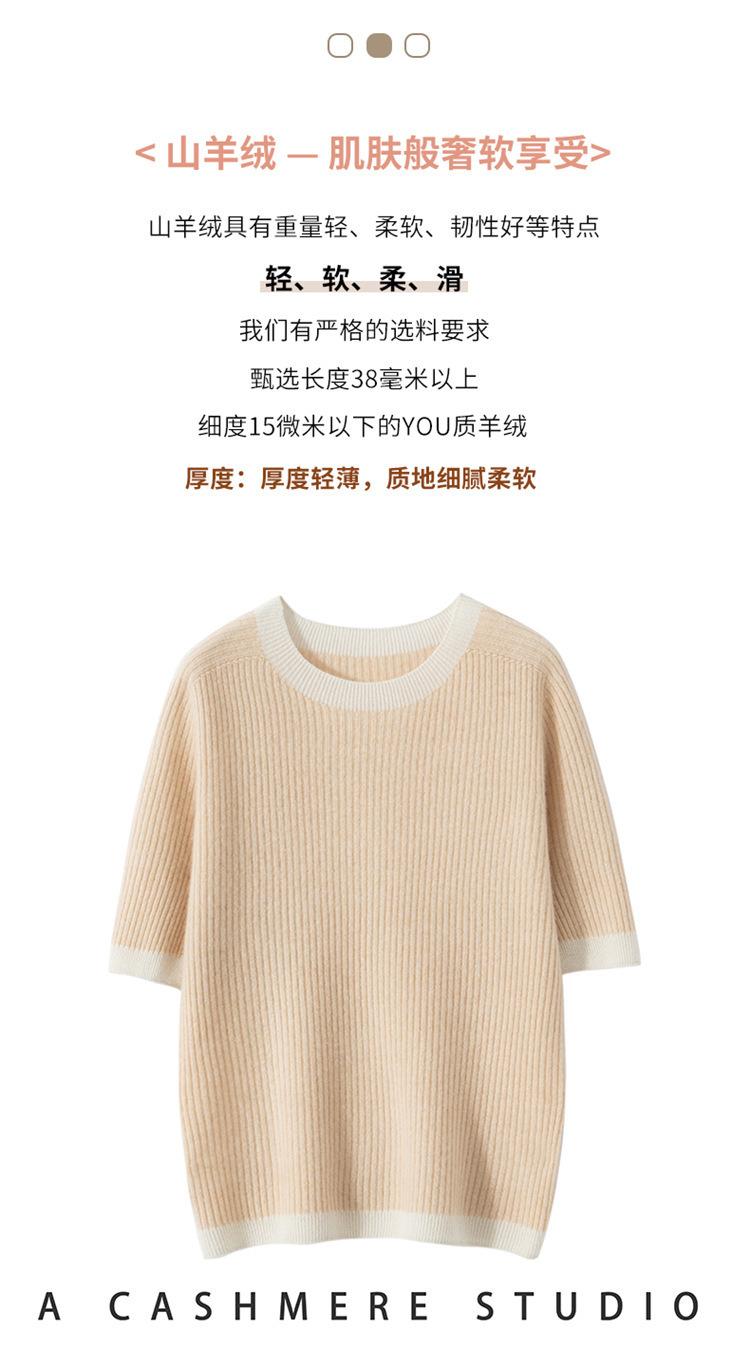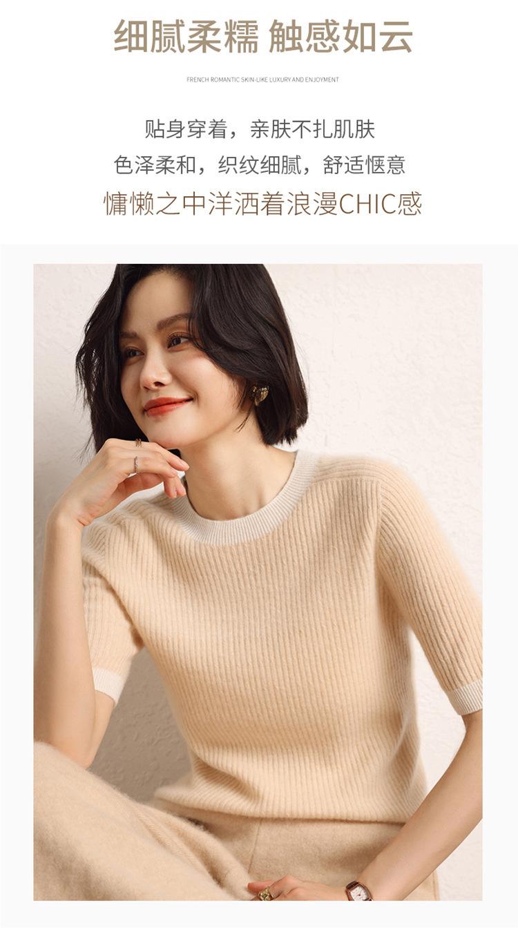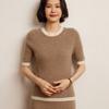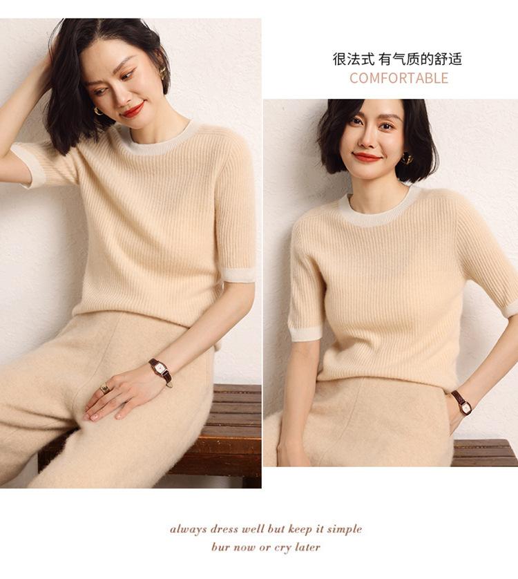 Cachemira 2024 otoño e invierno nuevo jersey de cuello redondo de dos piezas falsas corto ajustado de fondo para mujer
