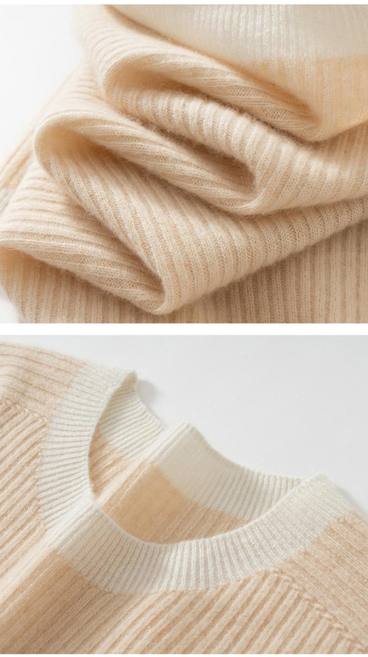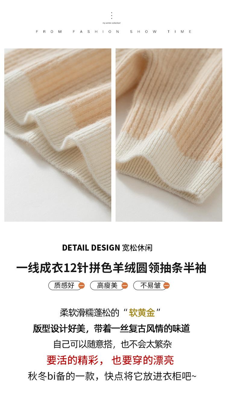 Suave y Cerosa Cachemira 2025 Otoño e Invierno Nuevo para Mujer Cuello Redondo Falso Dos Piezas Camiseta a Rayas Corta Ajustada Ropa de Punto para Fondo