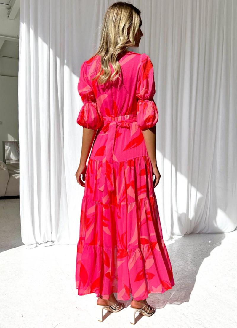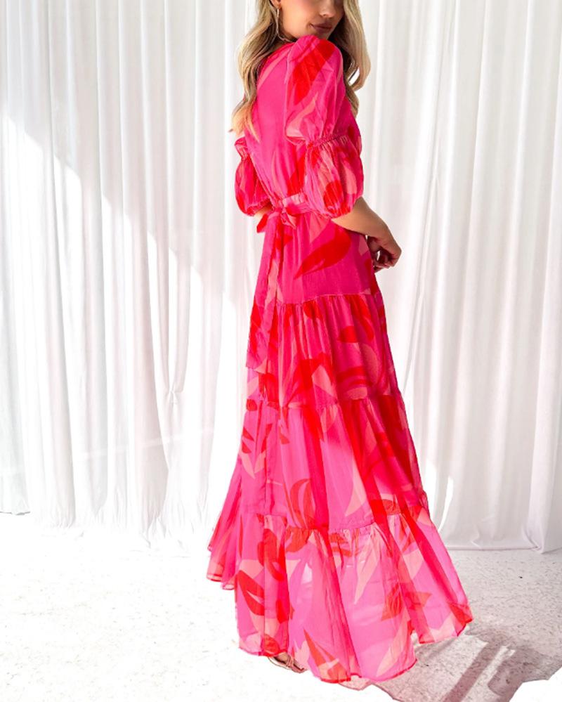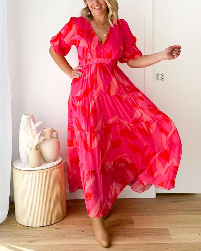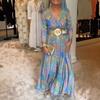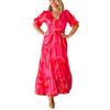 Vestido de mujer con escote en V y cintura estampada con temperamento transfronterizo de Amazon para Europa y Estados Unidos, novedad de verano de 2024