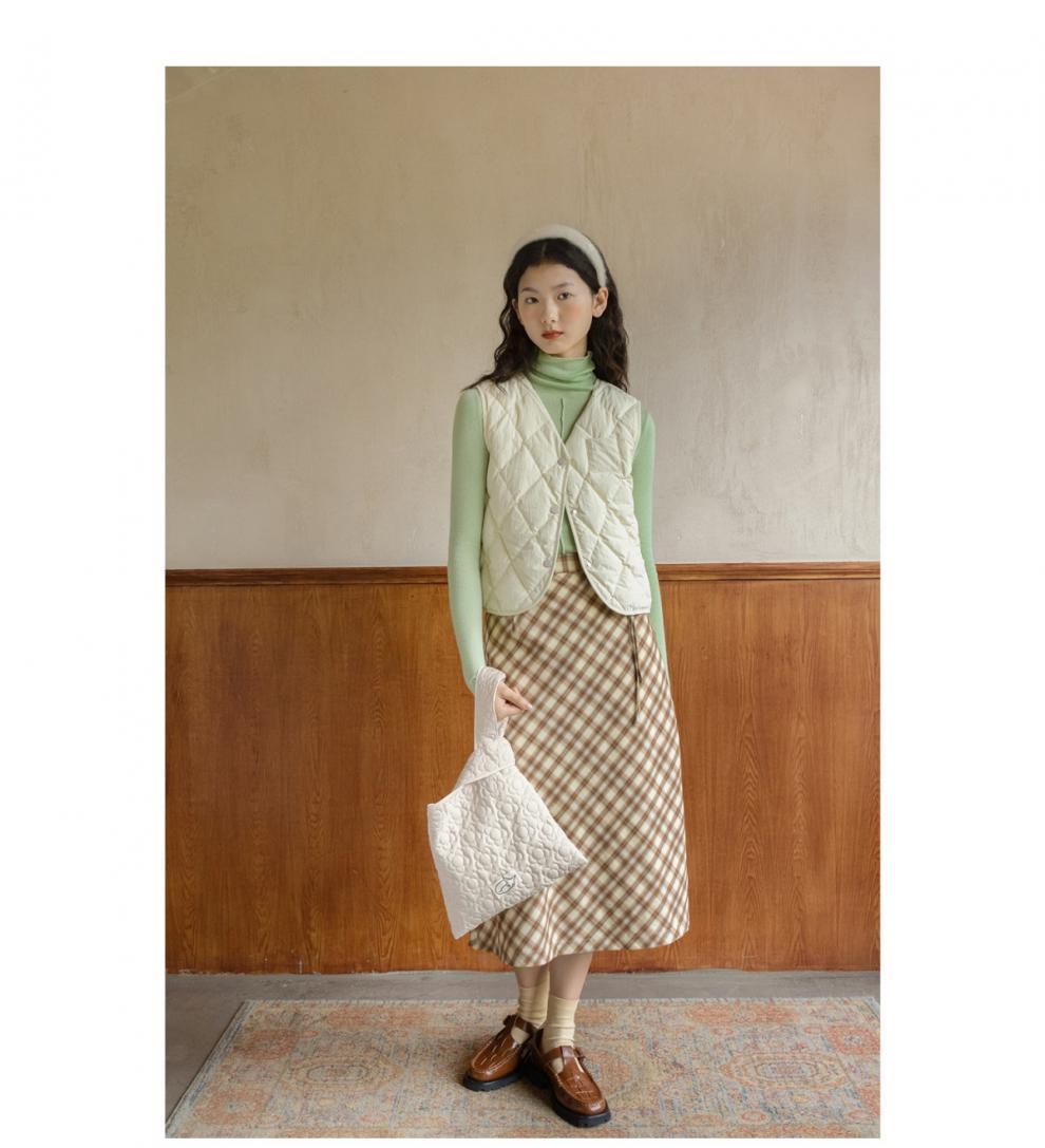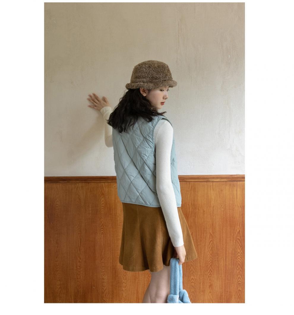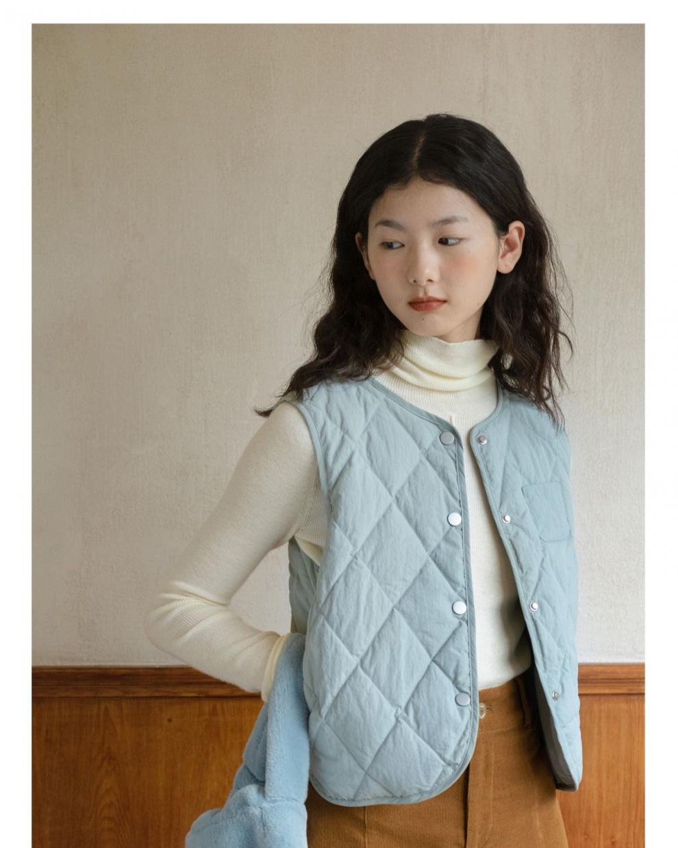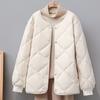 Chaqueta acolchada de algodón con rombos bicolor, chaqueta acolchada de algodón, chaleco pequeño, cuello redondo, abrigo superior plegado, abrigo cálido para mujer otoño e invierno