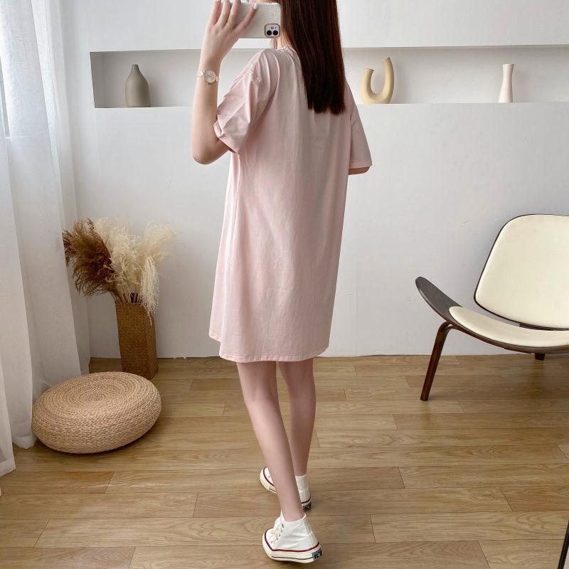 Camiseta de lactancia de verano, camiseta de manga corta y longitud media, ropa de lactancia posparto para mamás atractivas, vestido de lactancia de moda de verano.
