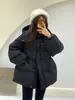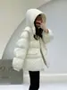 2025 Ropa de Invierno Nueva Estilo Coreano con Capucha Cintura hacia abajo Chaqueta para Mujer de Largo Medio Casual Suelta Acolchada con Plumón de Pato Blanco