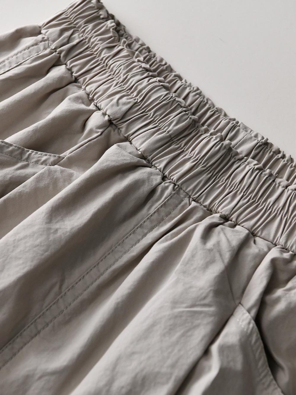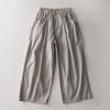 Pantalones casuales sencillos de estilo japonés para mujer, de algodón, con cintura holgada y bolsillos grandes, con pierna recta y plisada de color liso.