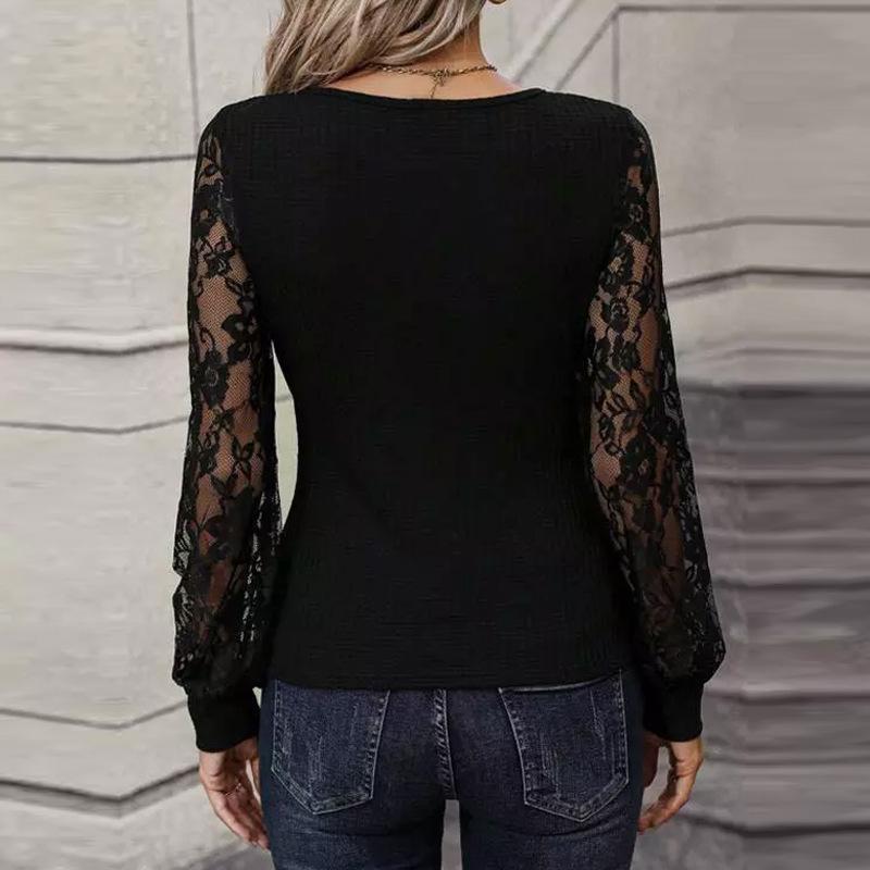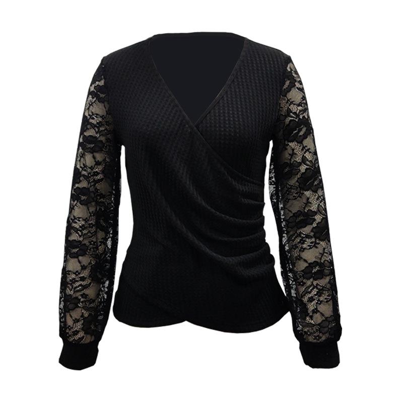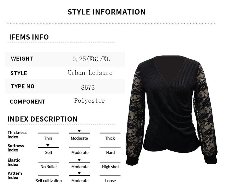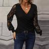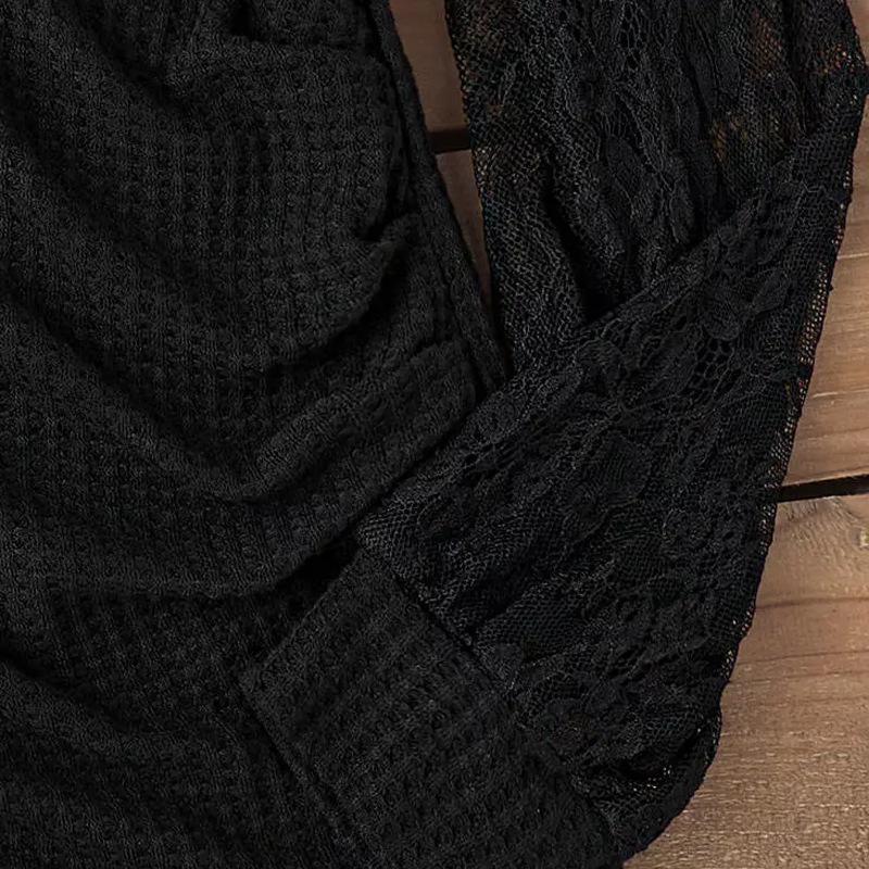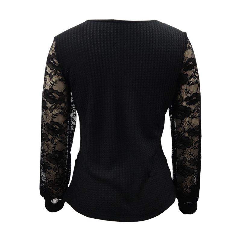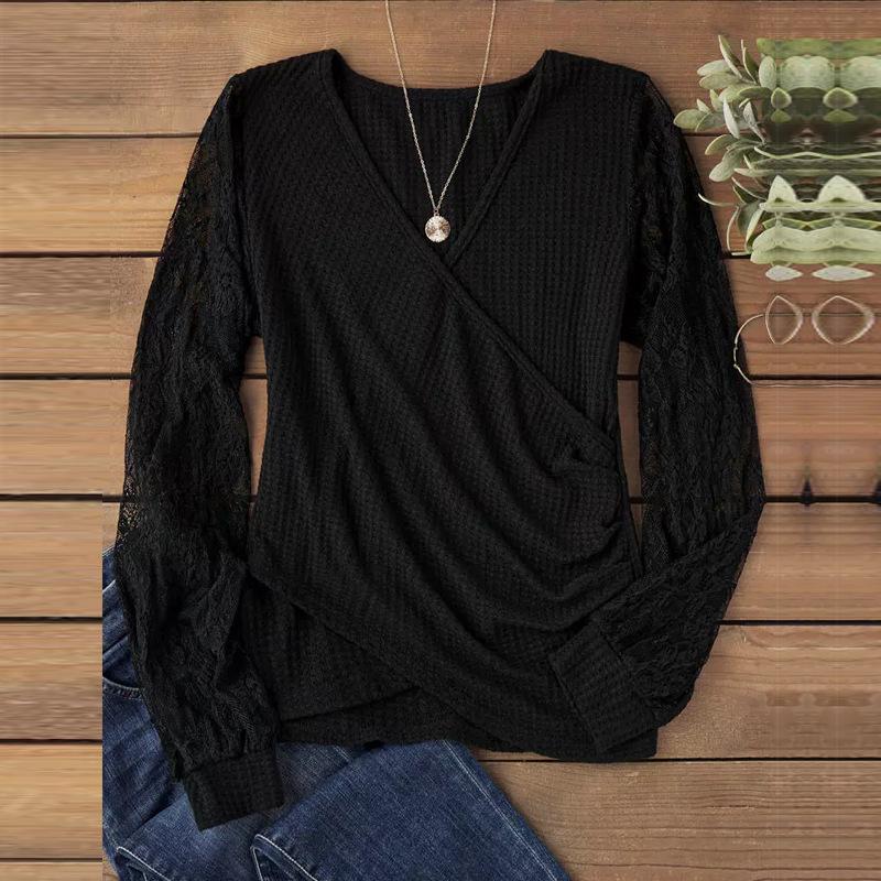 Camiseta de manga larga con encaje de gofre de nueva moda para mujer de Amazon, comercio exterior transfronterizo europeo y americano