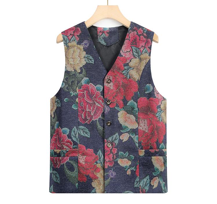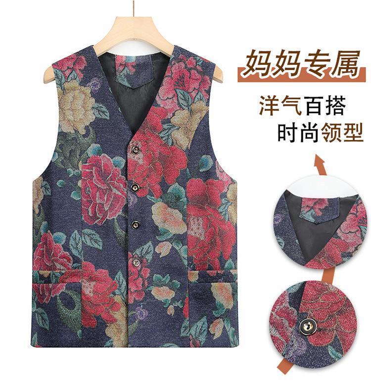 Chaleco de primavera y otoño para madres, chaleco informal para señoras mayores, chaleco estampado sin mangas para abuelas