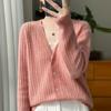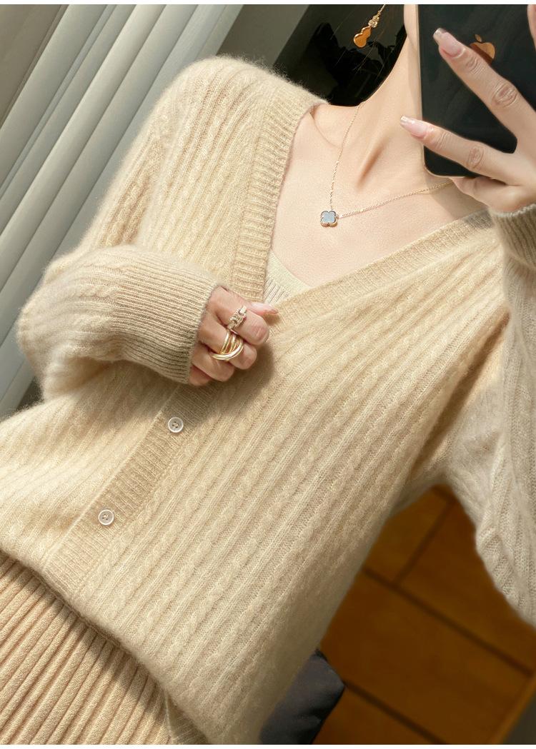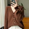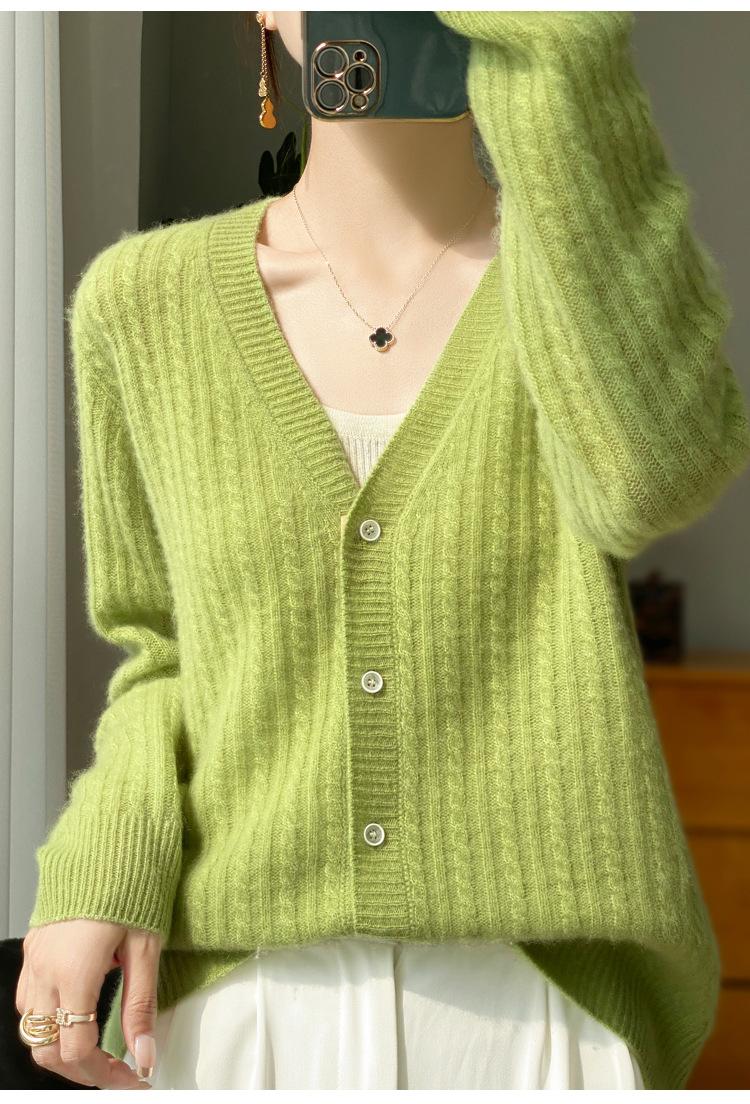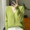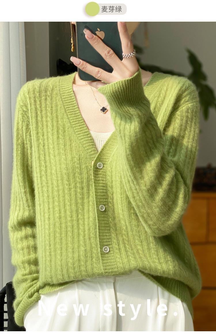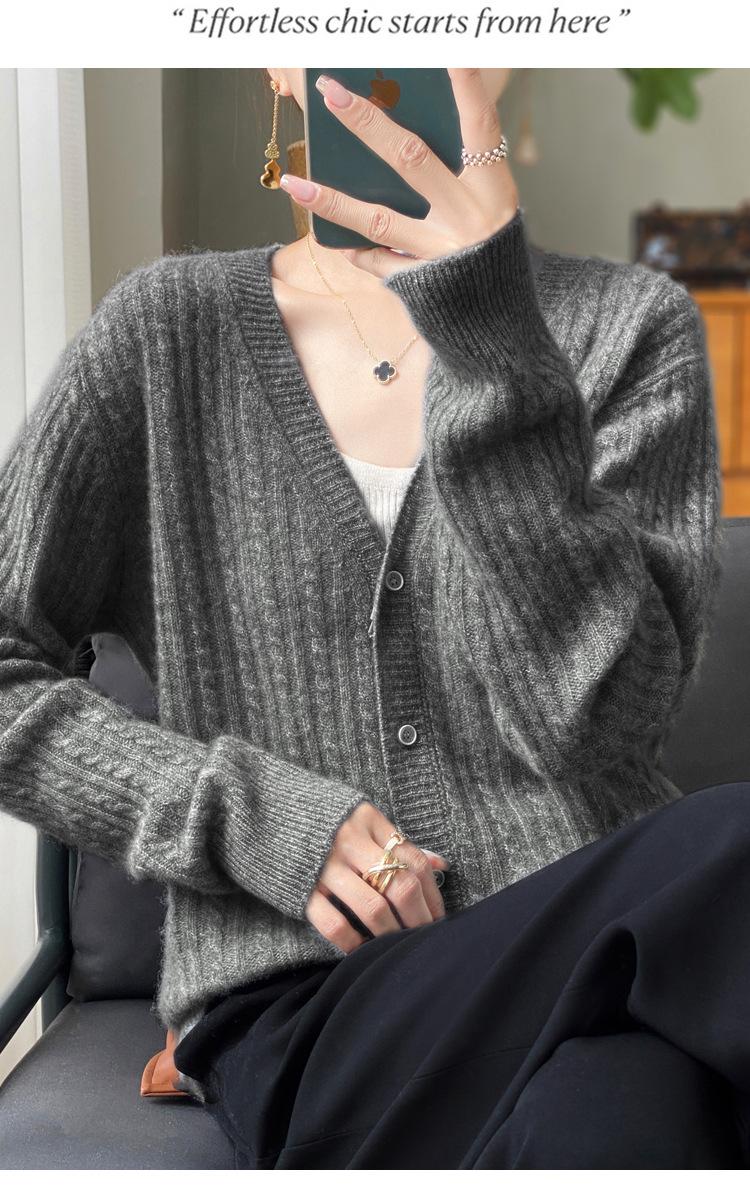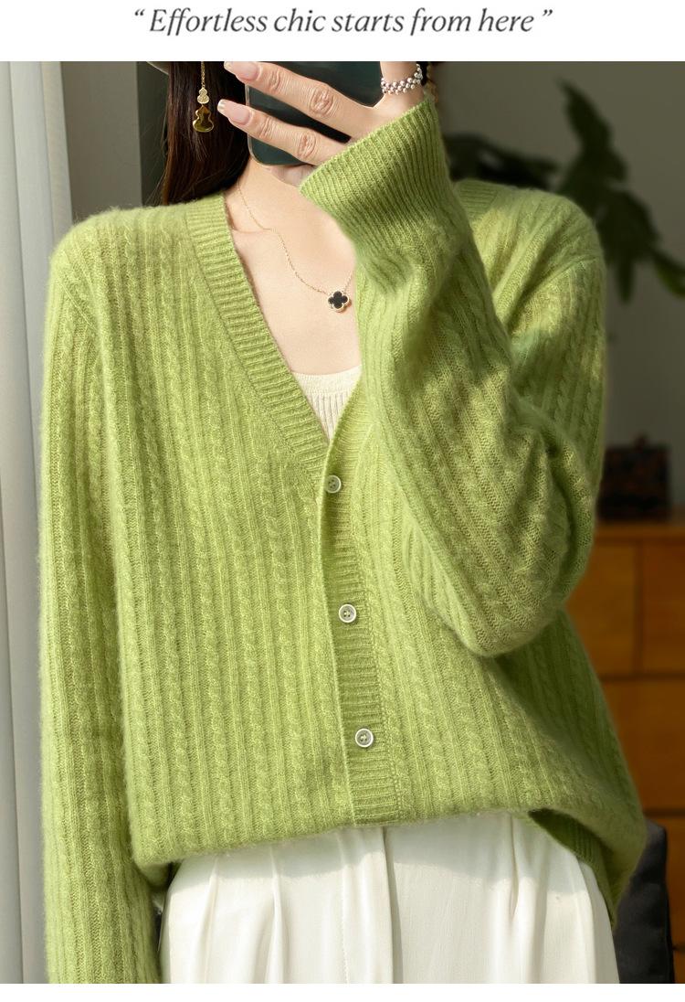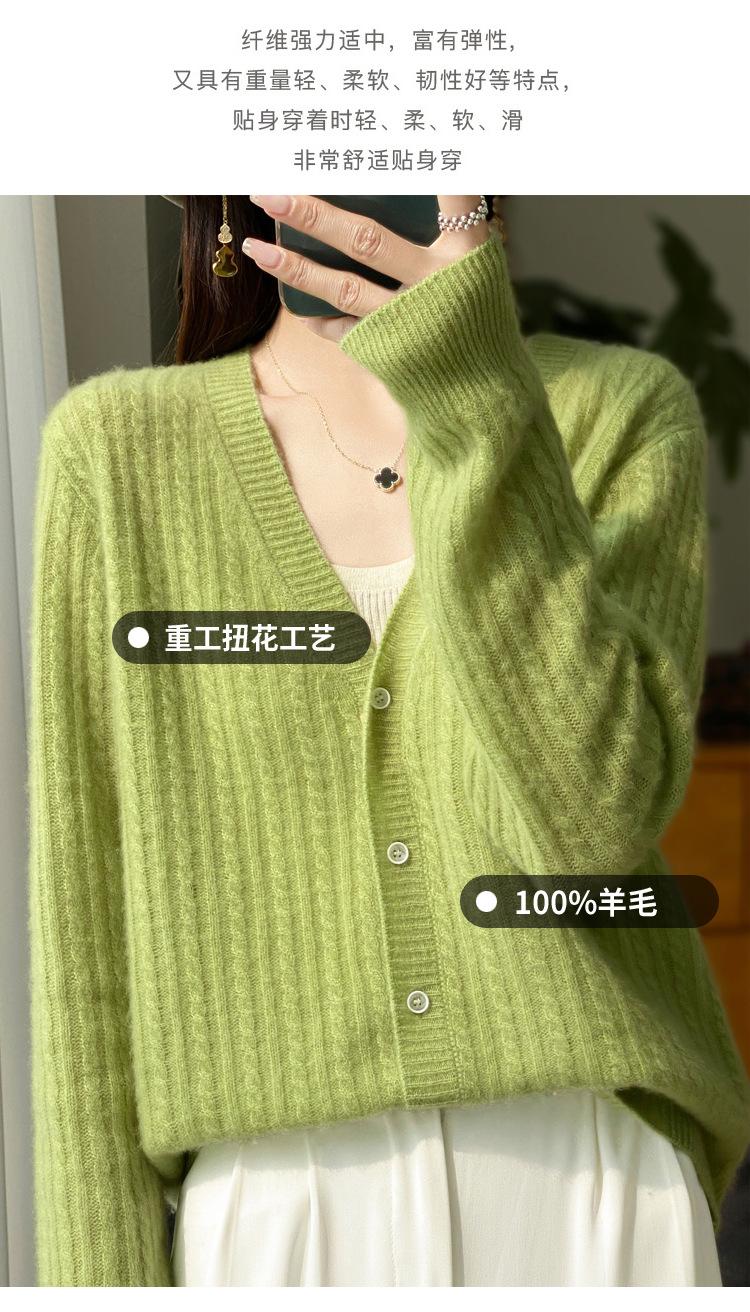 Lana Pura 2025 Otoño e Invierno Nuevo Cárdigan de Punto de Cable de Color Puro Estilo V Corto Suelto para Mujer Chaqueta de Punto