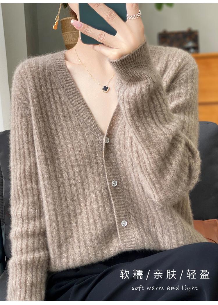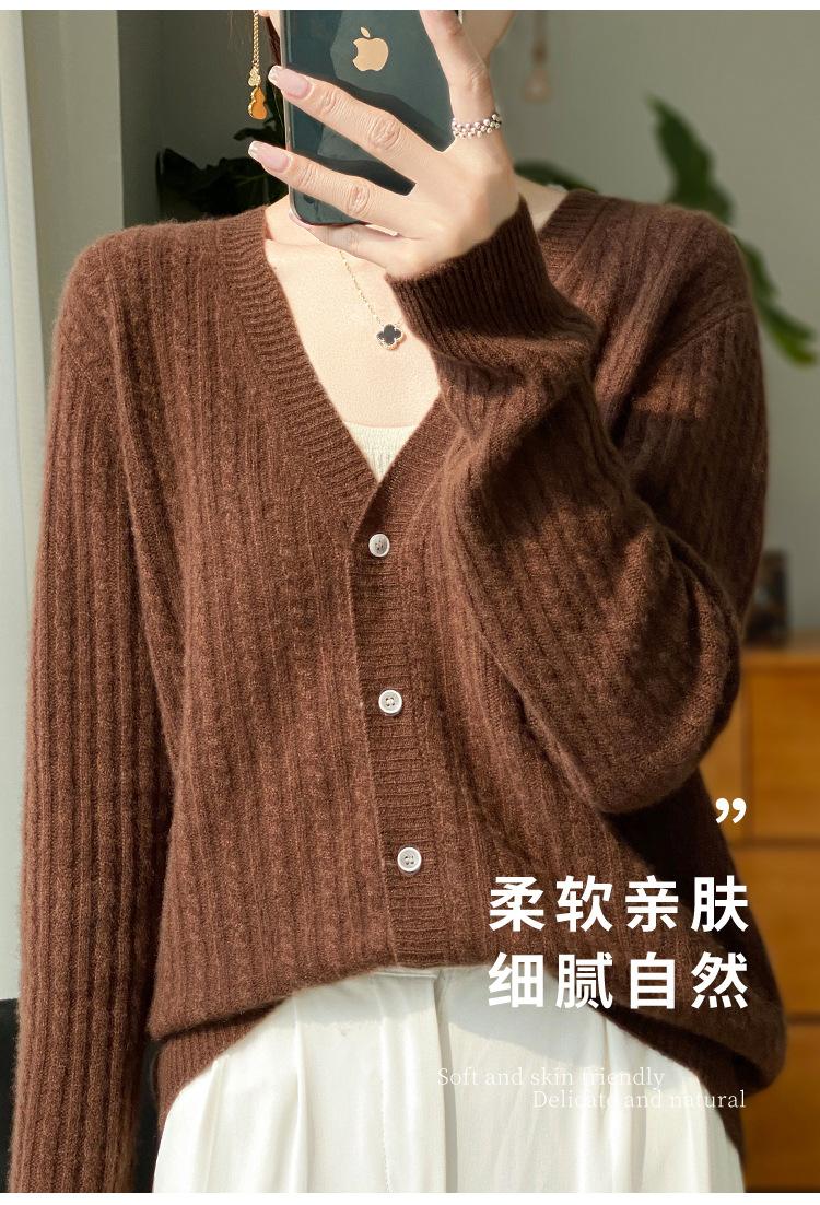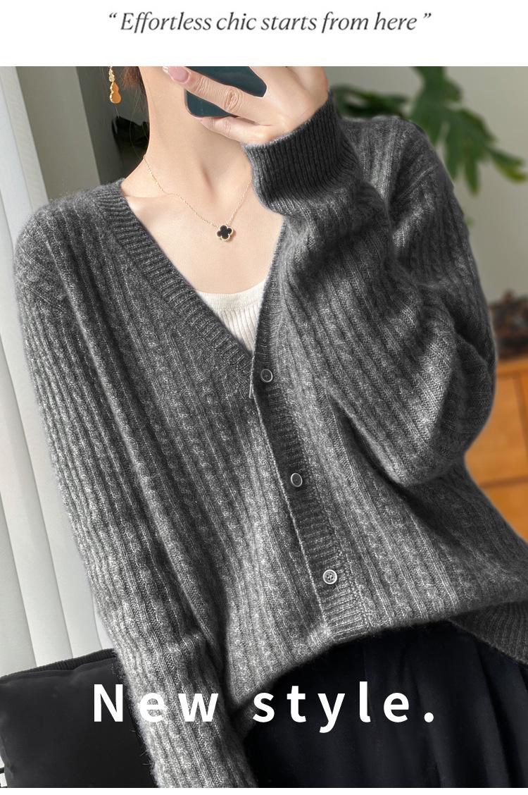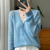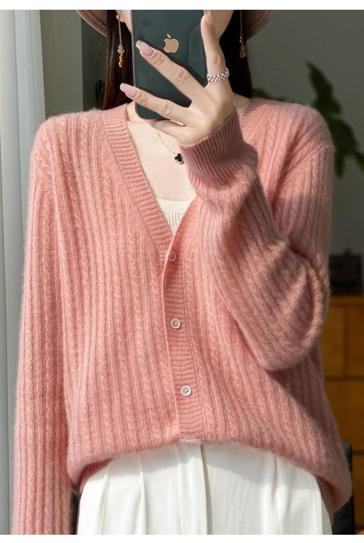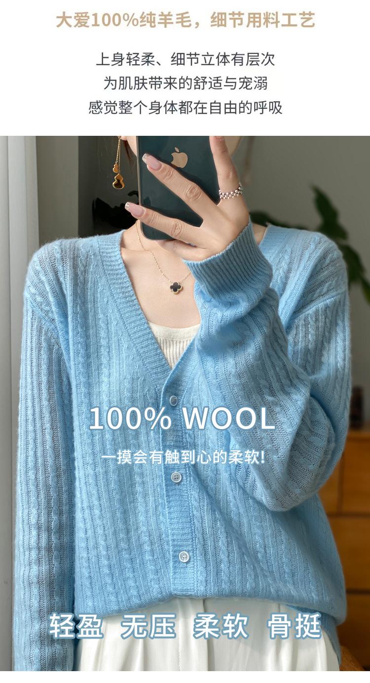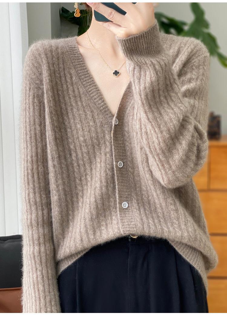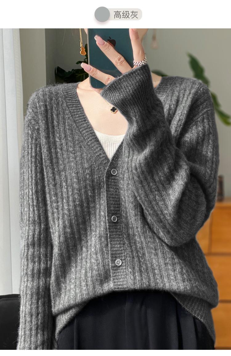 Lana Pura 2025 Otoño e Invierno Nuevo Cárdigan de Punto de Cable de Color Puro Estilo V Corto Suelto para Mujer Chaqueta de Punto