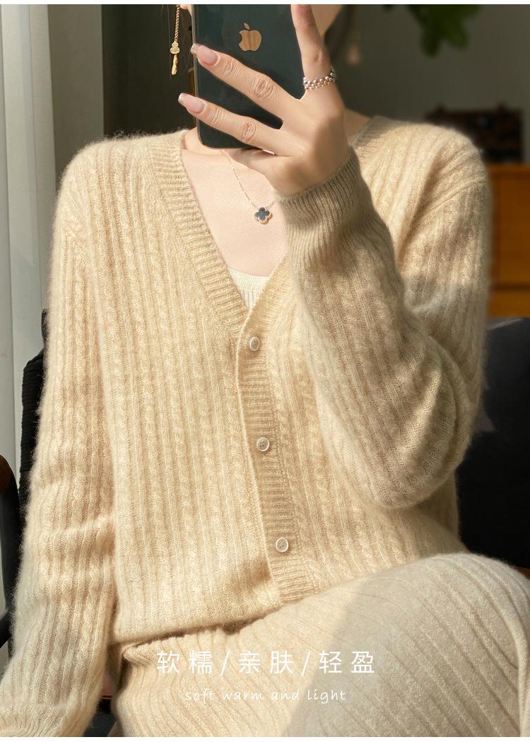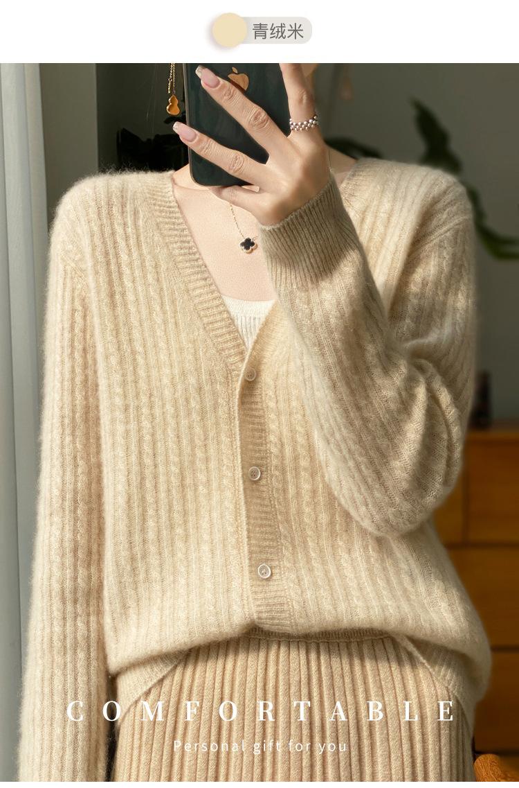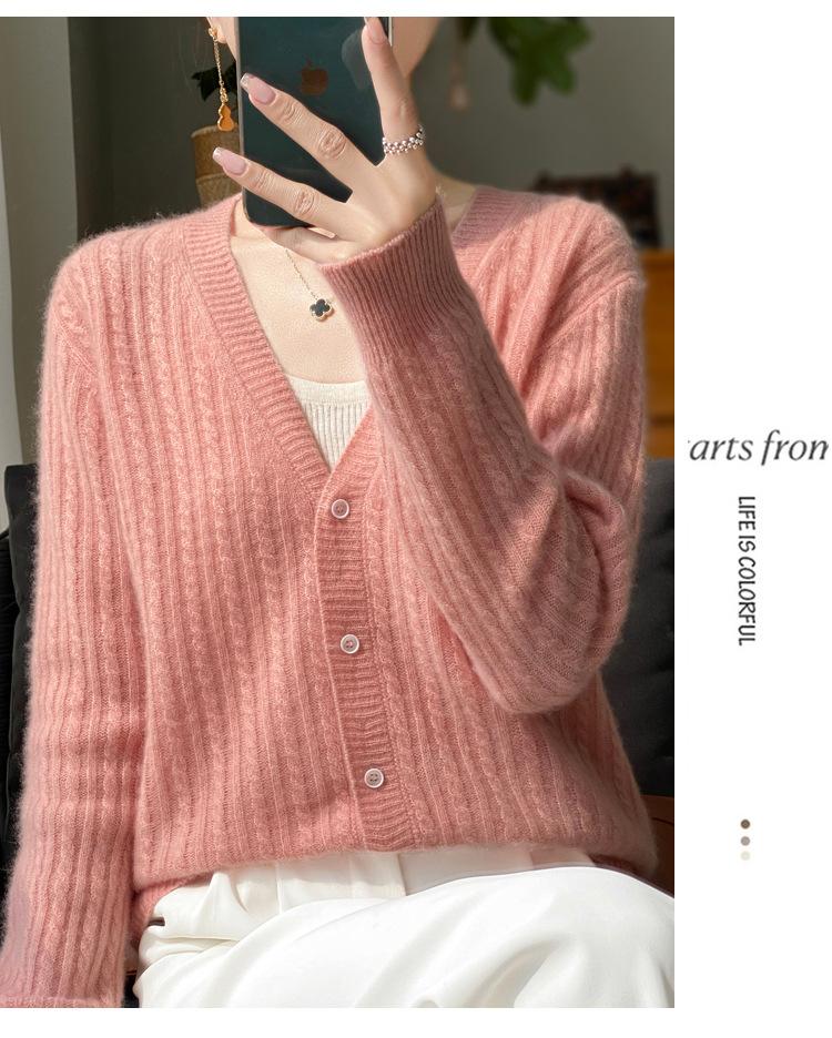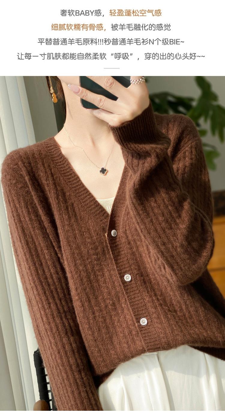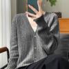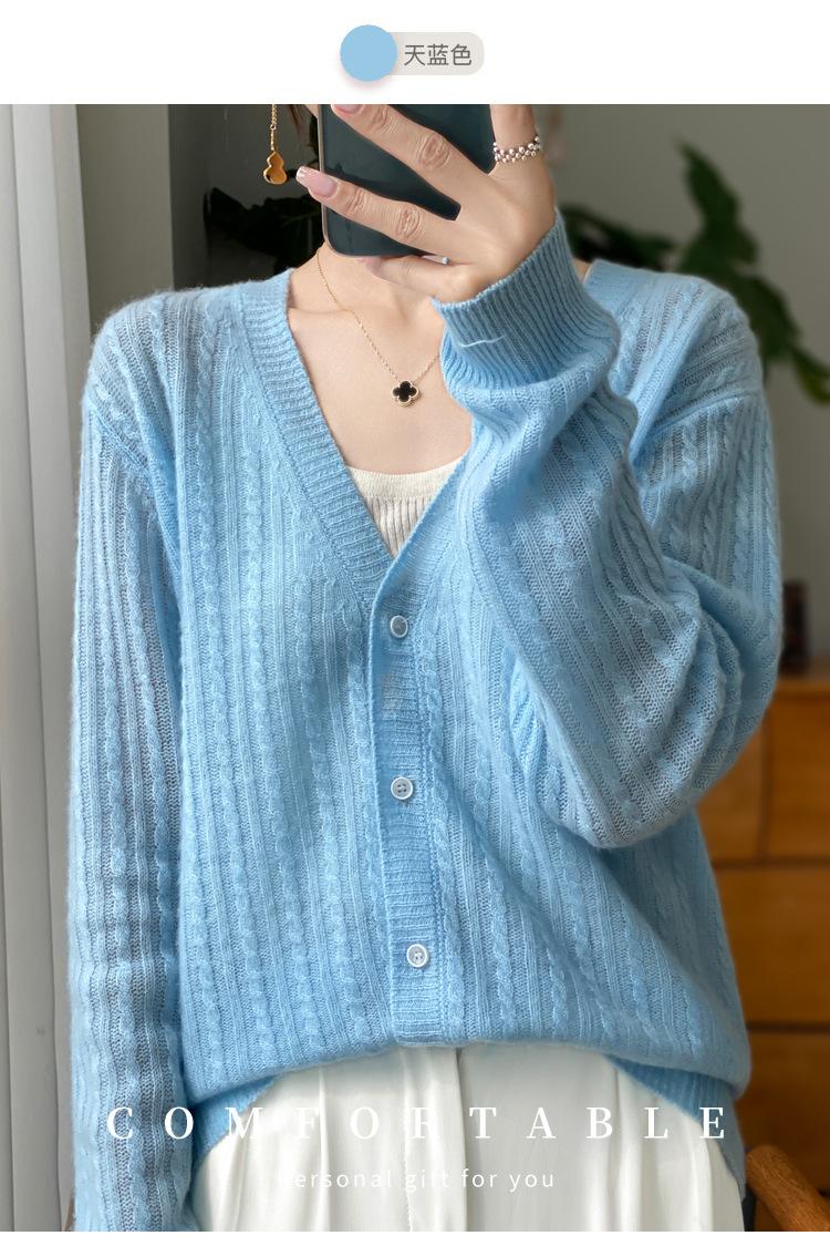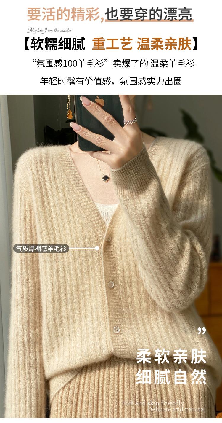 Lana Pura 2025 Otoño e Invierno Nuevo Cárdigan de Punto de Cable de Color Puro Estilo V Corto Suelto para Mujer Chaqueta de Punto