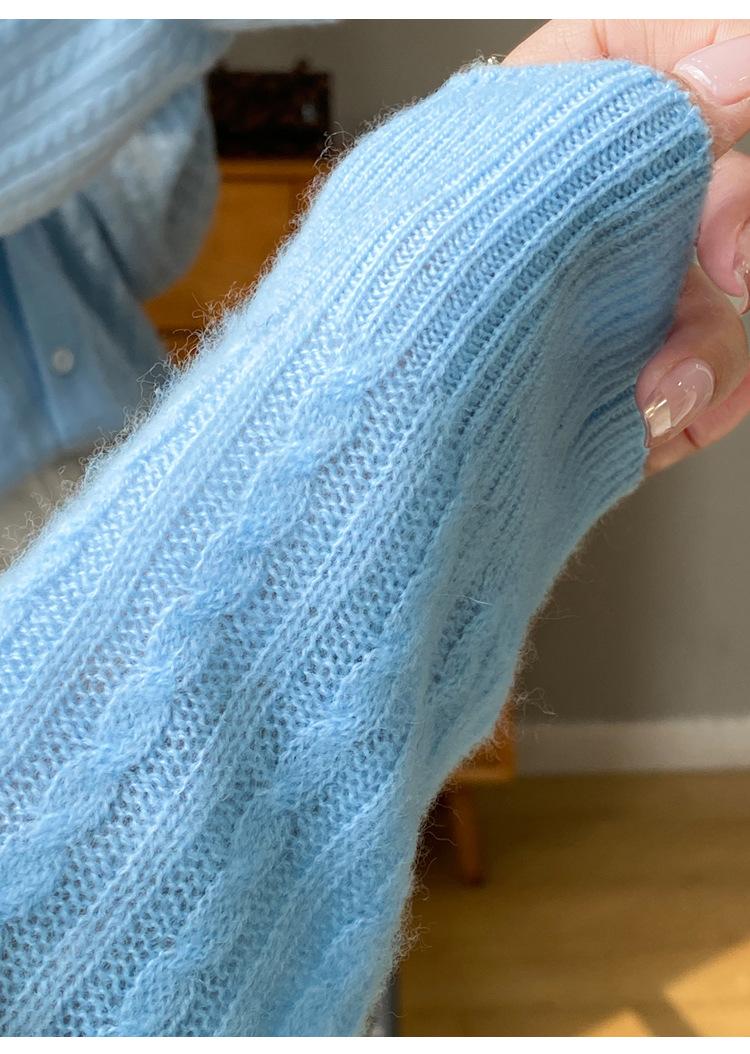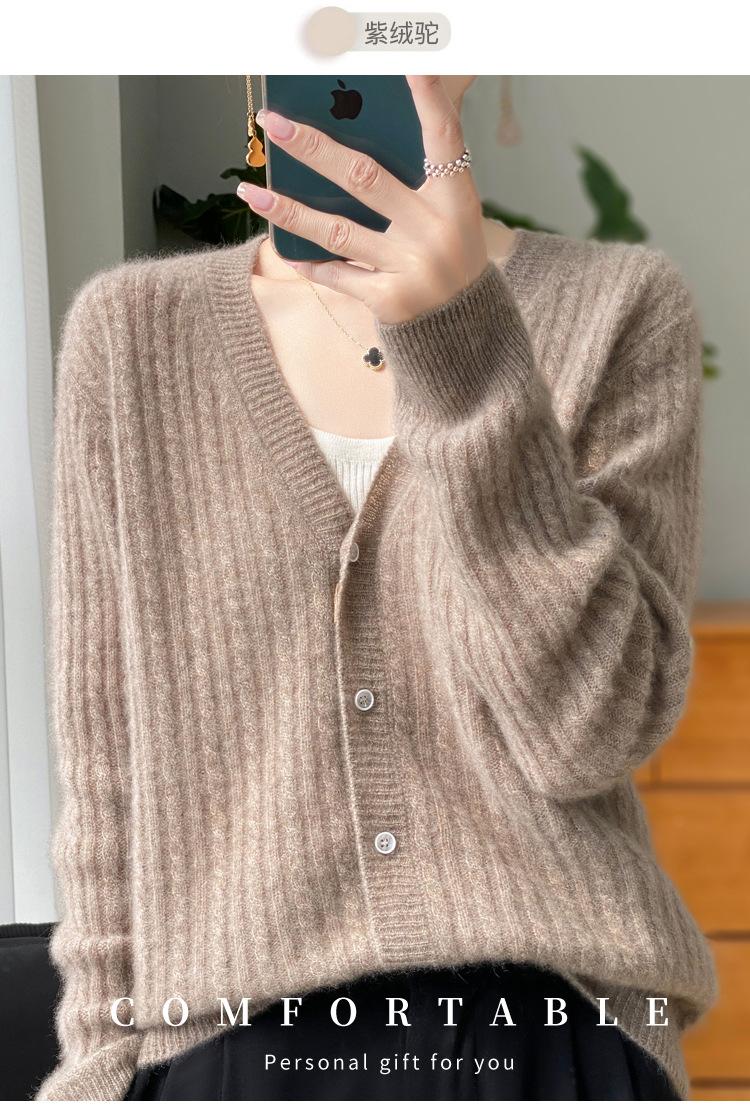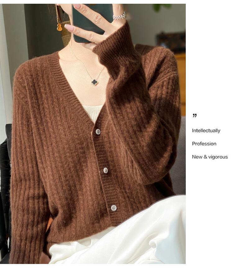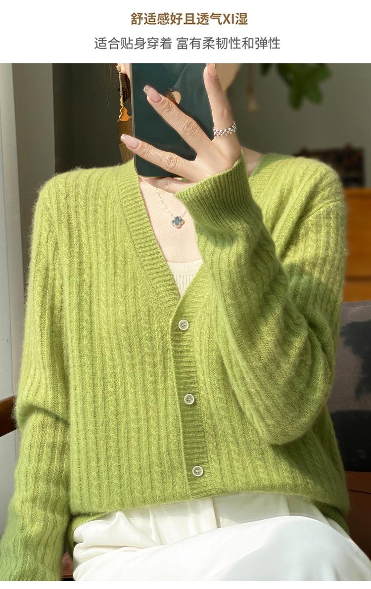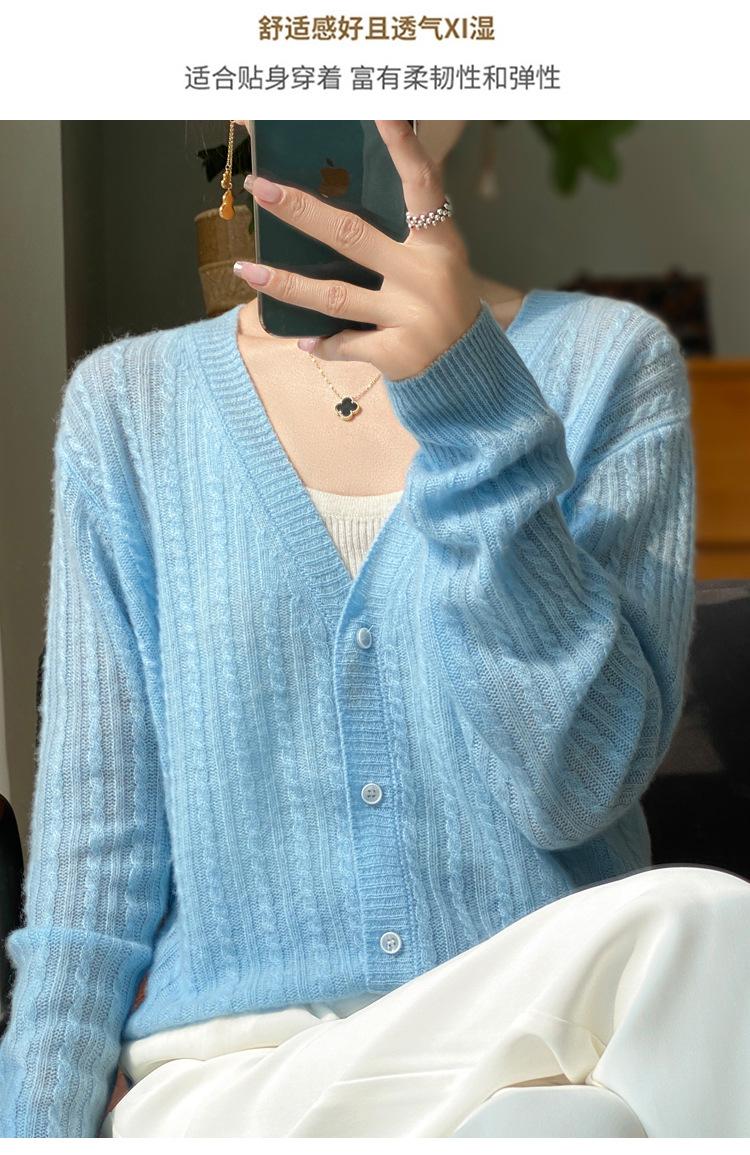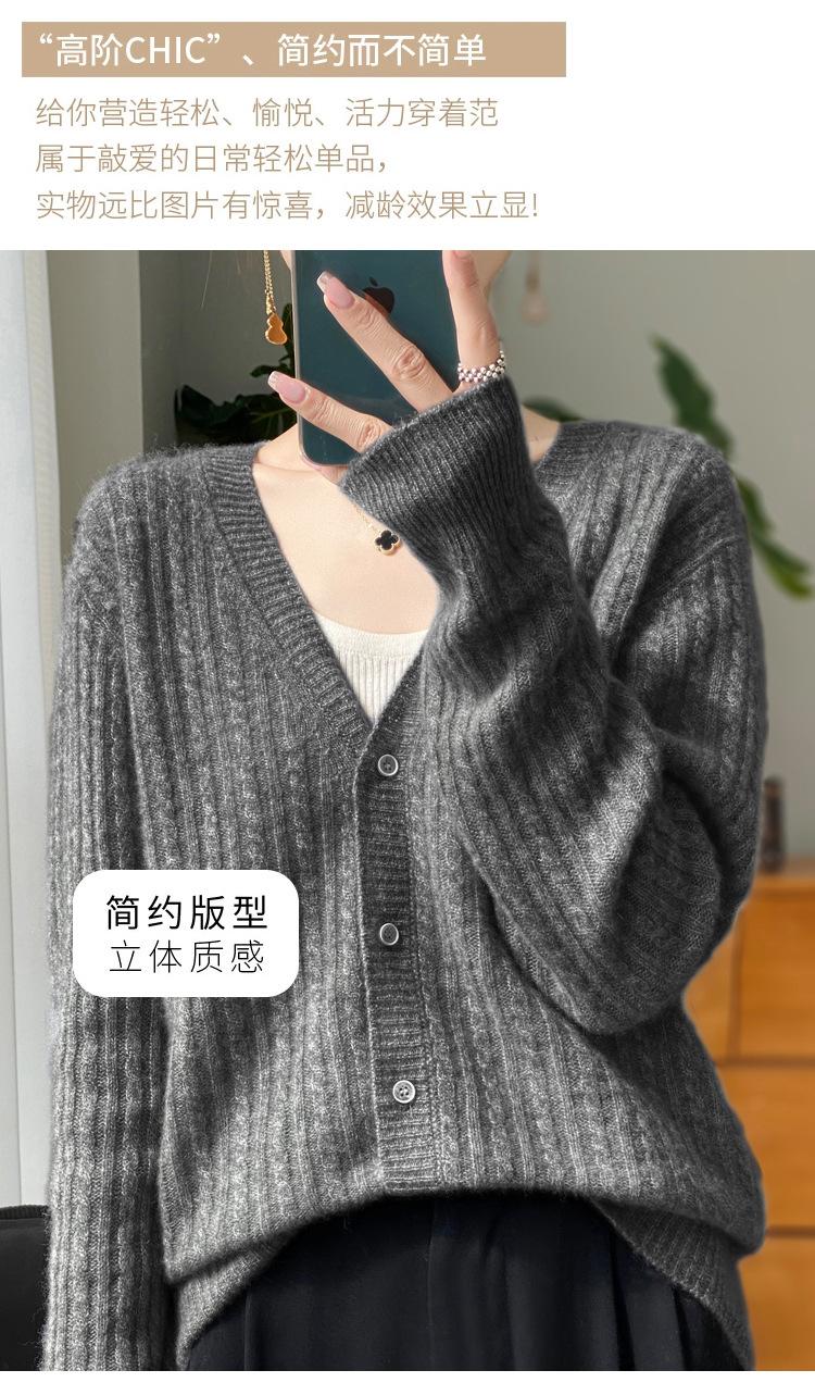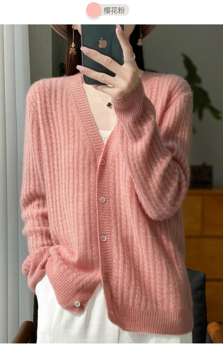 Lana Pura 2025 Otoño e Invierno Nuevo Cárdigan de Punto de Cable de Color Puro Estilo V Corto Suelto para Mujer Chaqueta de Punto