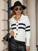 Cárdigan clásico de rayas con solapa de Amazon, suéter de comercio exterior transfronterizo para mujer, abrigo de punto informal a la moda que combina con todo para mujer
