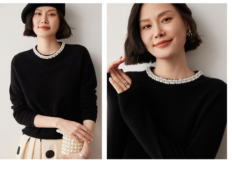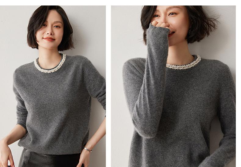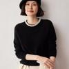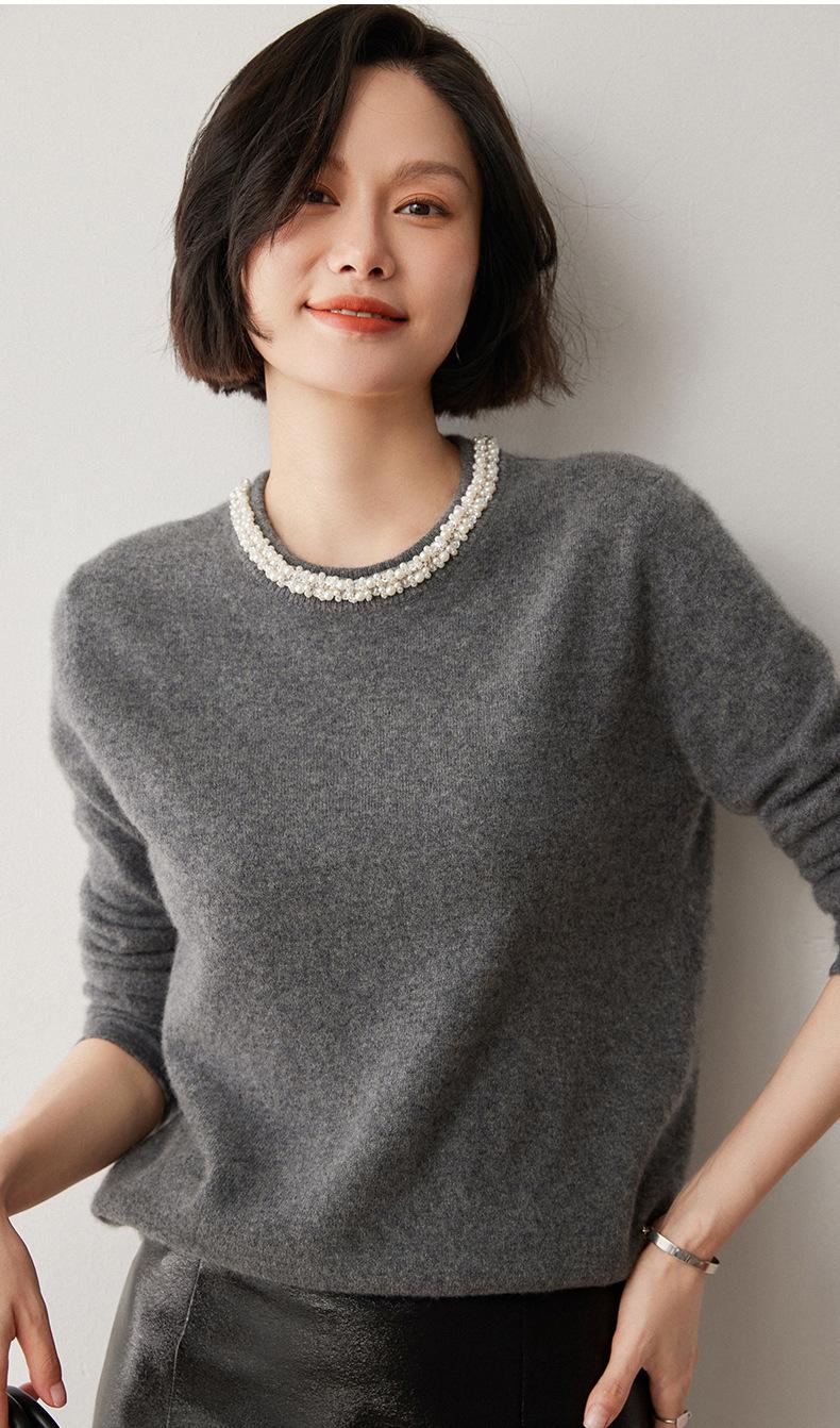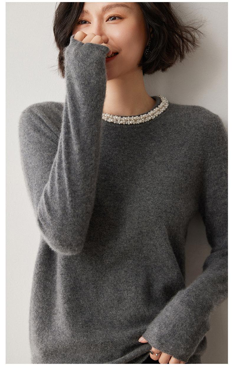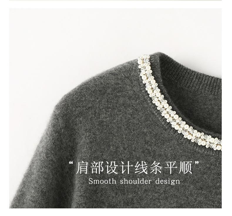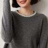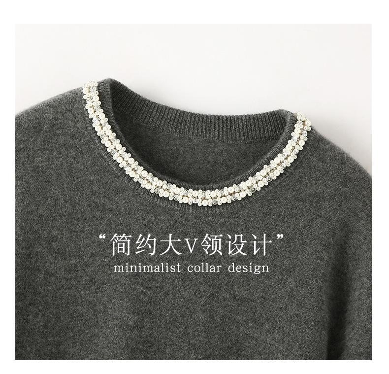 Suéter de Cachemira de Cuello Redondo con Diamantes para Mujer Otoño e Invierno 2024 Nuevo Estilo Sencillo y Versátil Tejido de Lana Moda Elegante Tejido de Cachemira