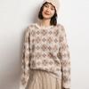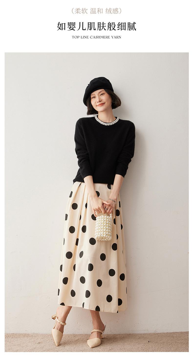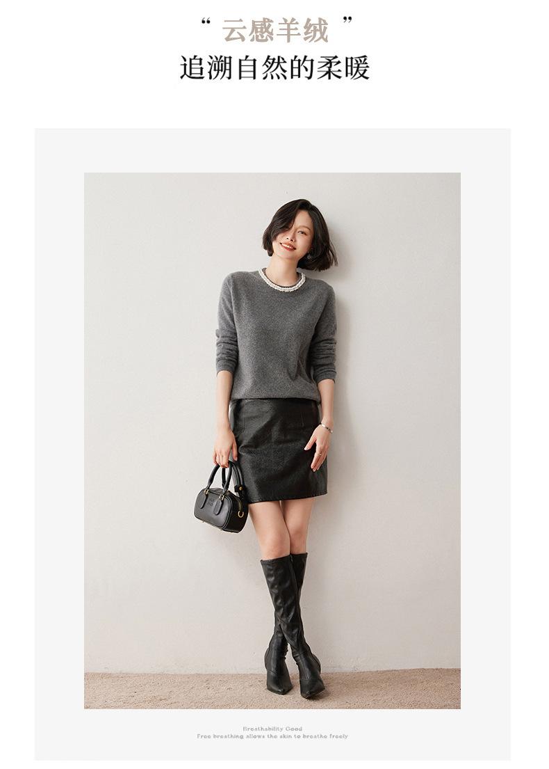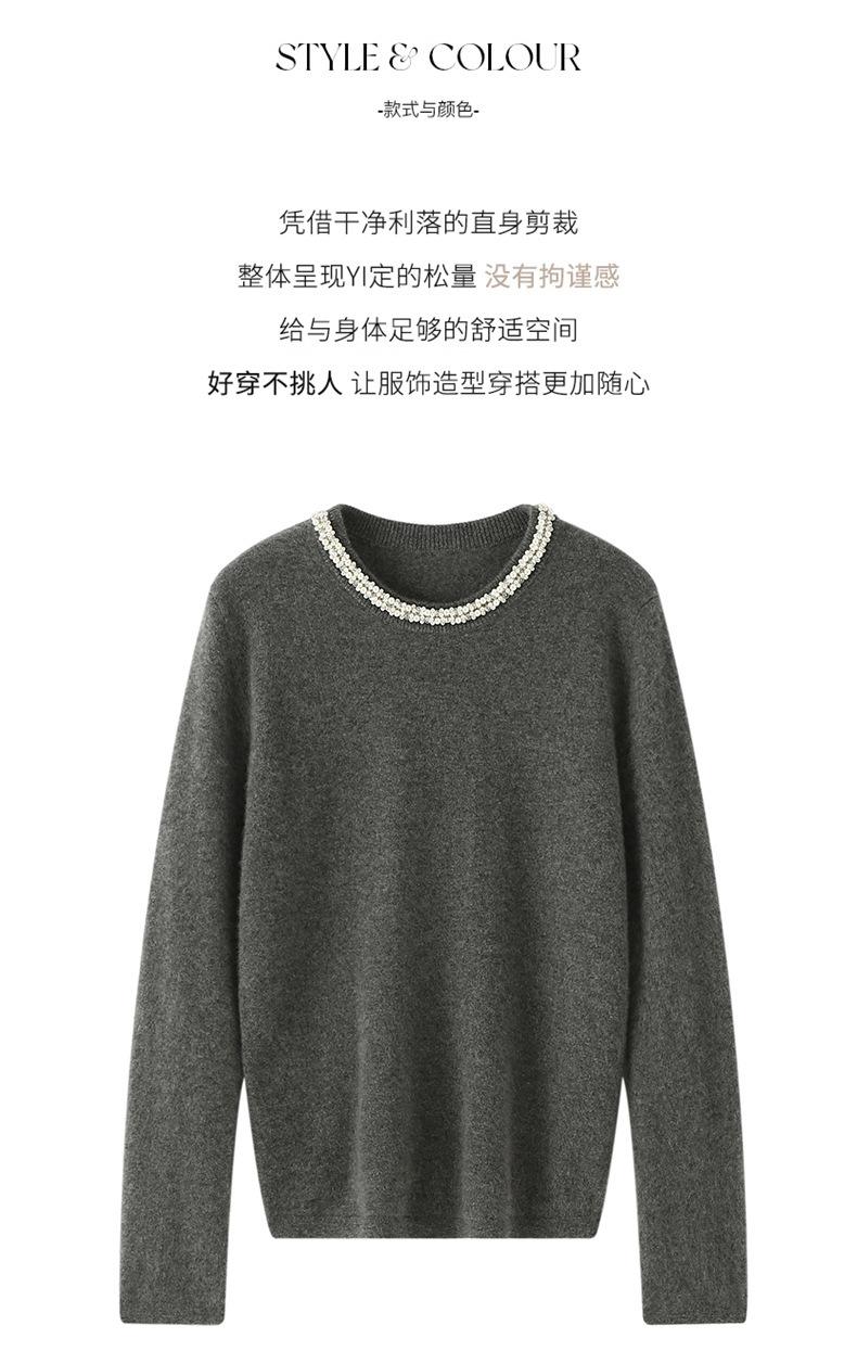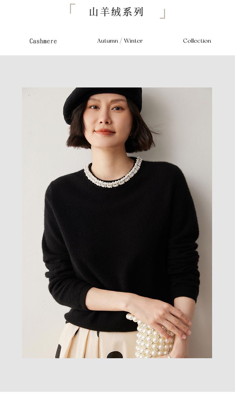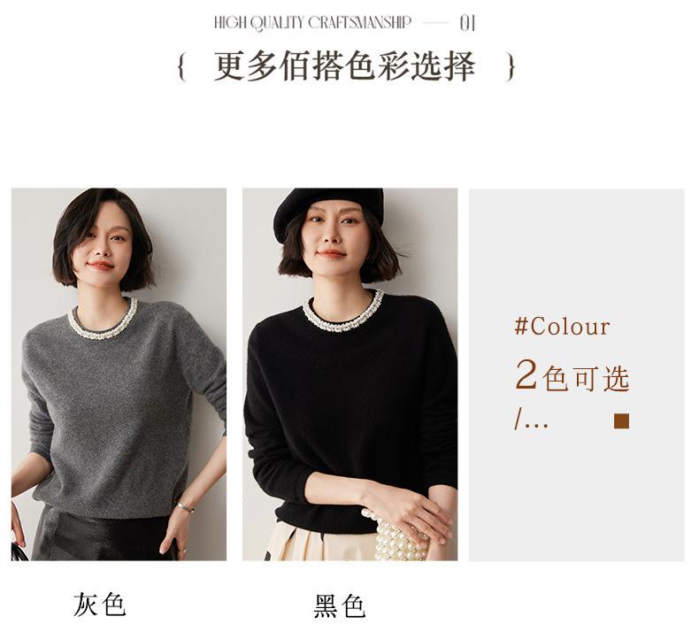 Suéter de Cachemira de Cuello Redondo con Diamantes para Mujer Otoño e Invierno 2024 Nuevo Estilo Sencillo y Versátil Tejido de Lana Moda Elegante Tejido de Cachemira