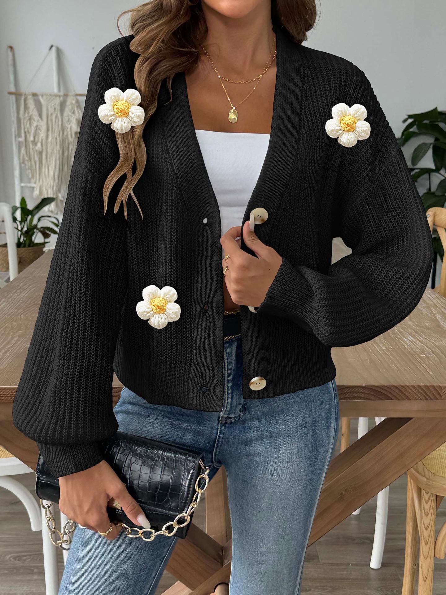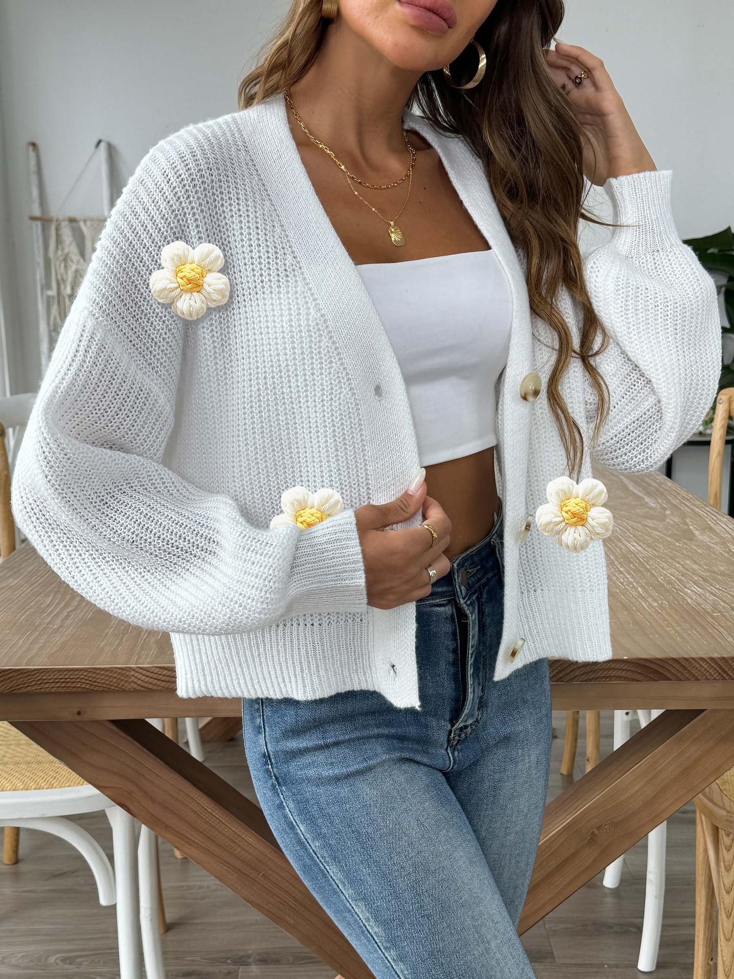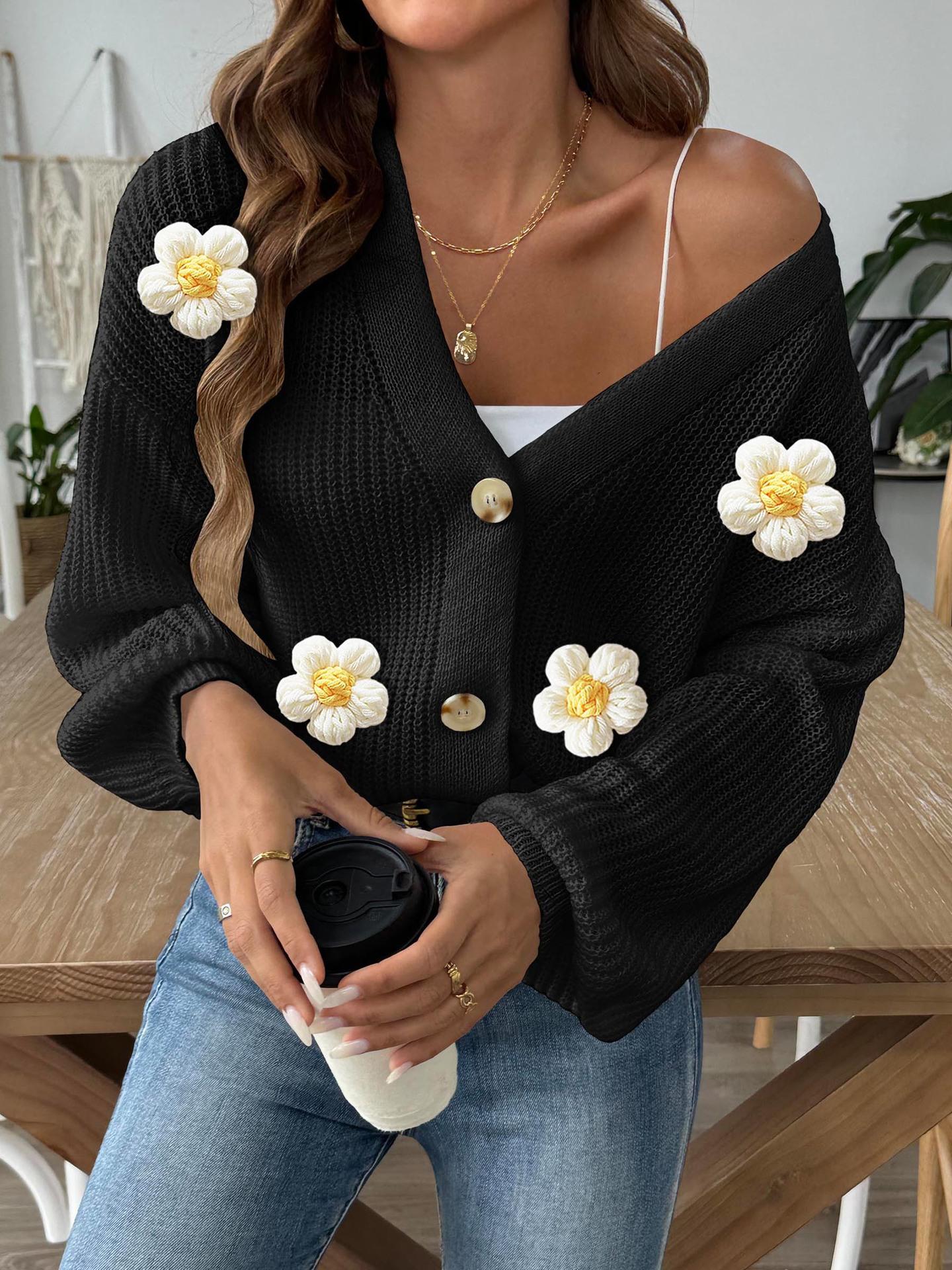 Suéter tejido para mujer, cárdigan con botones cortos y costura a crochet a mano para otoño e invierno, estilo europeo y americano.
