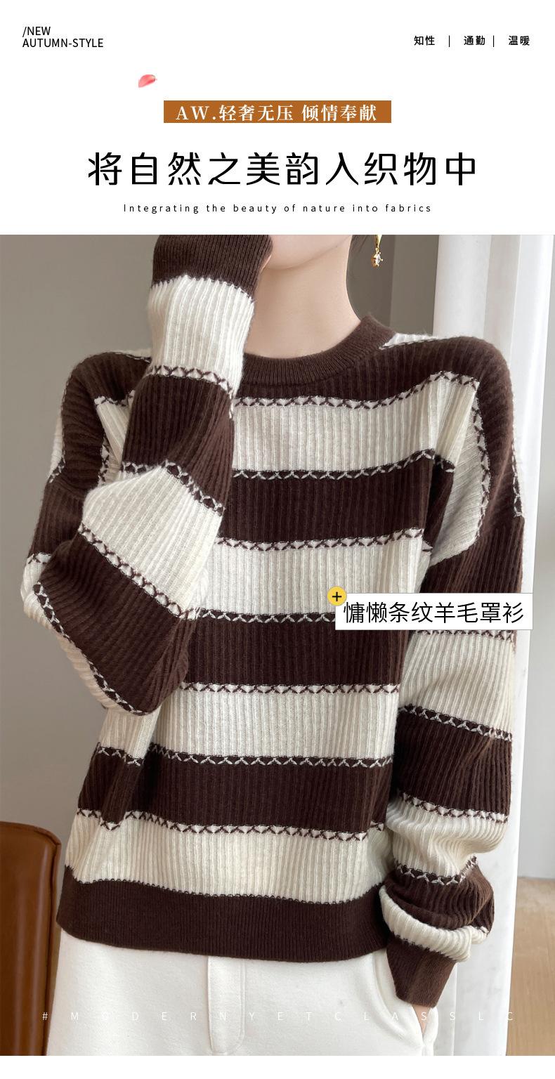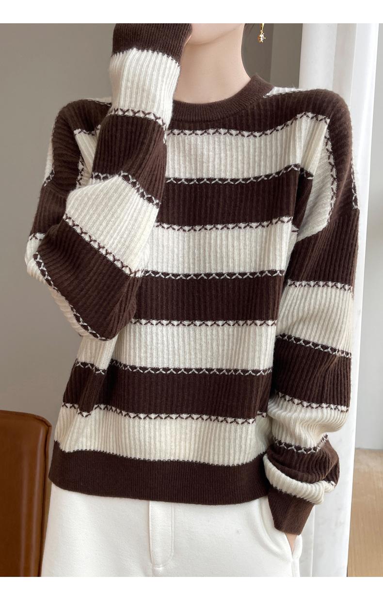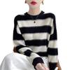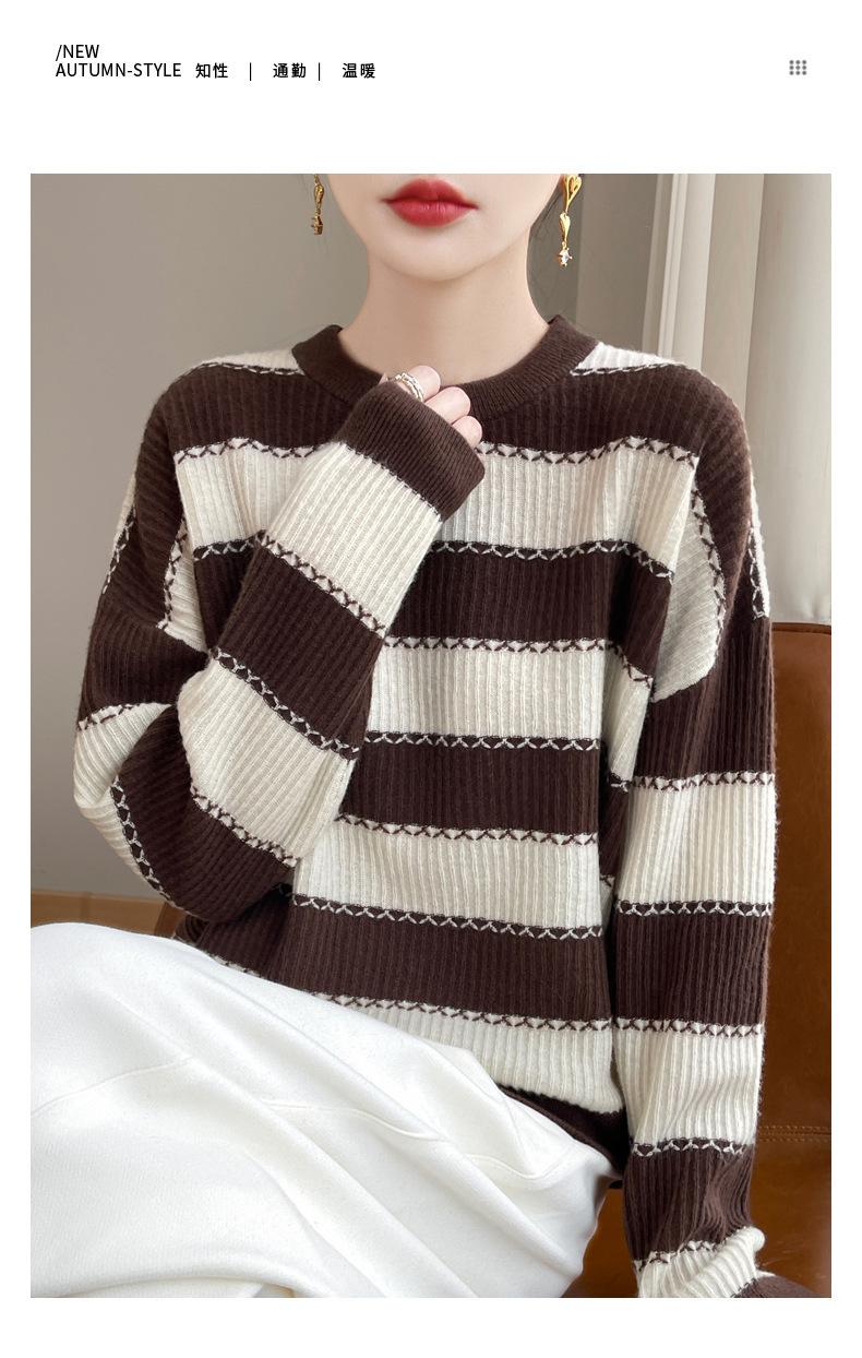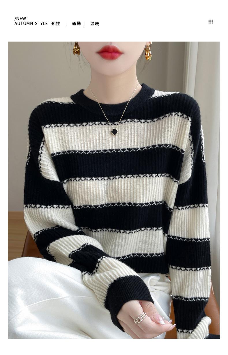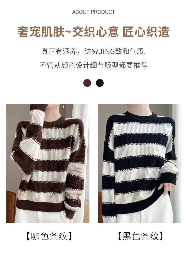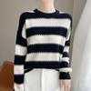 Suéter de Lana Nueva para Mujer de Cuello Redondo a Rayas, Suéter Pulóver Tejido, Camiseta Básica Ajustada de Moda y Versátil para Otoño e Invierno 2025