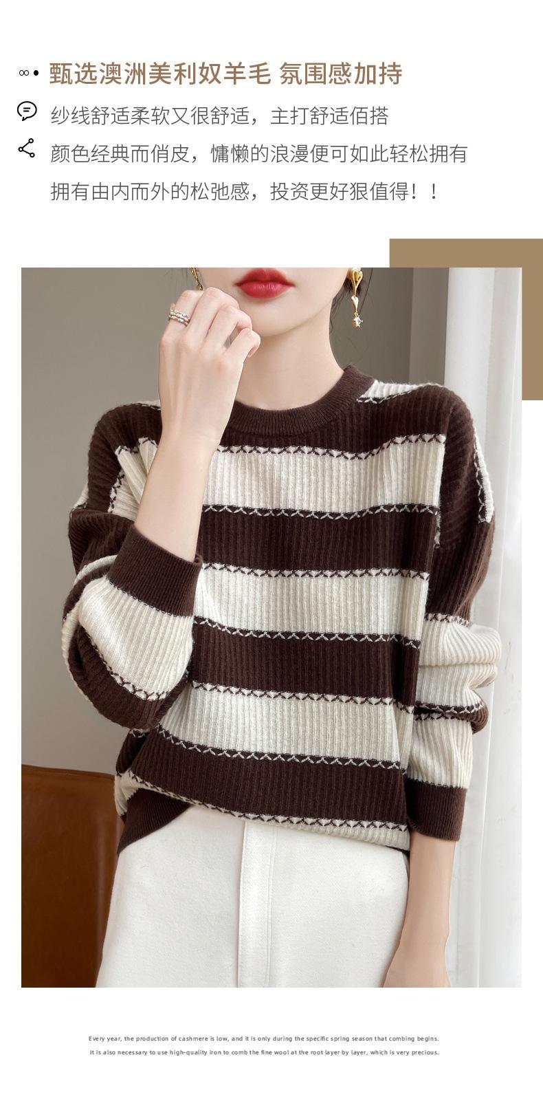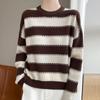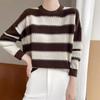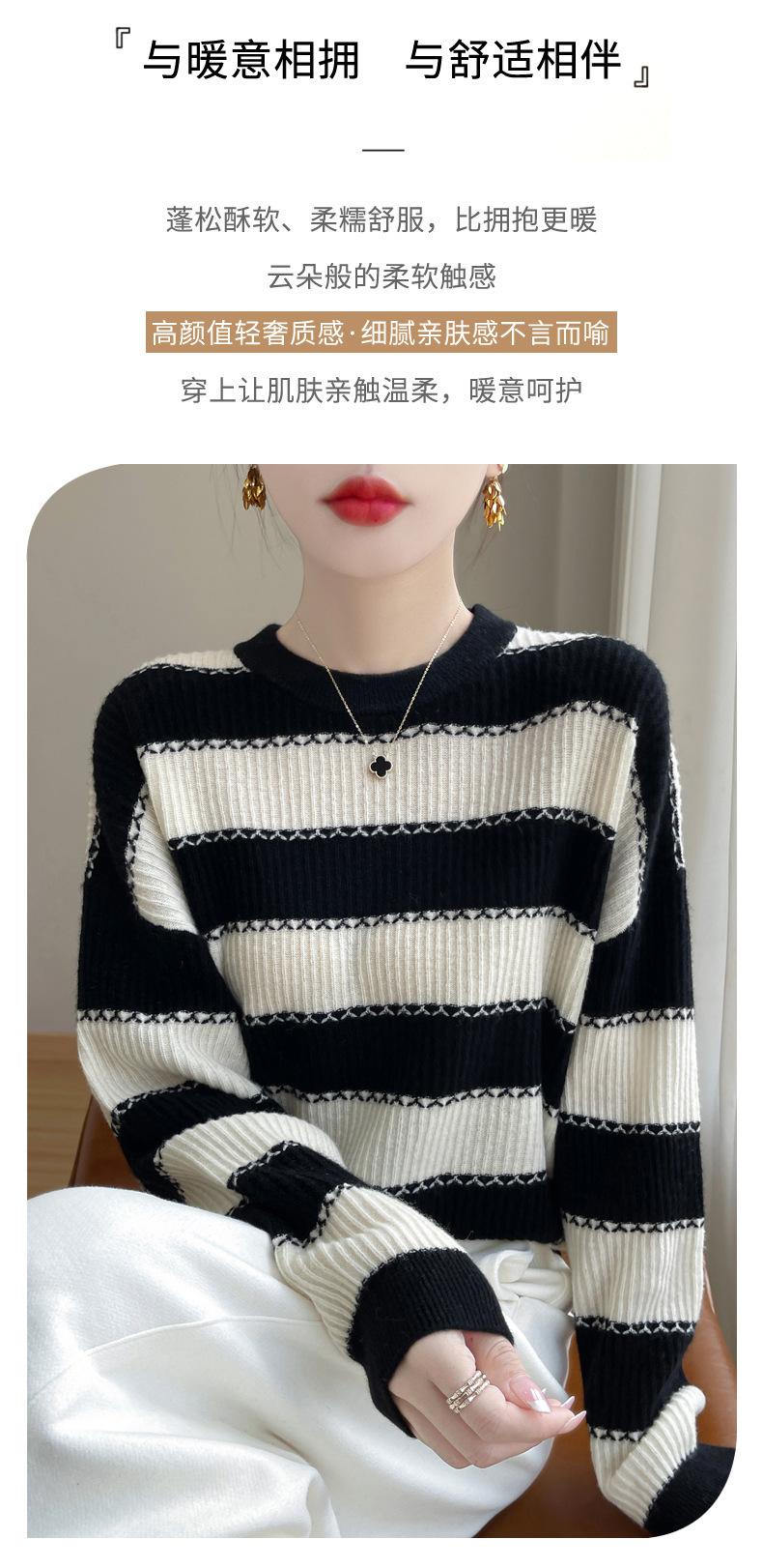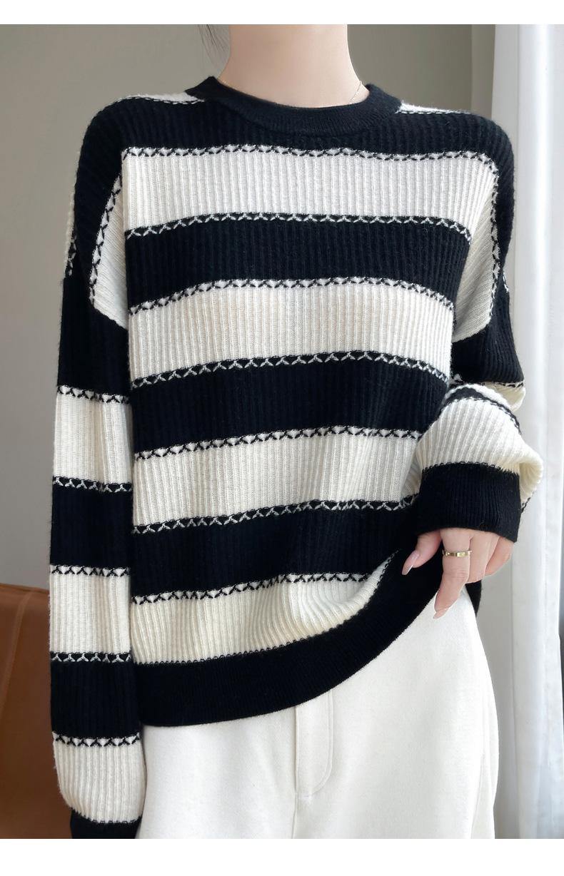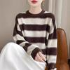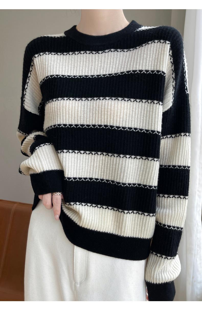 Suéter de Lana Nueva para Mujer de Cuello Redondo a Rayas, Suéter Pulóver Tejido, Camiseta Básica Ajustada de Moda y Versátil para Otoño e Invierno 2025