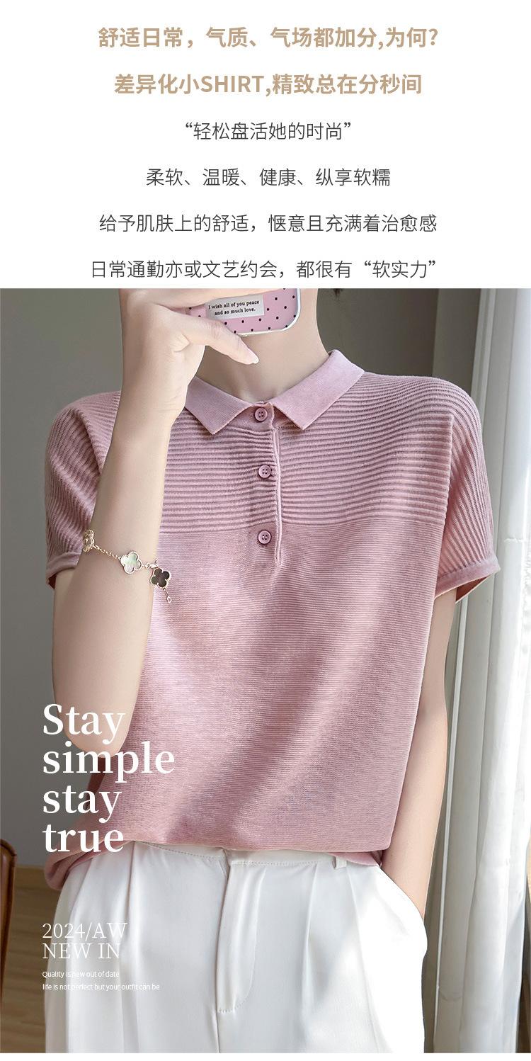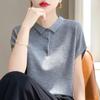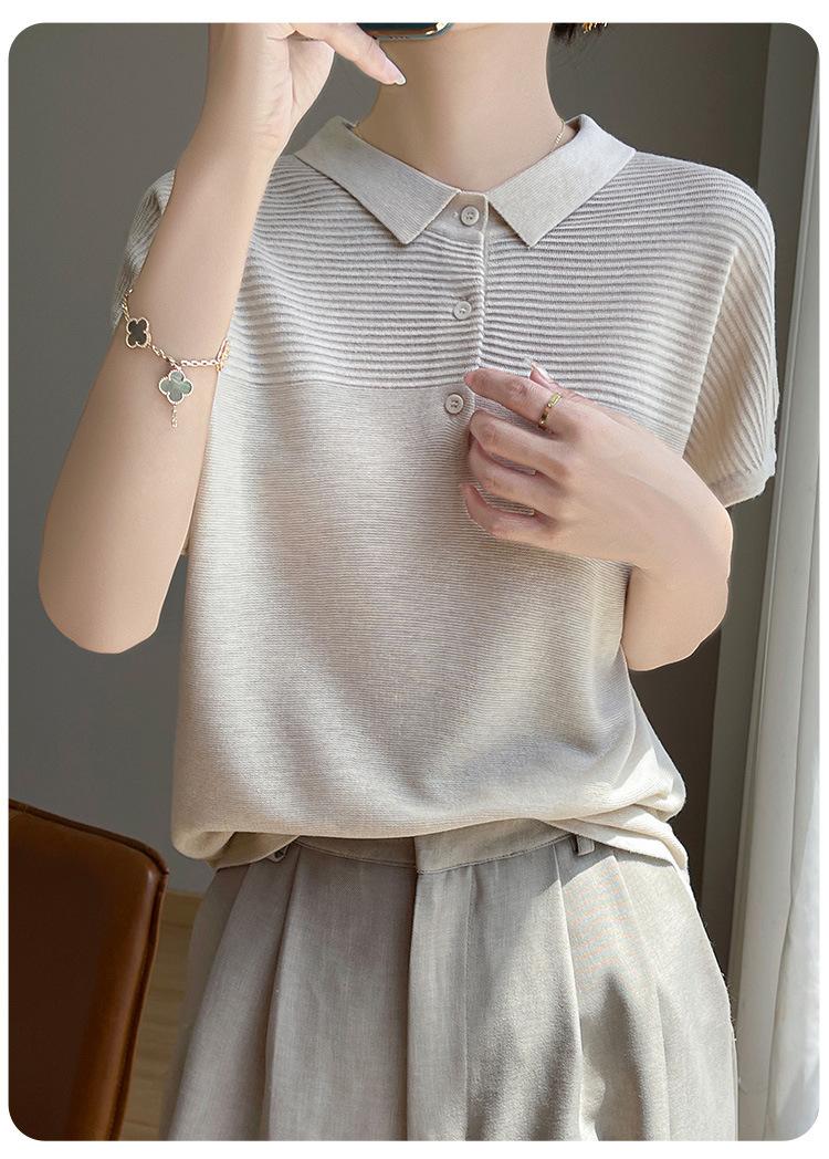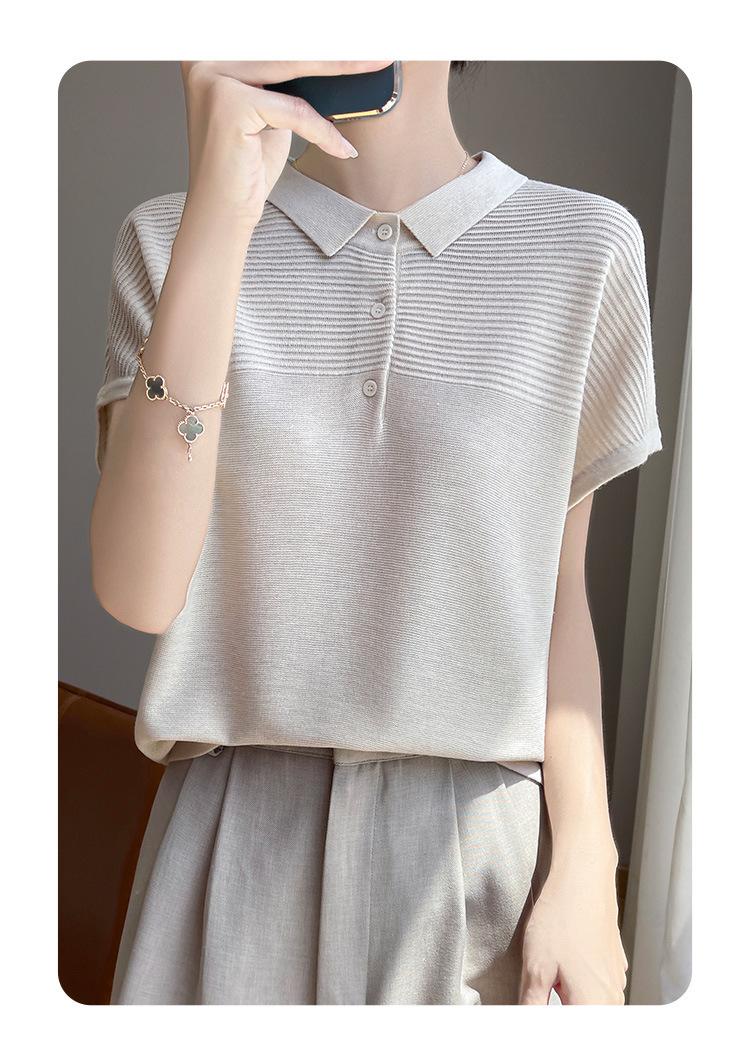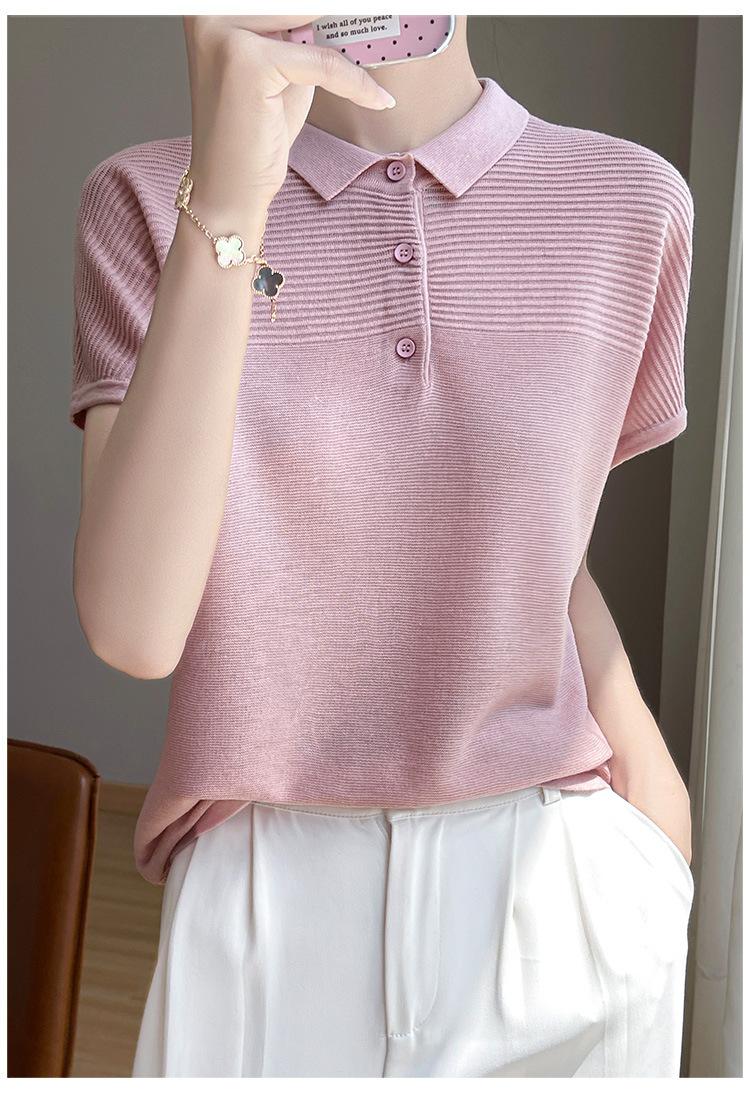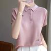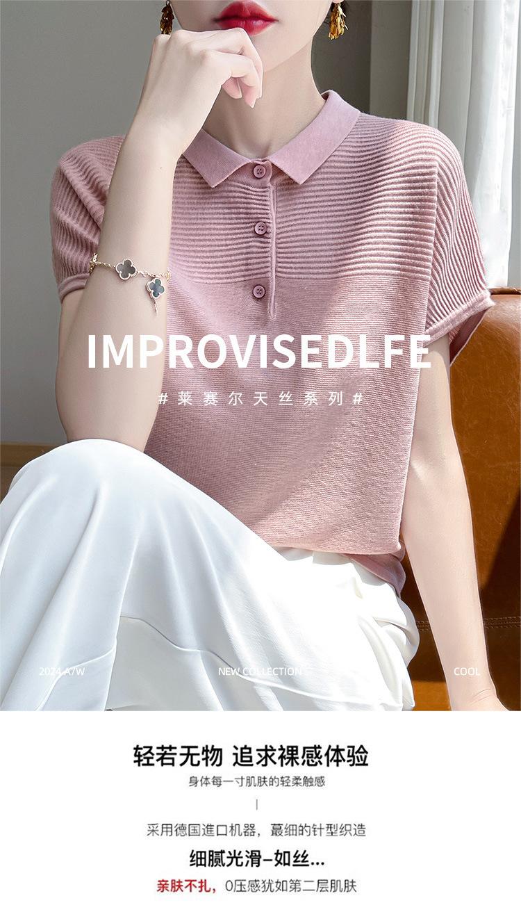 Camiseta de punto de cuello polo de Tencel Lyocell para mujer, camiseta de manga corta, color liso, combinable, novedad de verano de 2024