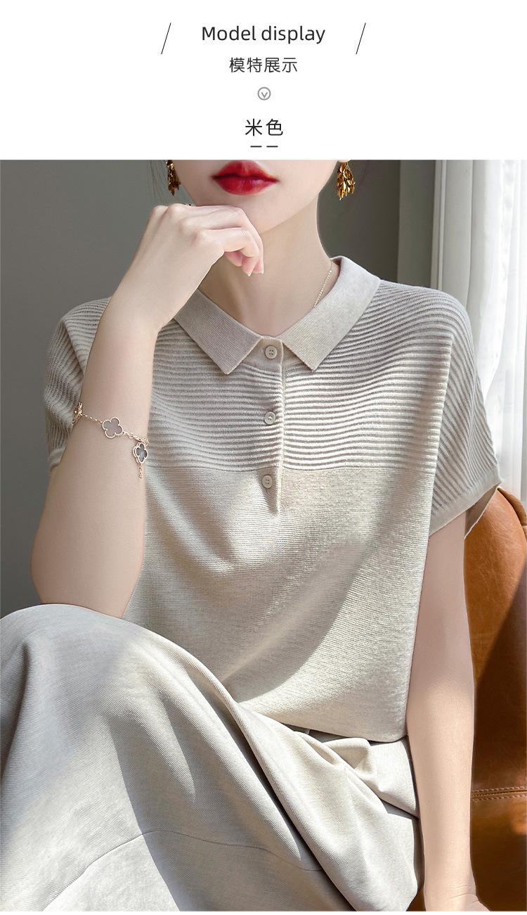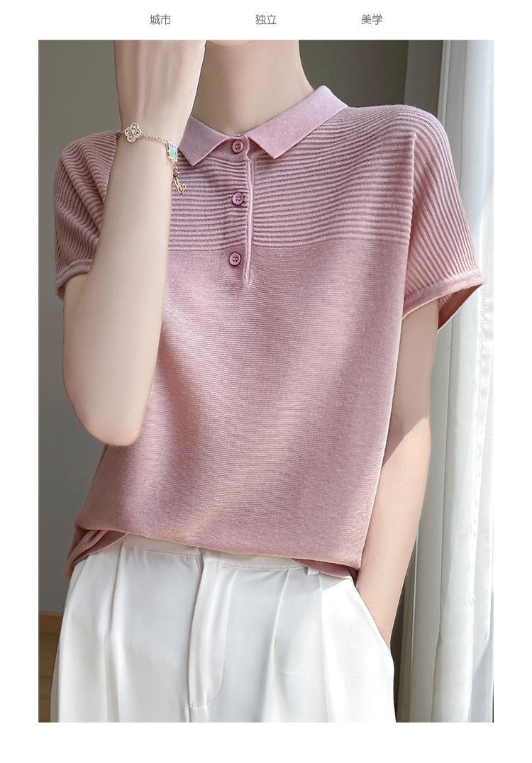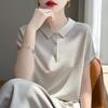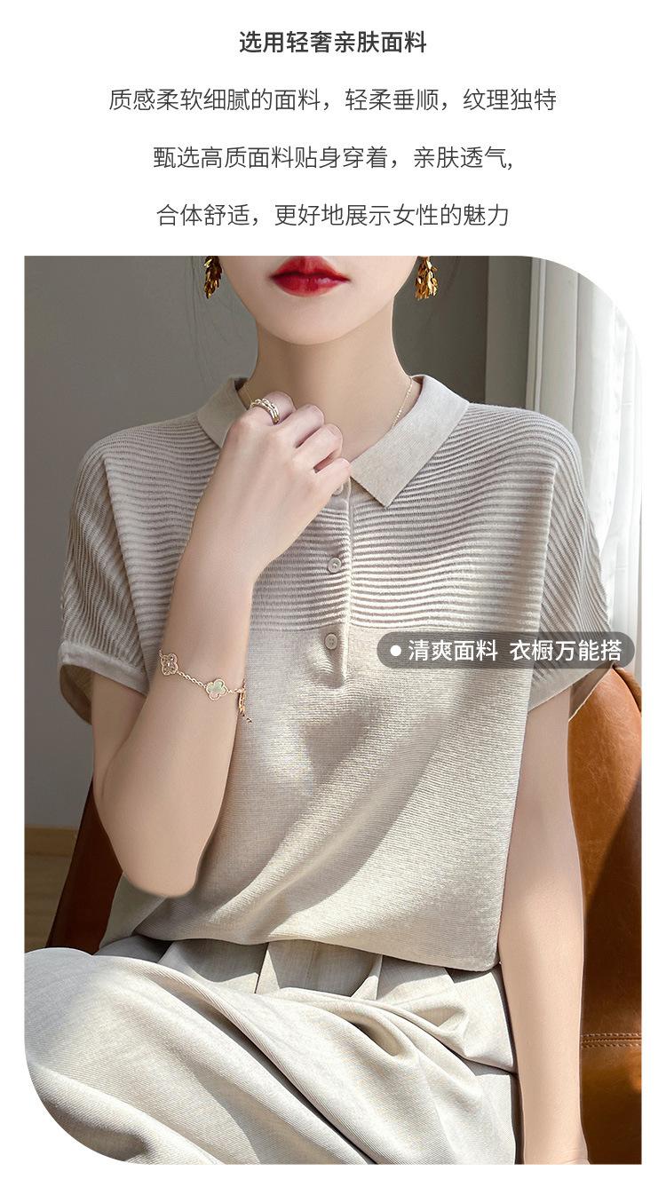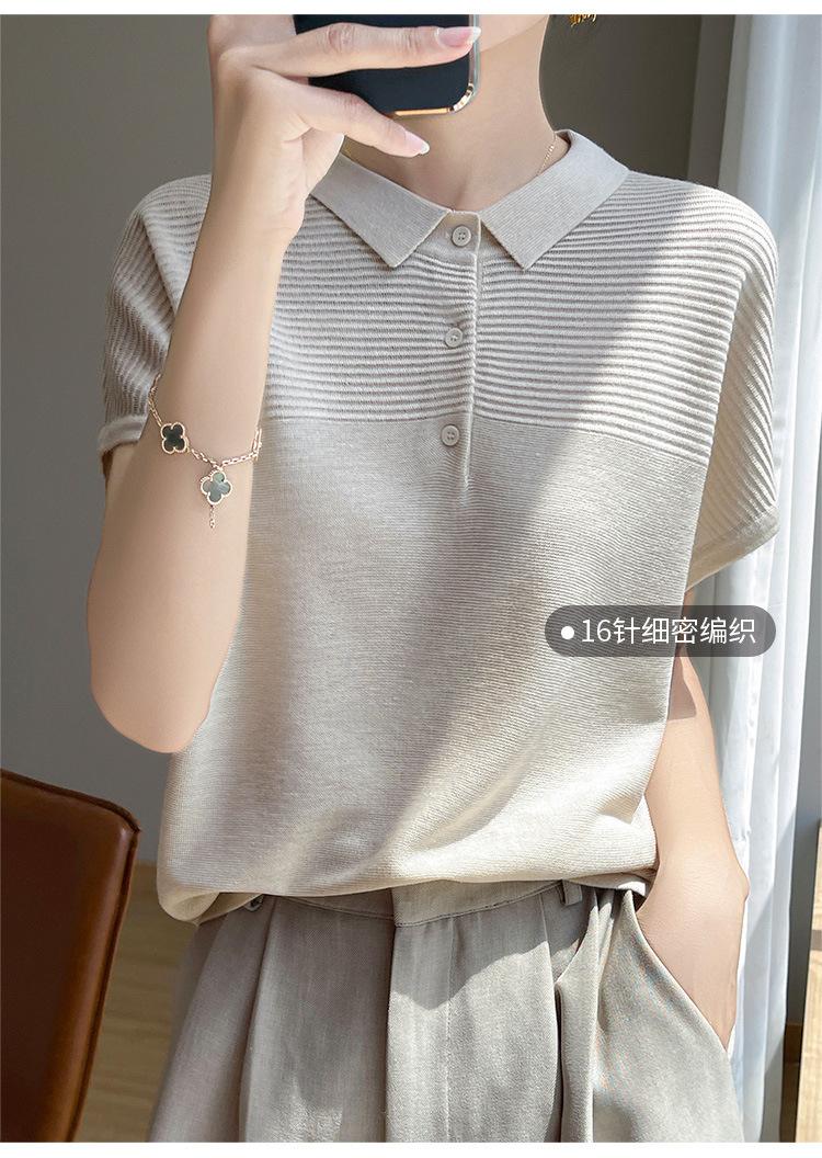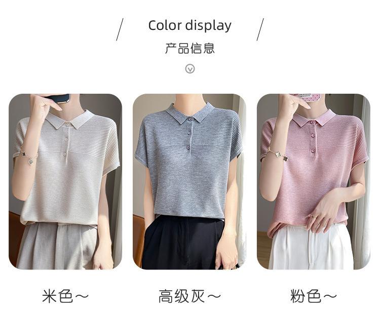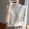 Camiseta de punto de cuello polo de Tencel Lyocell para mujer, camiseta de manga corta, color liso, combinable, novedad de verano de 2024