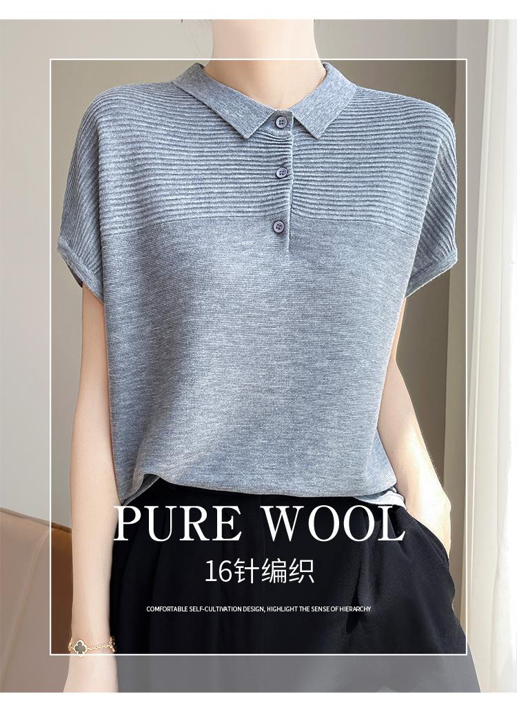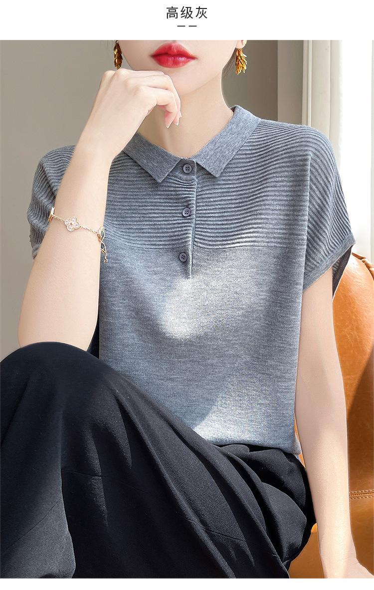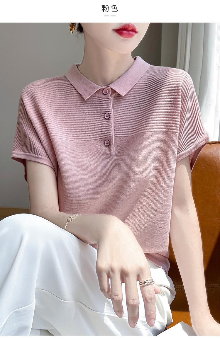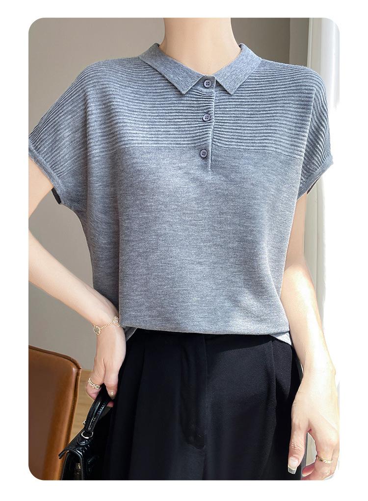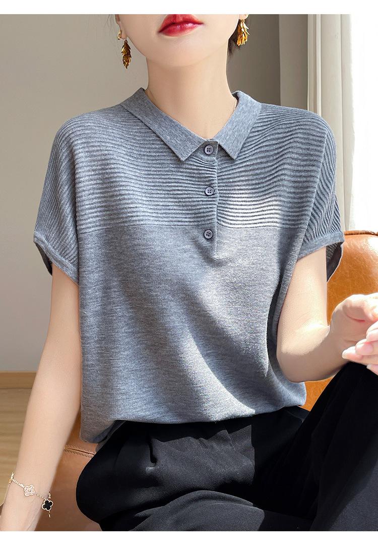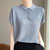 Camiseta de punto de cuello polo de Tencel Lyocell para mujer, camiseta de manga corta, color liso, combinable, novedad de verano de 2024