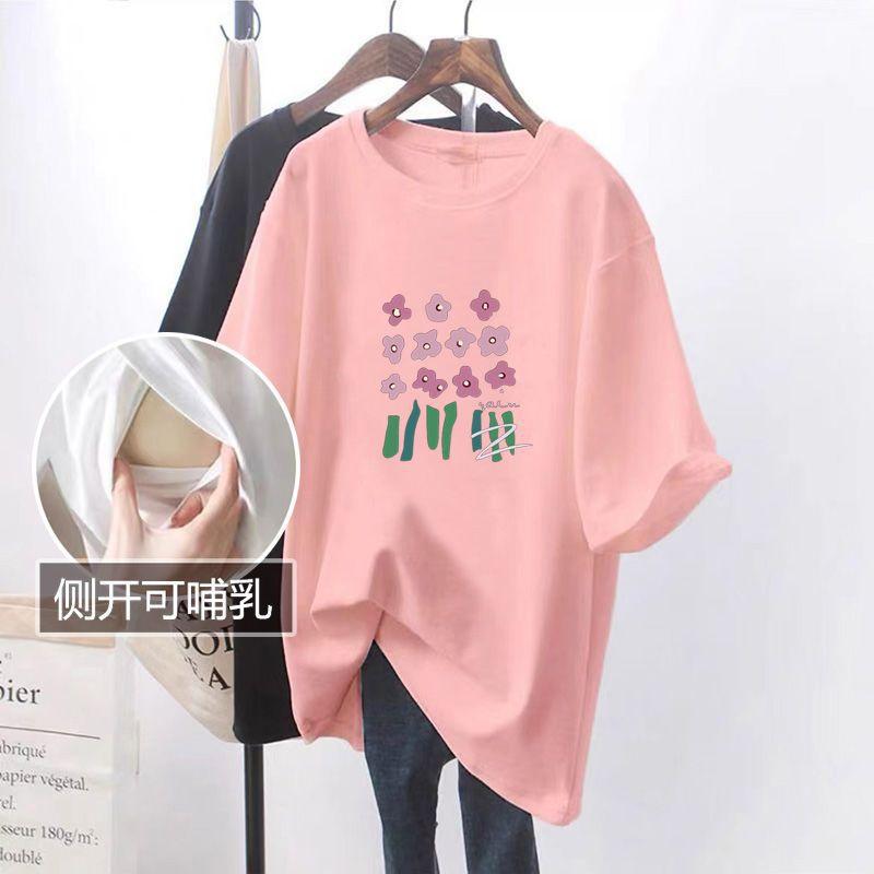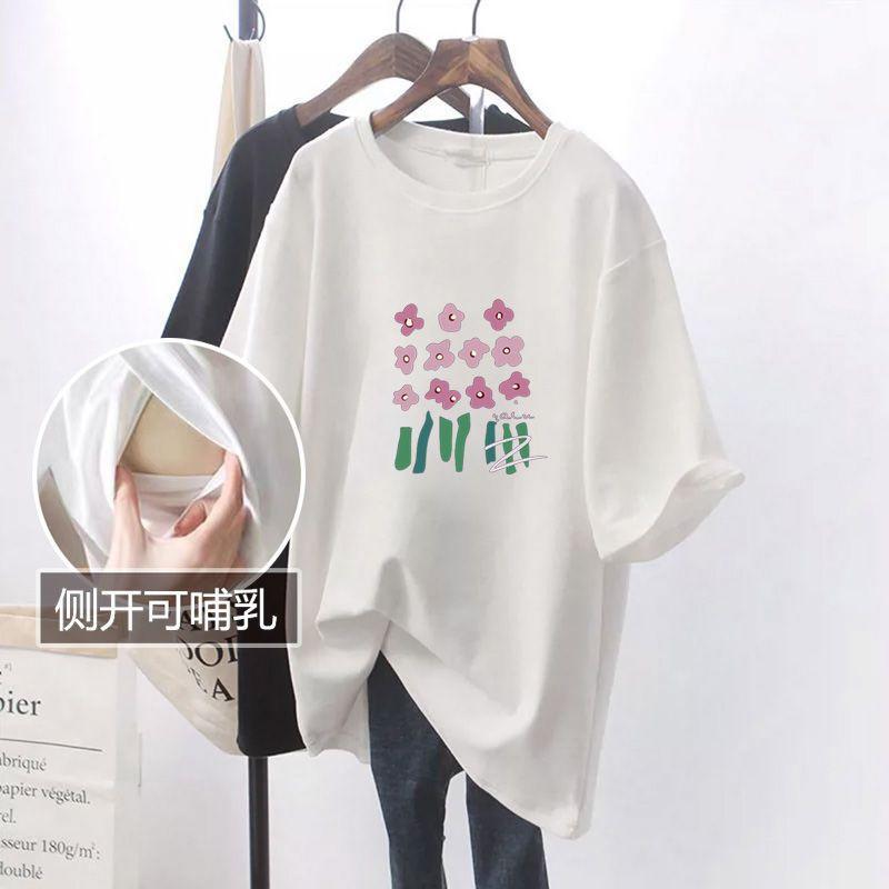Ropa de lactancia de verano ropa de lactancia holgada abertura lateral sin cremallera ropa para alimentar a mamá y bebé ropa exterior camiseta top ropa de maternidad