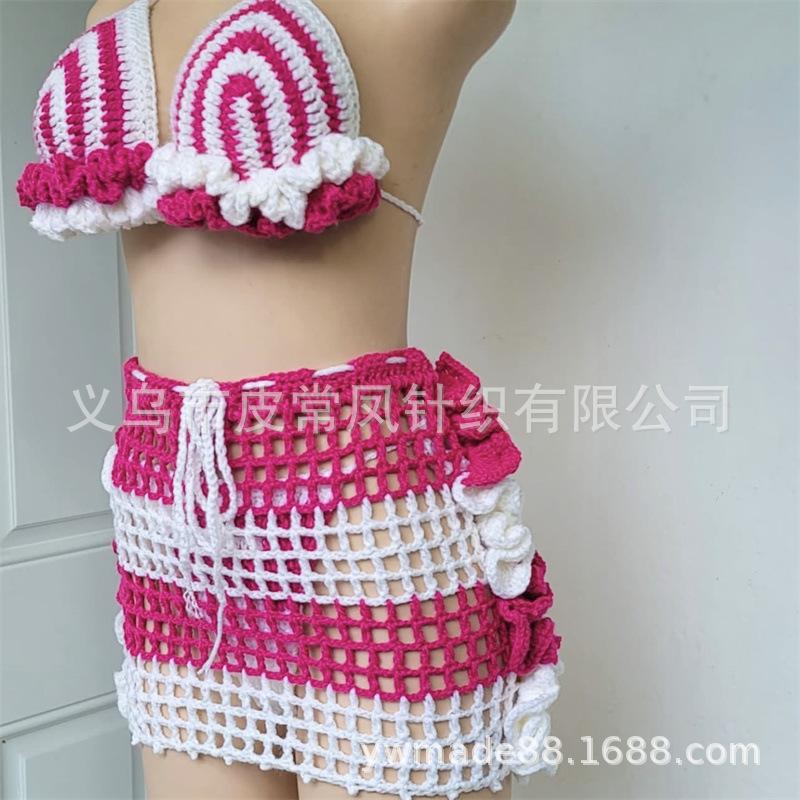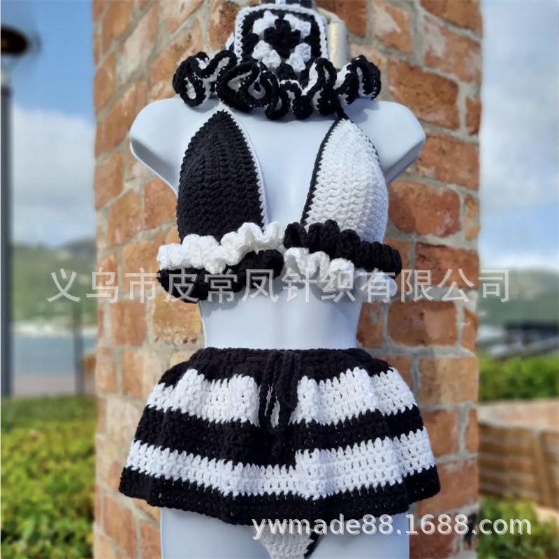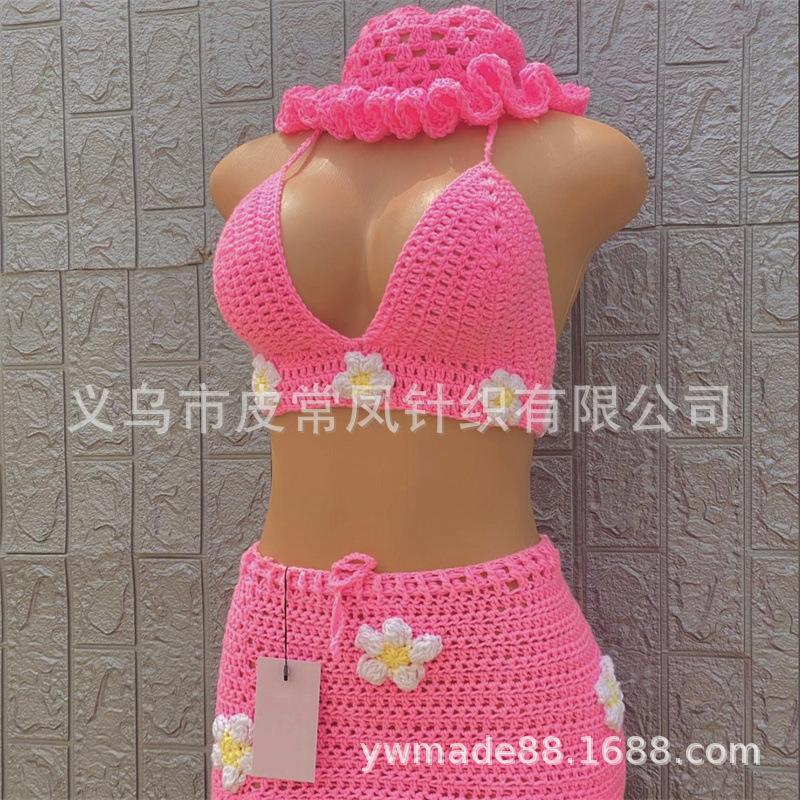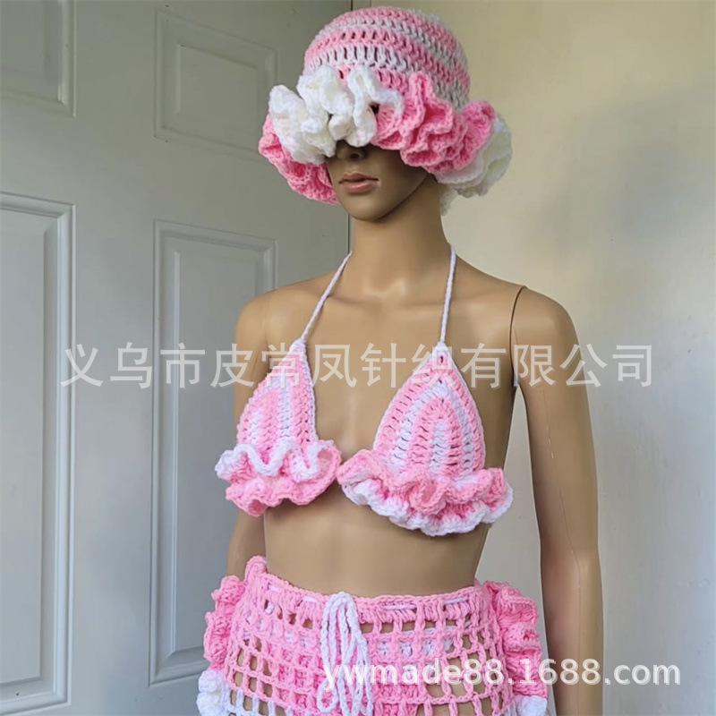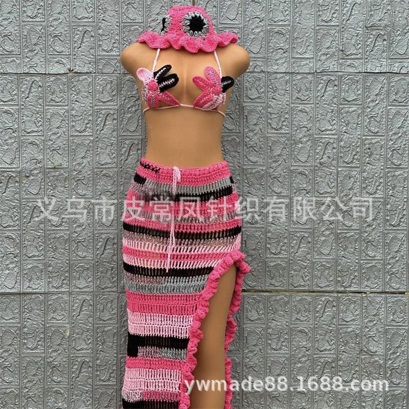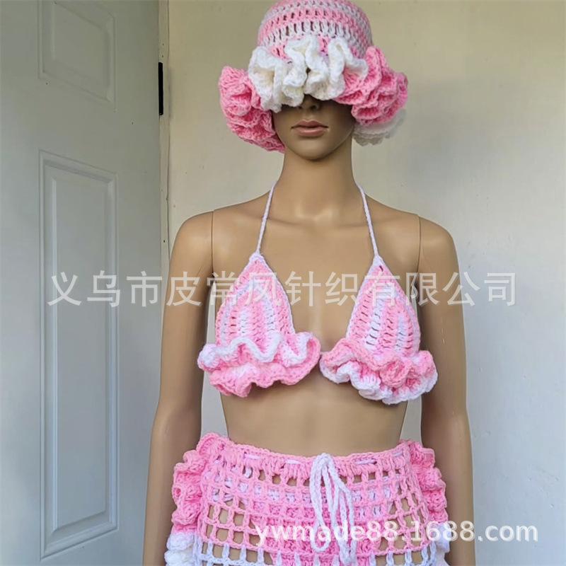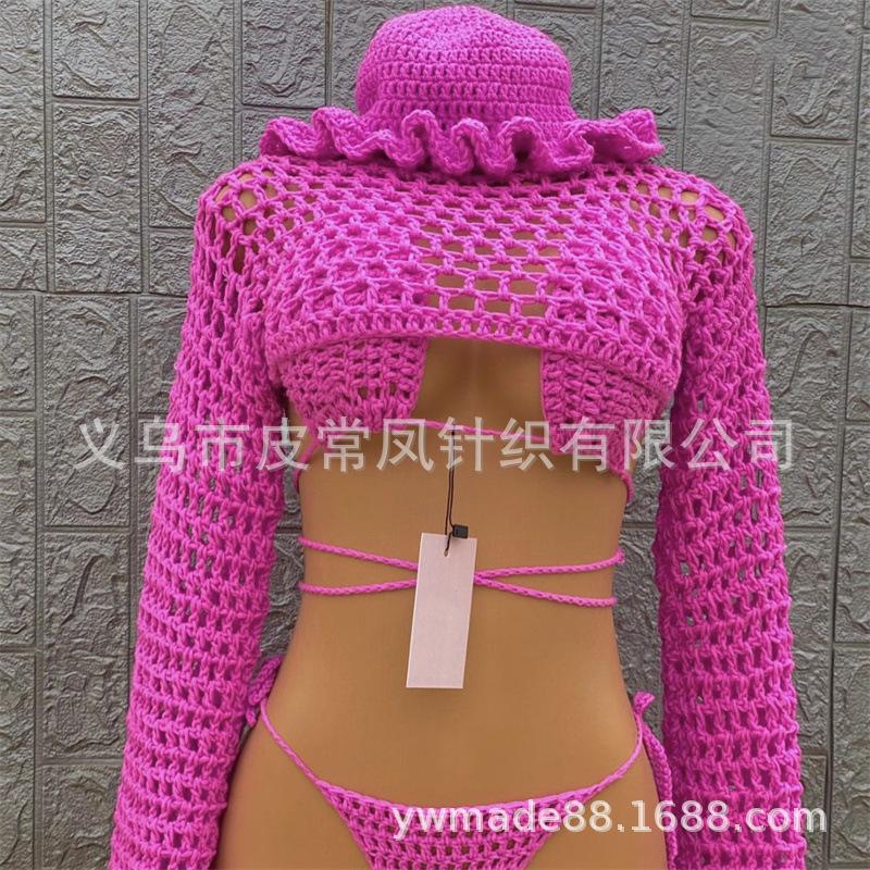 Traje cárdigan bikini nuevo de ganchillo hecho a mano transfronterizo de comercio exterior, moda de personalidad, suéter para damas adultas