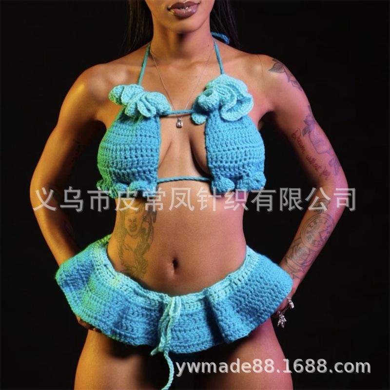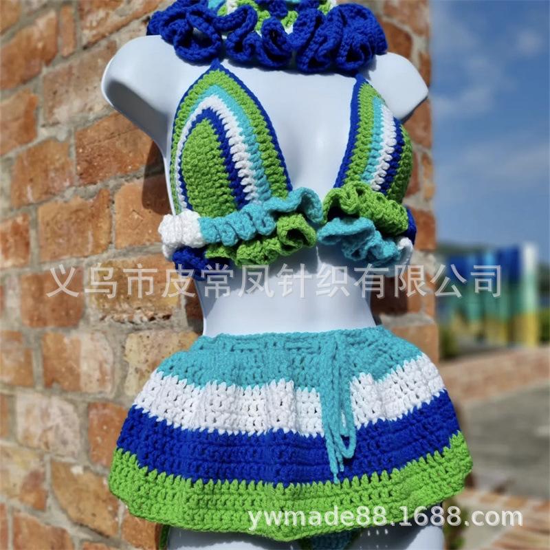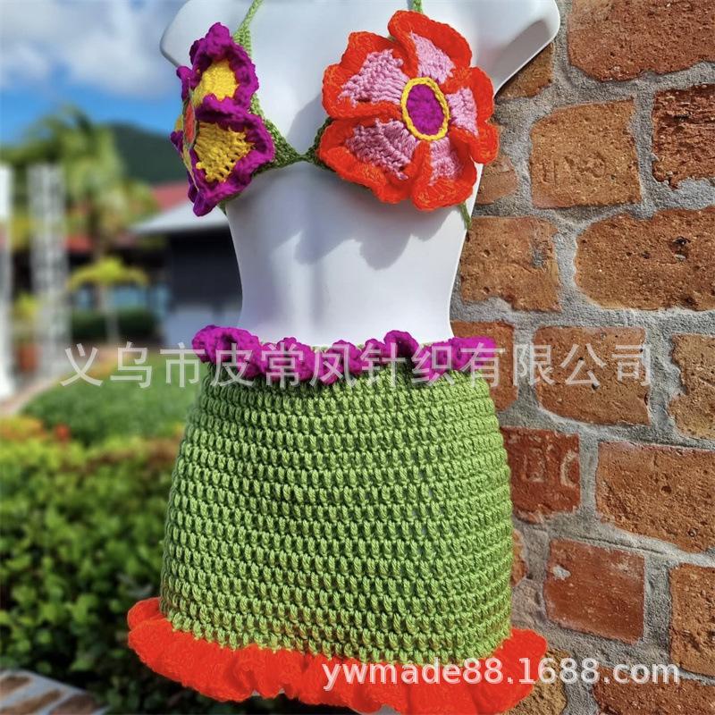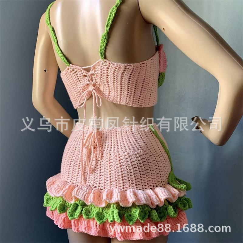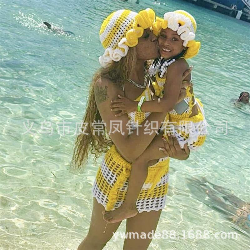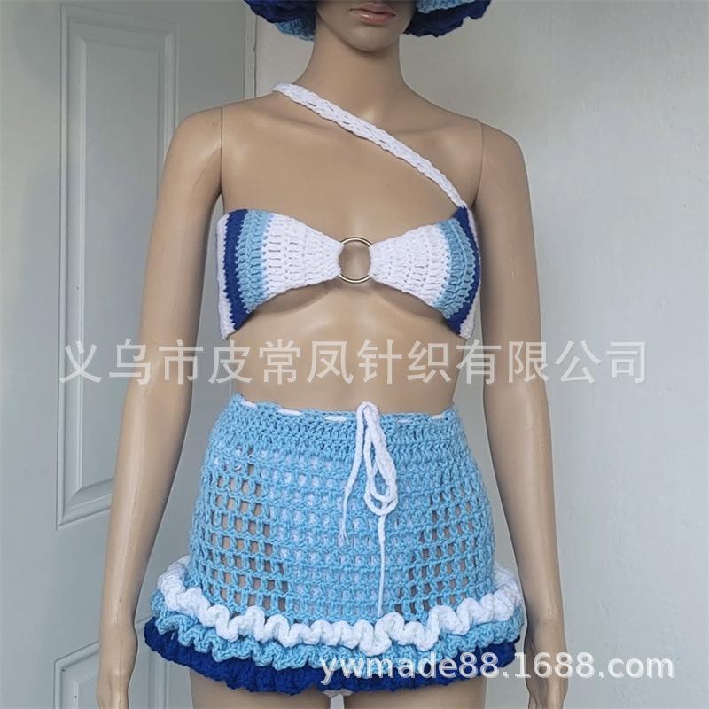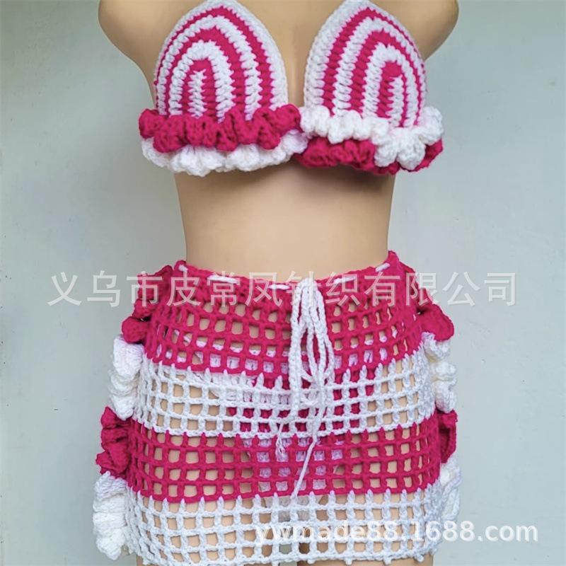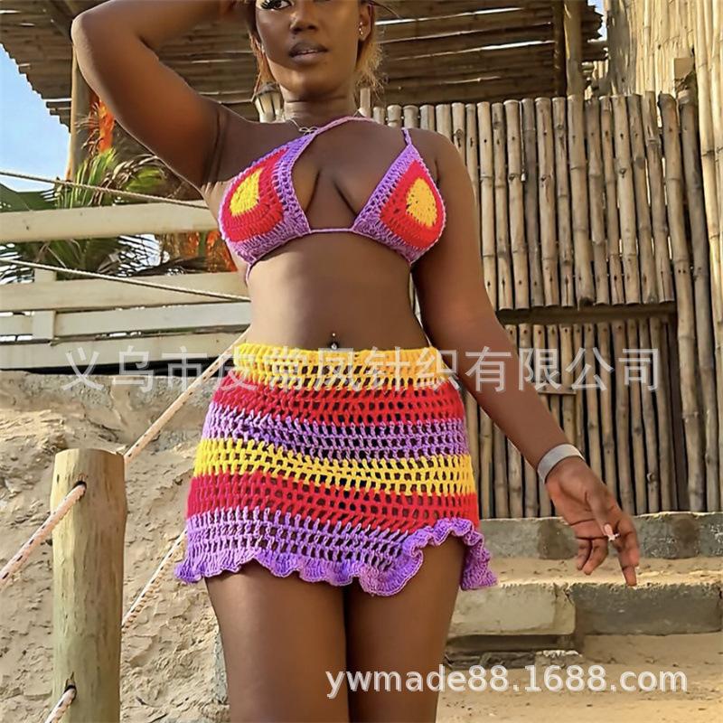 Traje cárdigan bikini nuevo de ganchillo hecho a mano transfronterizo de comercio exterior, moda de personalidad, suéter para damas adultas