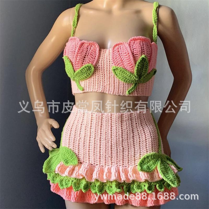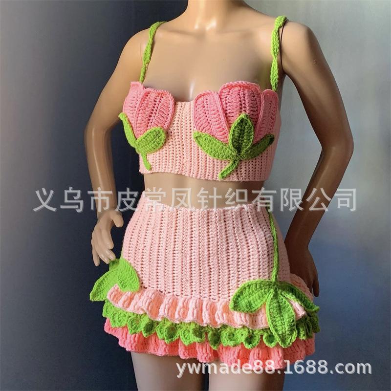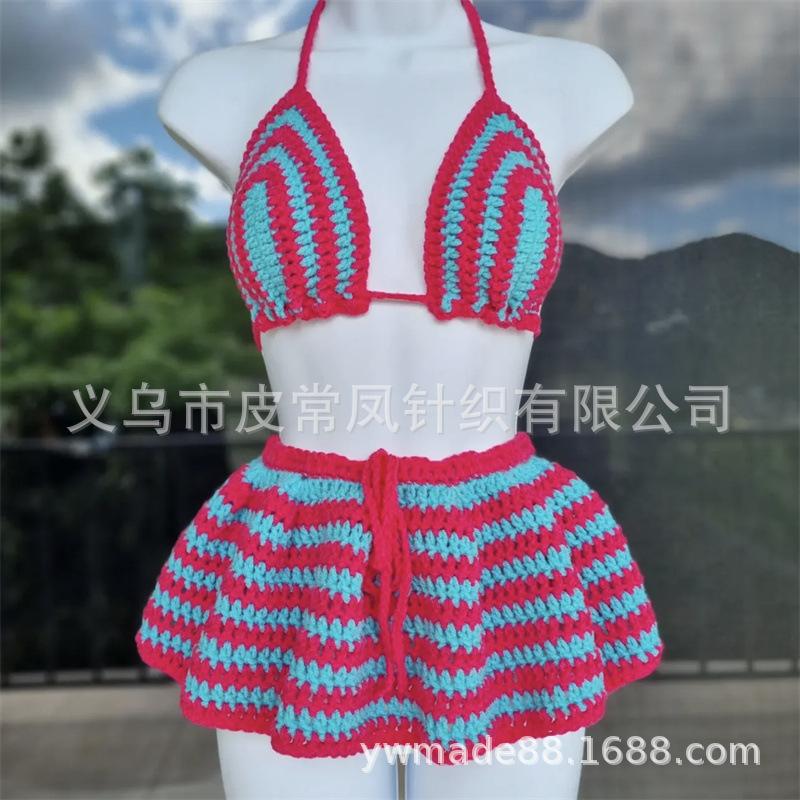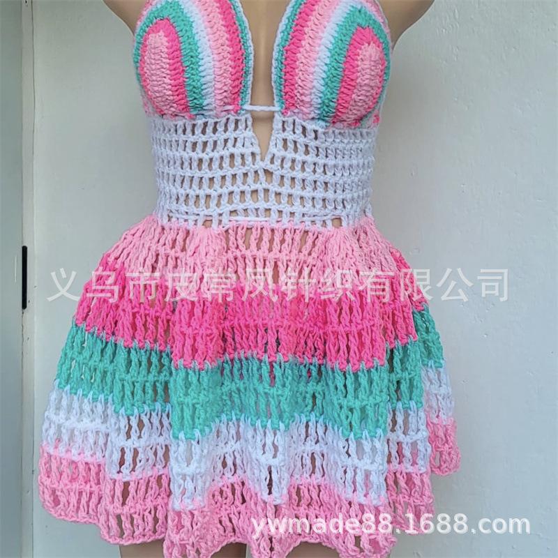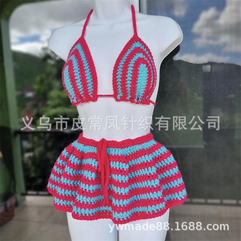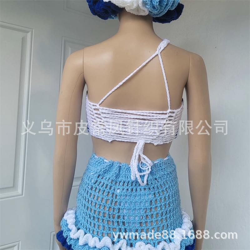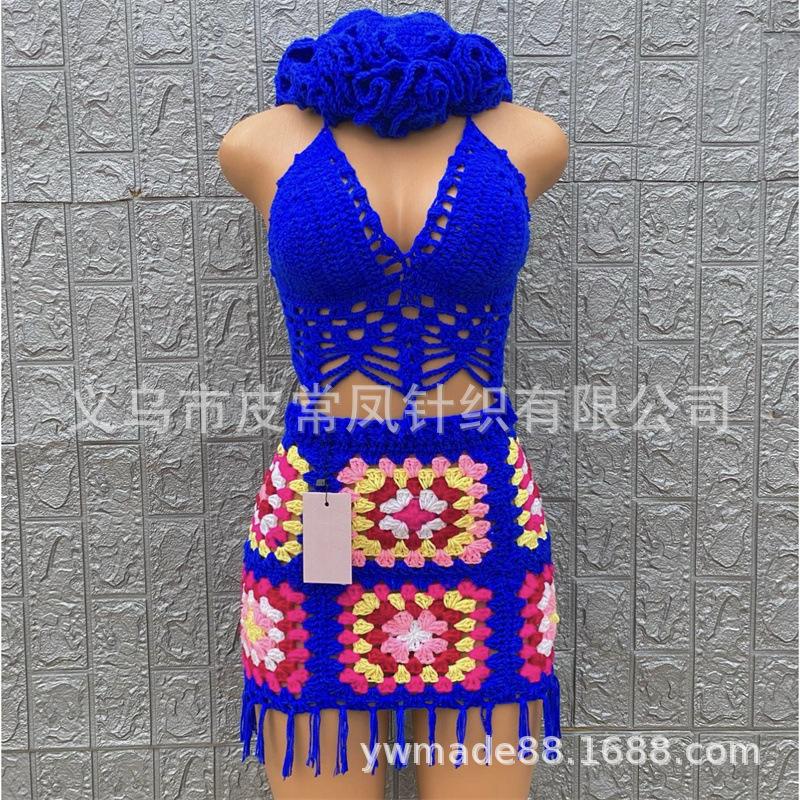 Traje cárdigan bikini nuevo de ganchillo hecho a mano transfronterizo de comercio exterior, moda de personalidad, suéter para damas adultas