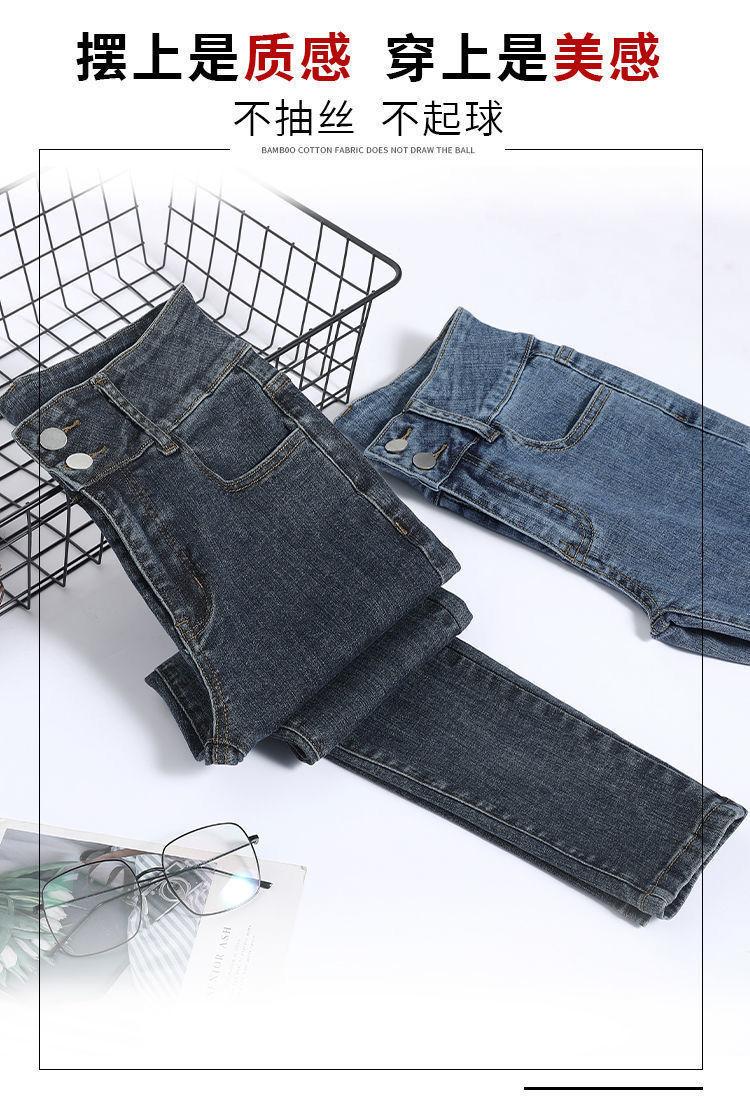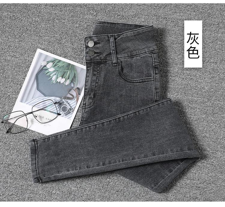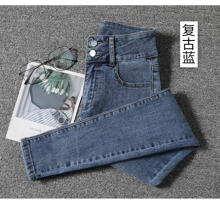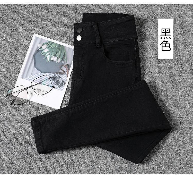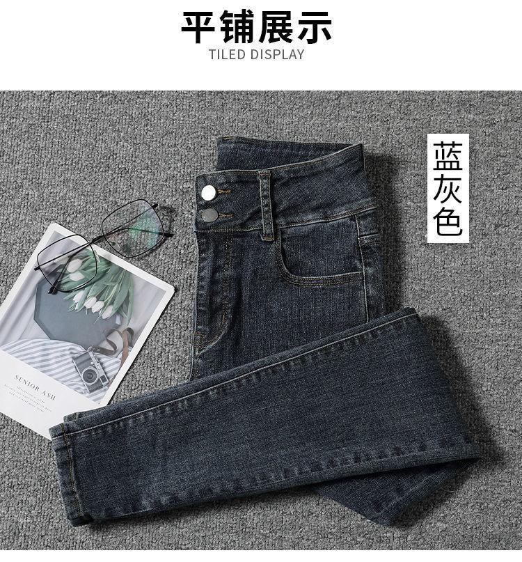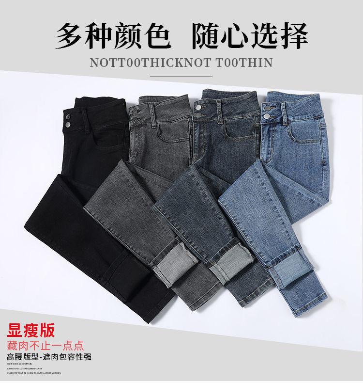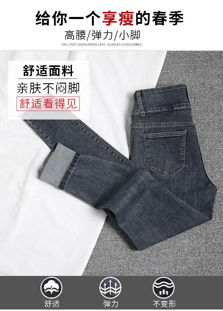 Blanco Compra Uno Lleva Uno Lleva Uno Jeans Elásticos de Cintura Alta para Mujer Primavera y Verano Altos Combinan con Todo Pies Pequeños Pantalones Lápiz Nueve Puntos