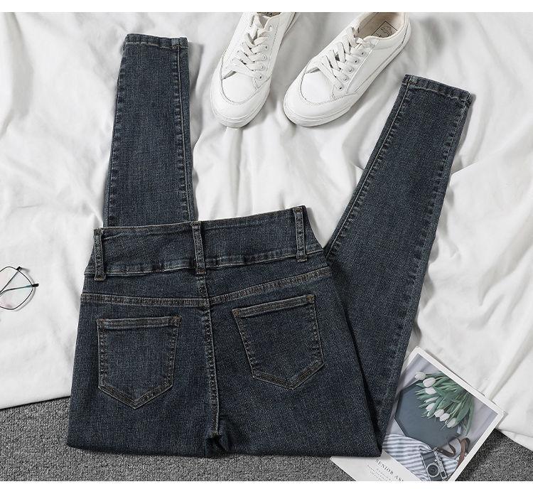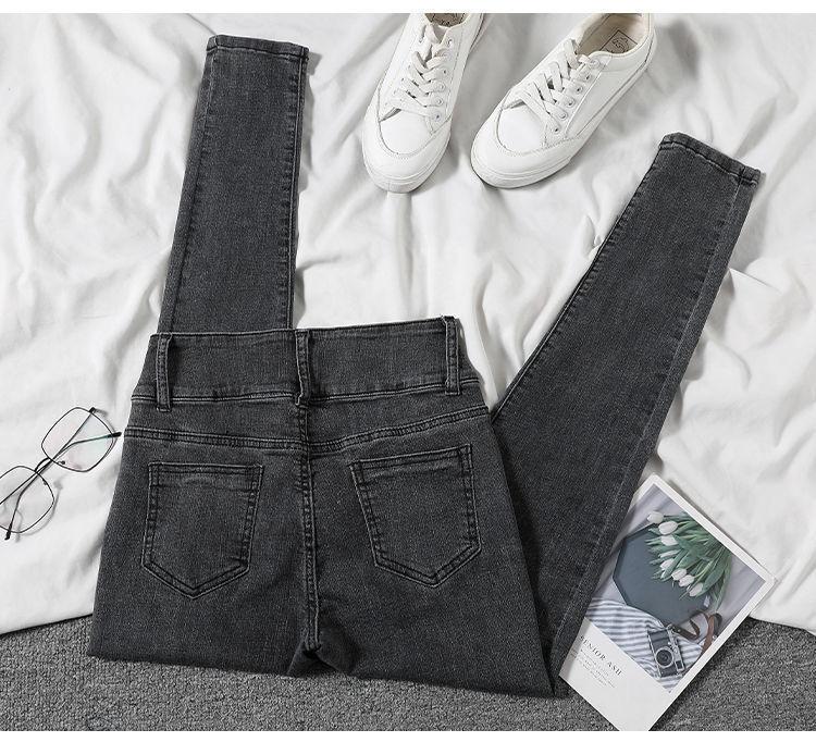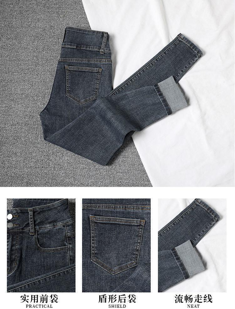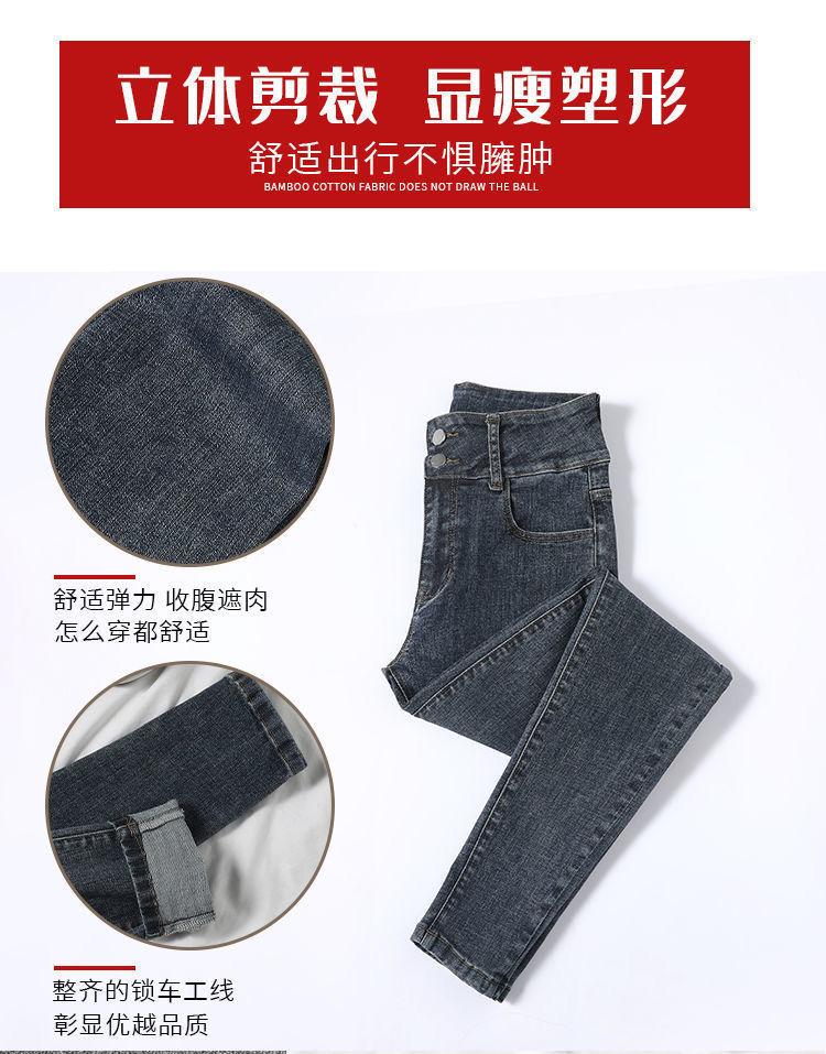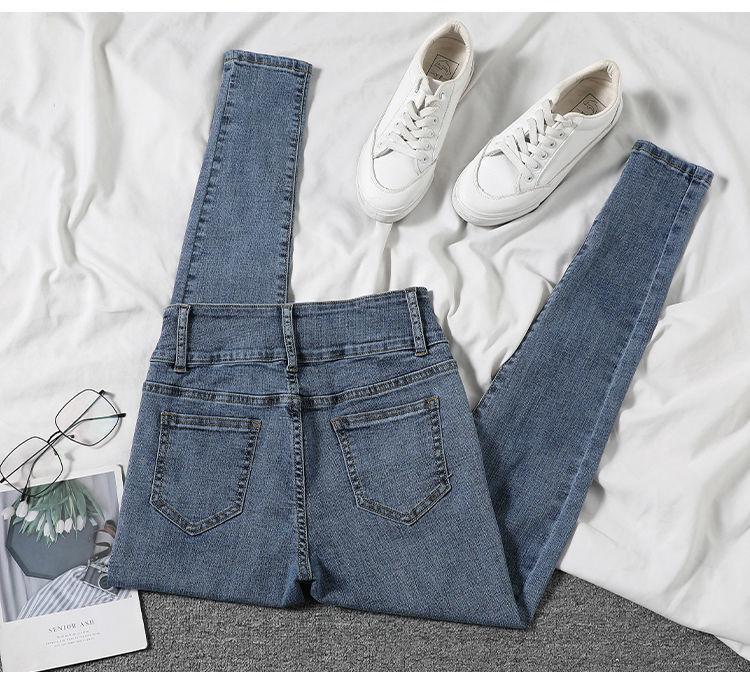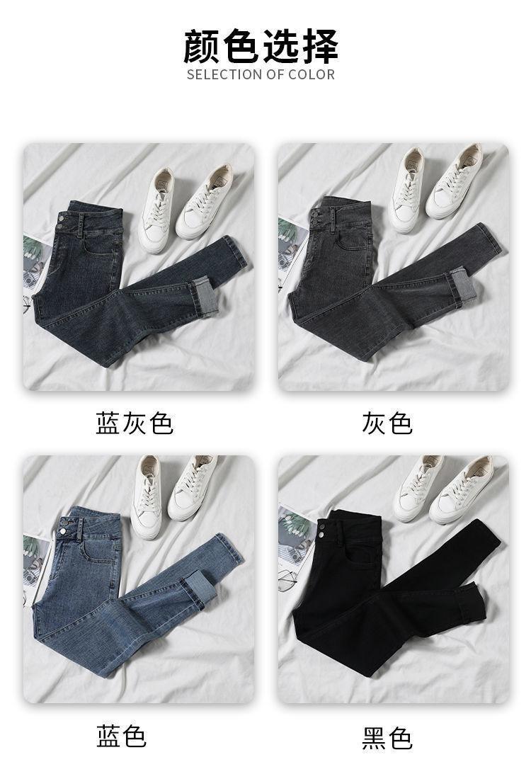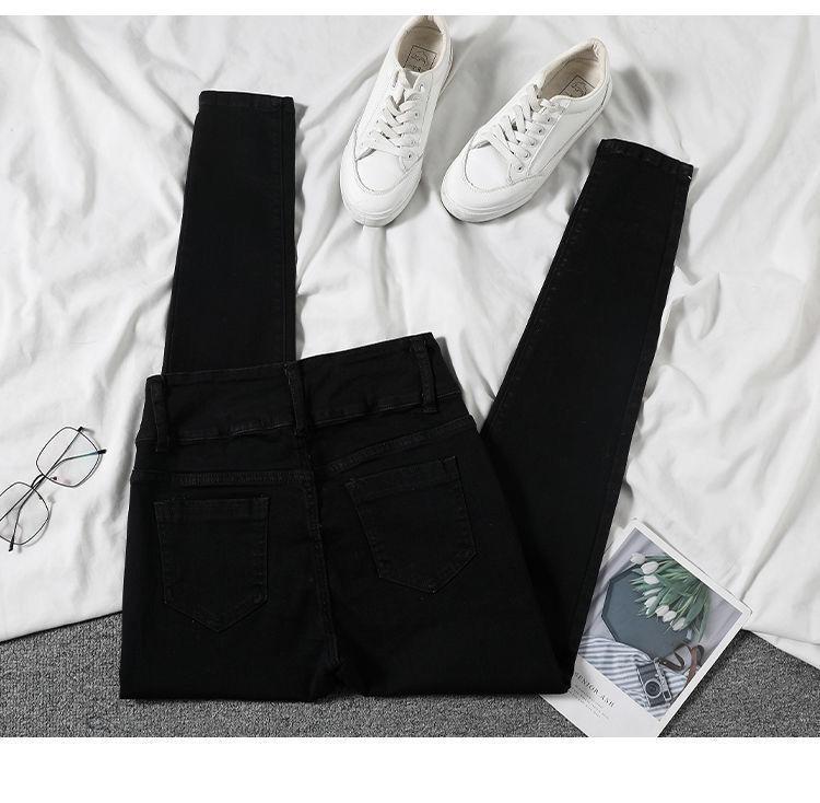Blanco Compra Uno Lleva Uno Lleva Uno Jeans Elásticos de Cintura Alta para Mujer Primavera y Verano Altos Combinan con Todo Pies Pequeños Pantalones Lápiz Nueve Puntos