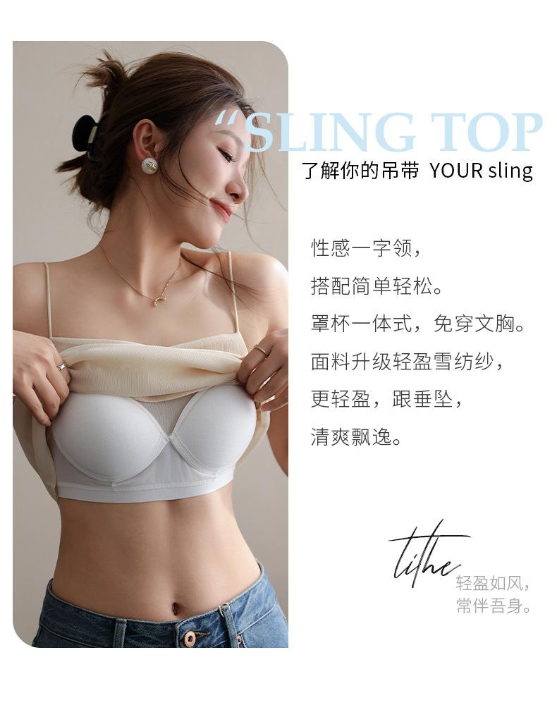 Verano Nuevo Camisola Ropa Interior de Mujer con Almohadillas para el Busto y Cuello de una Línea Ropa Exterior Seda de Hielo Pequeño Suspbottomer Hermosa Espalda Top de Fondo
