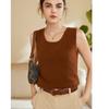 Camisola de cachemira para mujer 100% cachemira otoño e invierno Nueva camisa de punto sin mangas con cuello en U y parte interior pequeña y ajustada