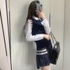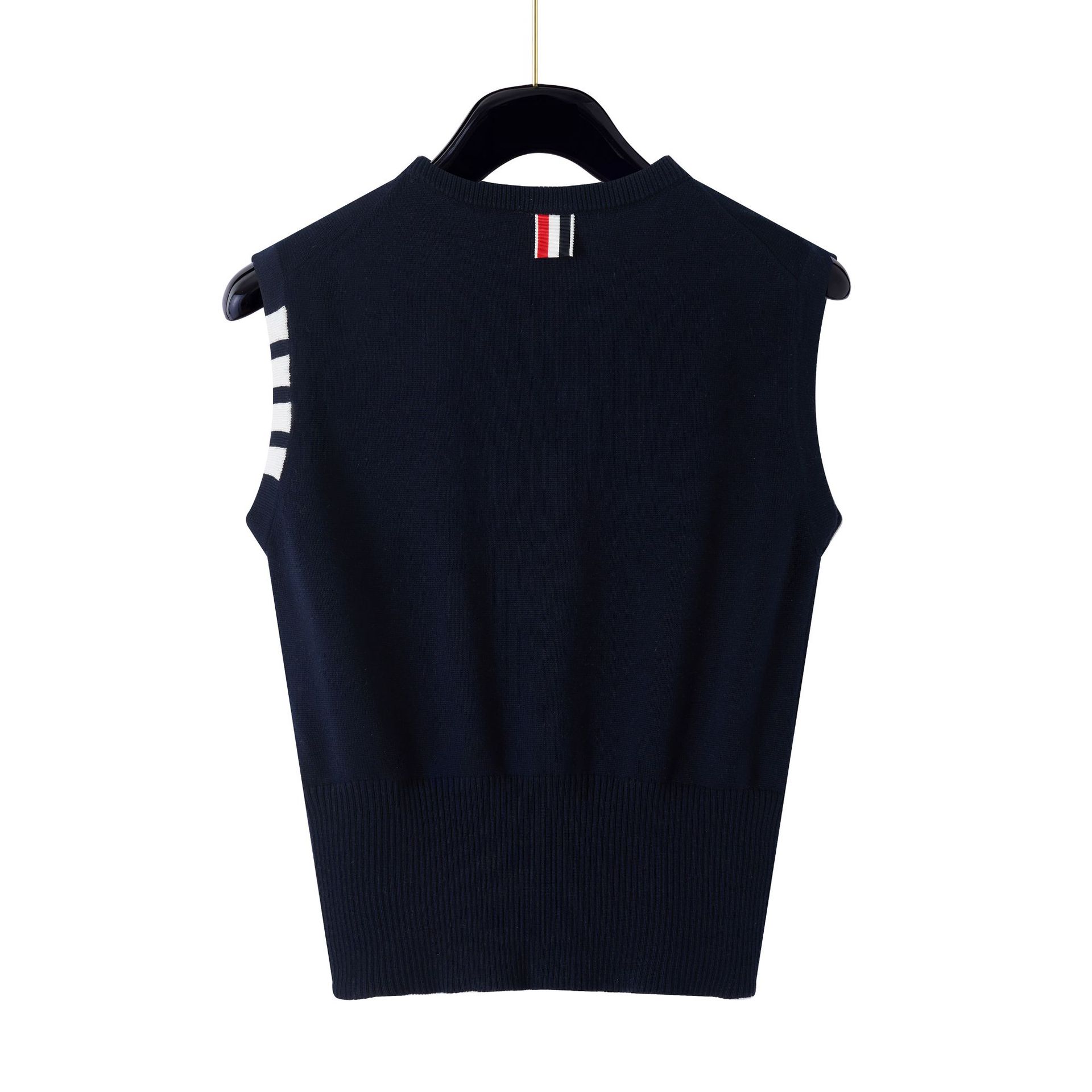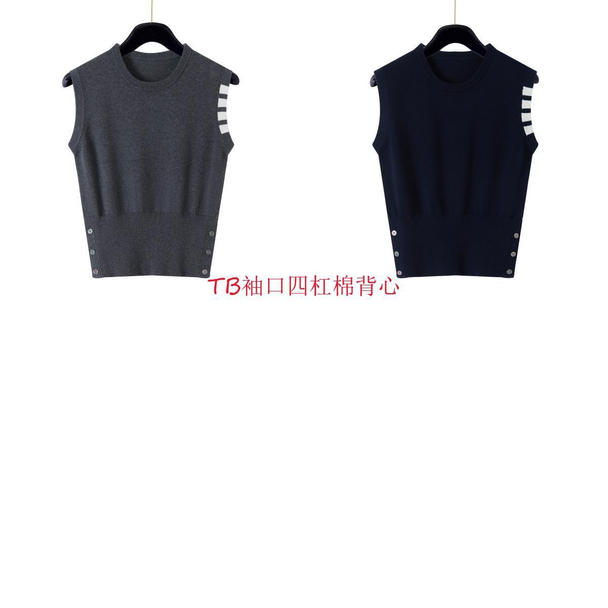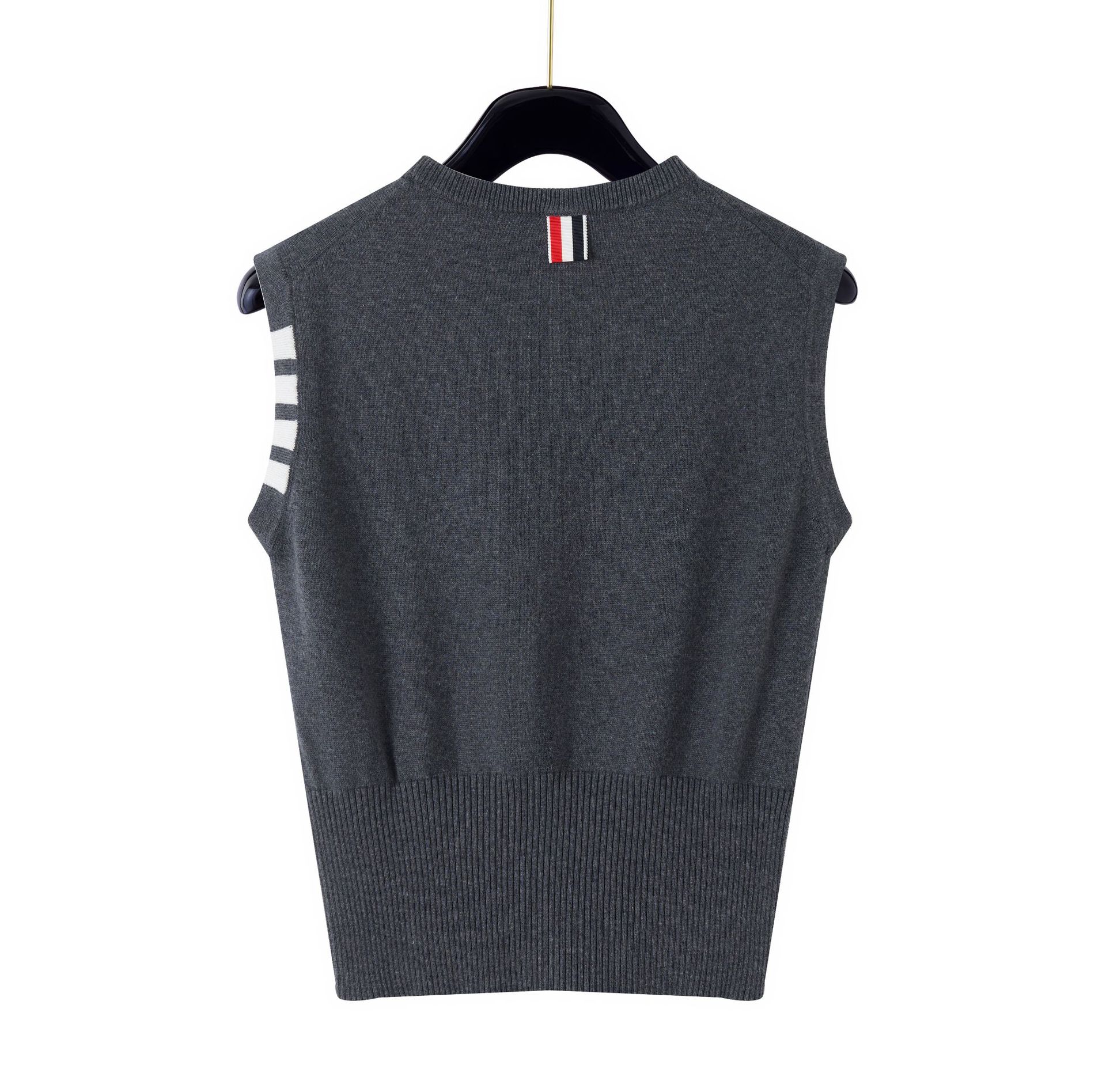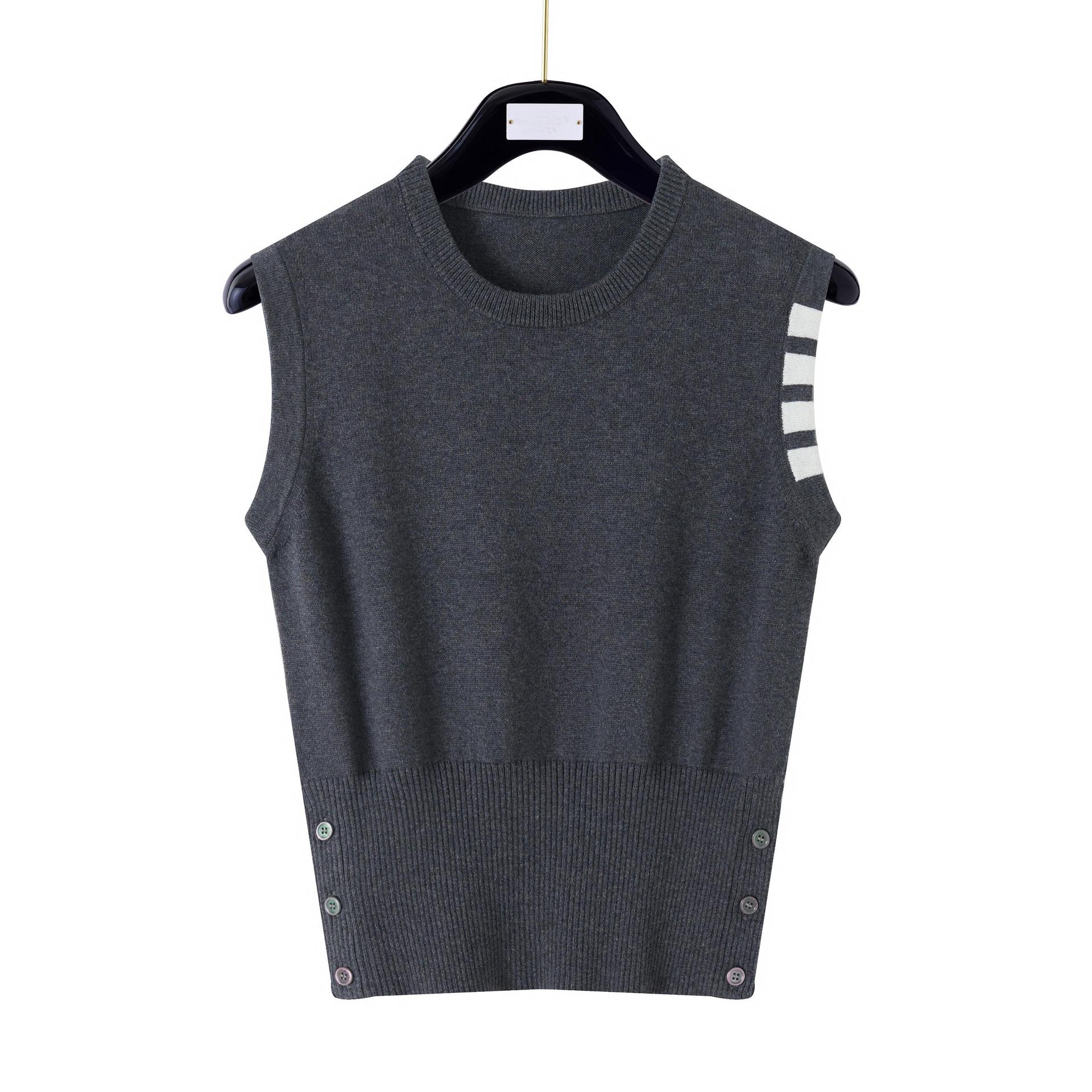 TB Primavera Otoño e Invierno Nuevo Chaleco de Punto de Cuello Redondo para Mujer Casual Combinable Estilo Academia Puño Cuatro Barras Chaleco de Punto