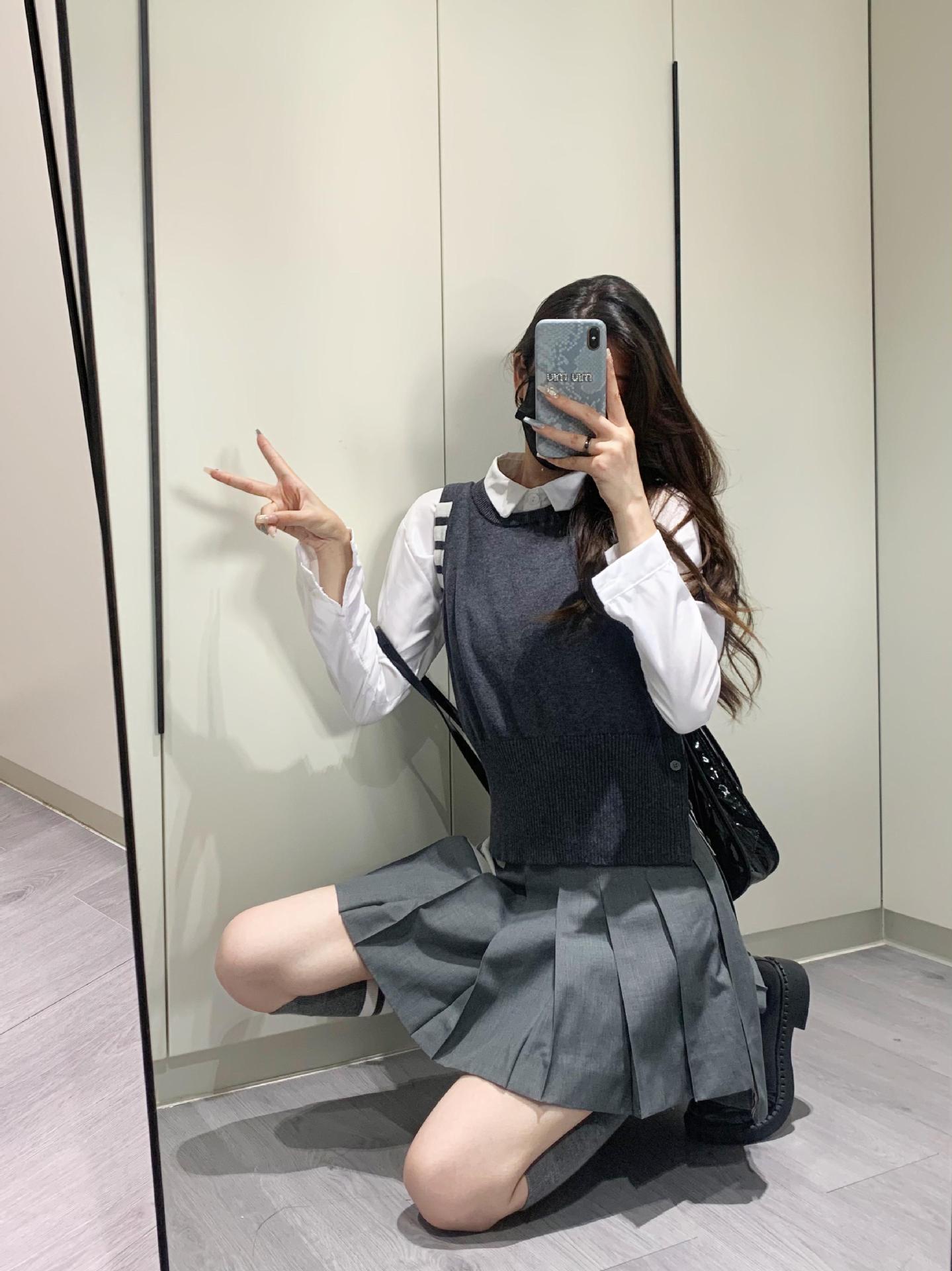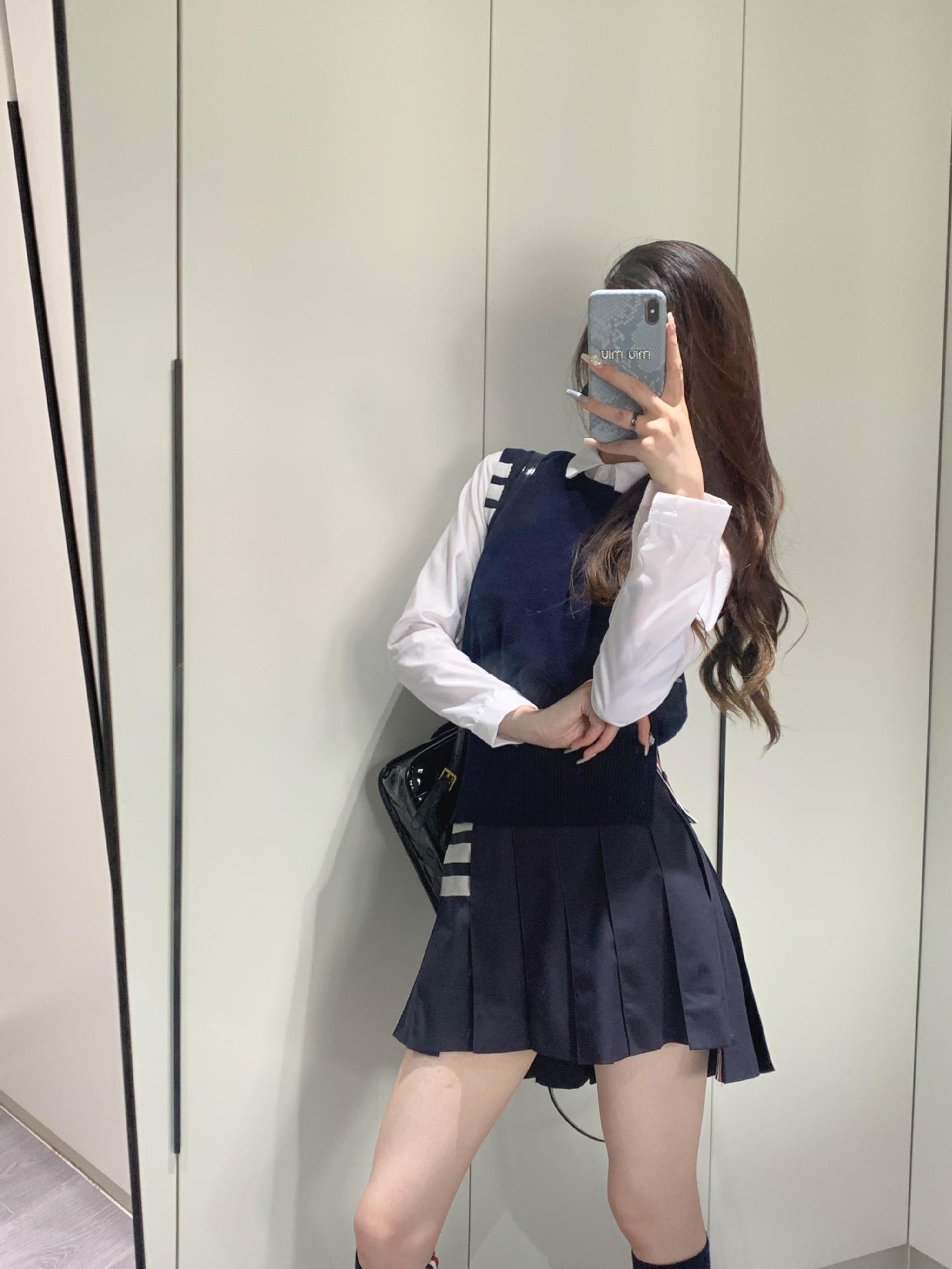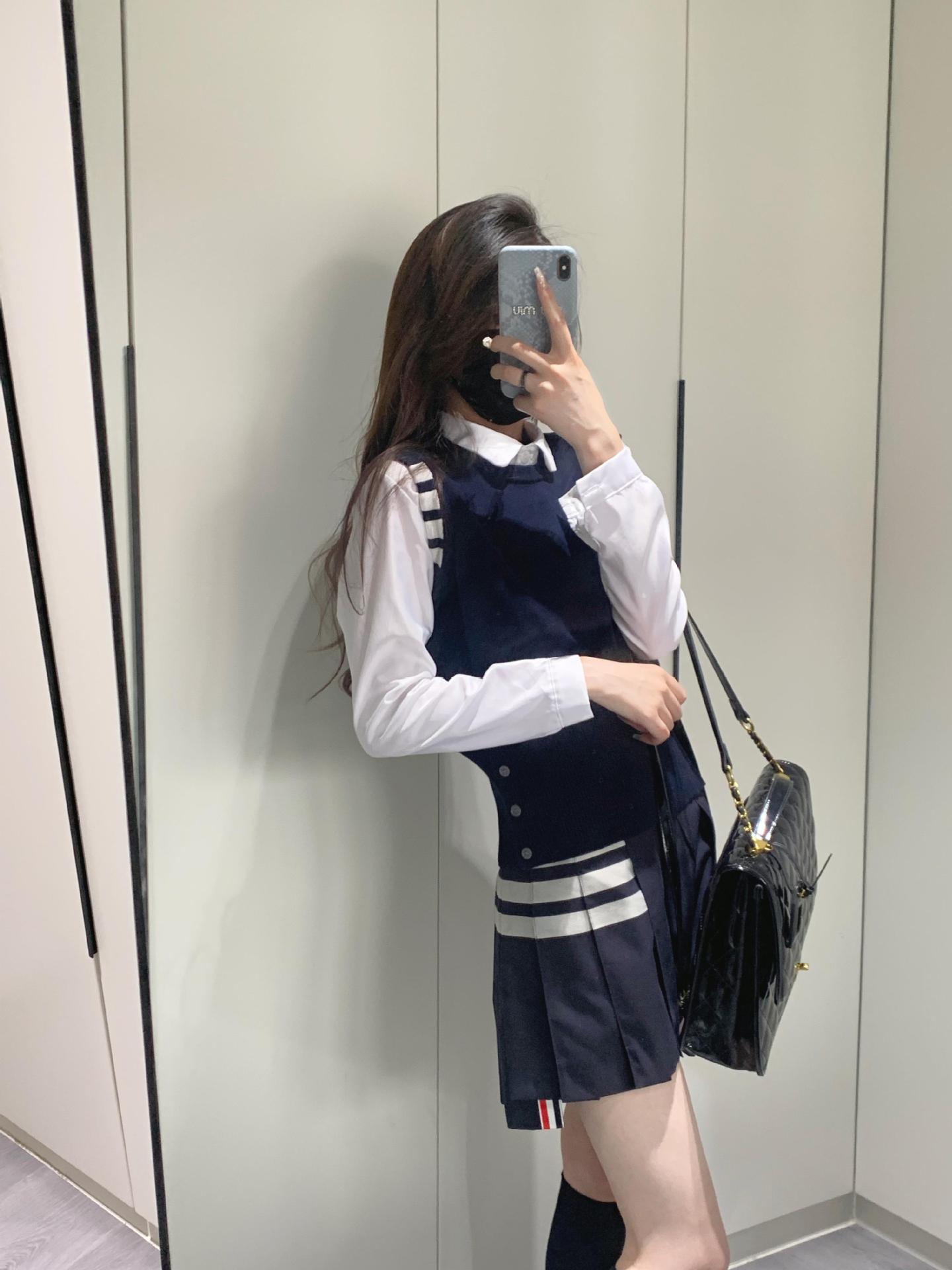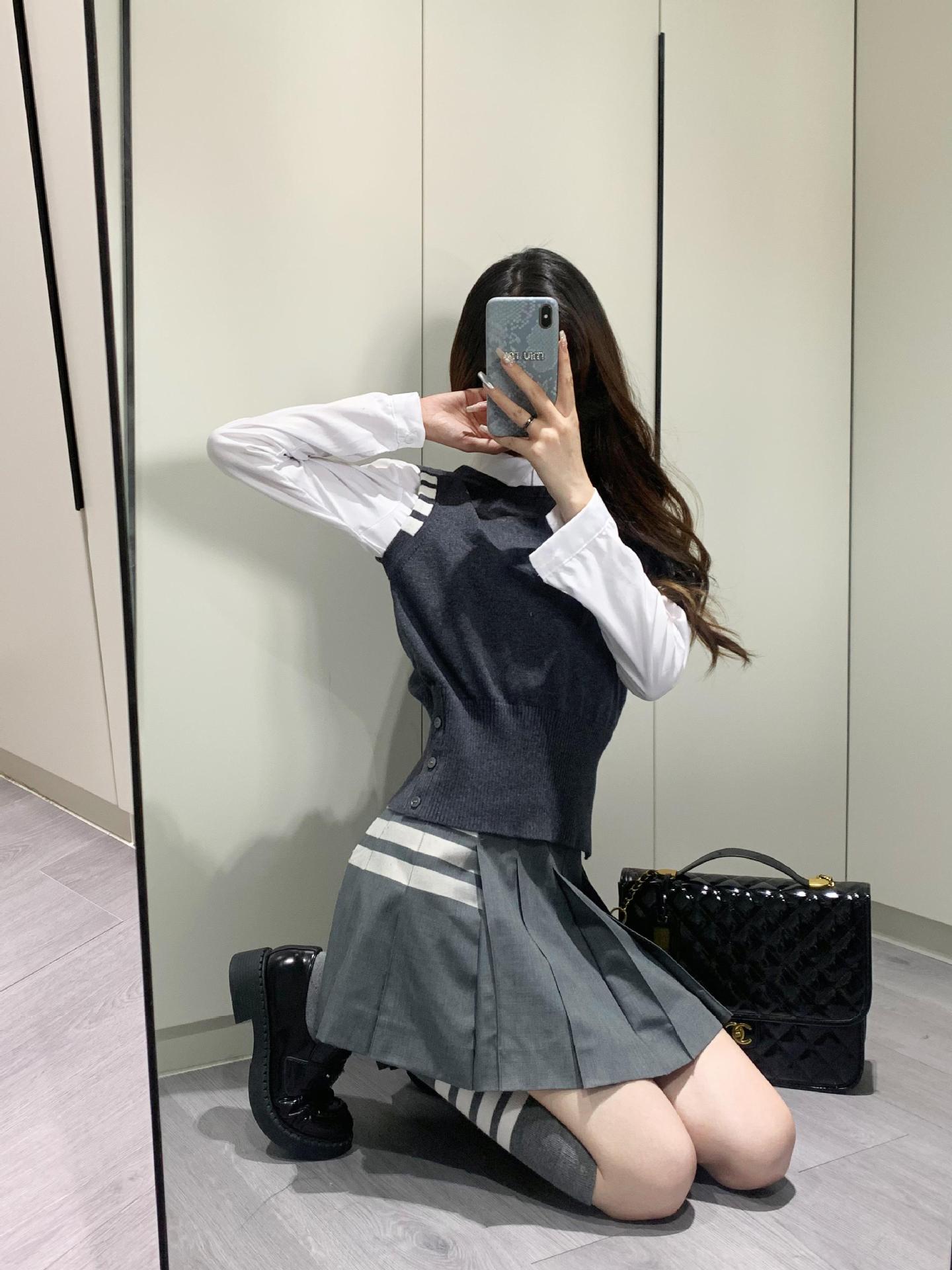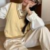 TB Primavera Otoño e Invierno Nuevo Chaleco de Punto de Cuello Redondo para Mujer Casual Combinable Estilo Academia Puño Cuatro Barras Chaleco de Punto
