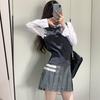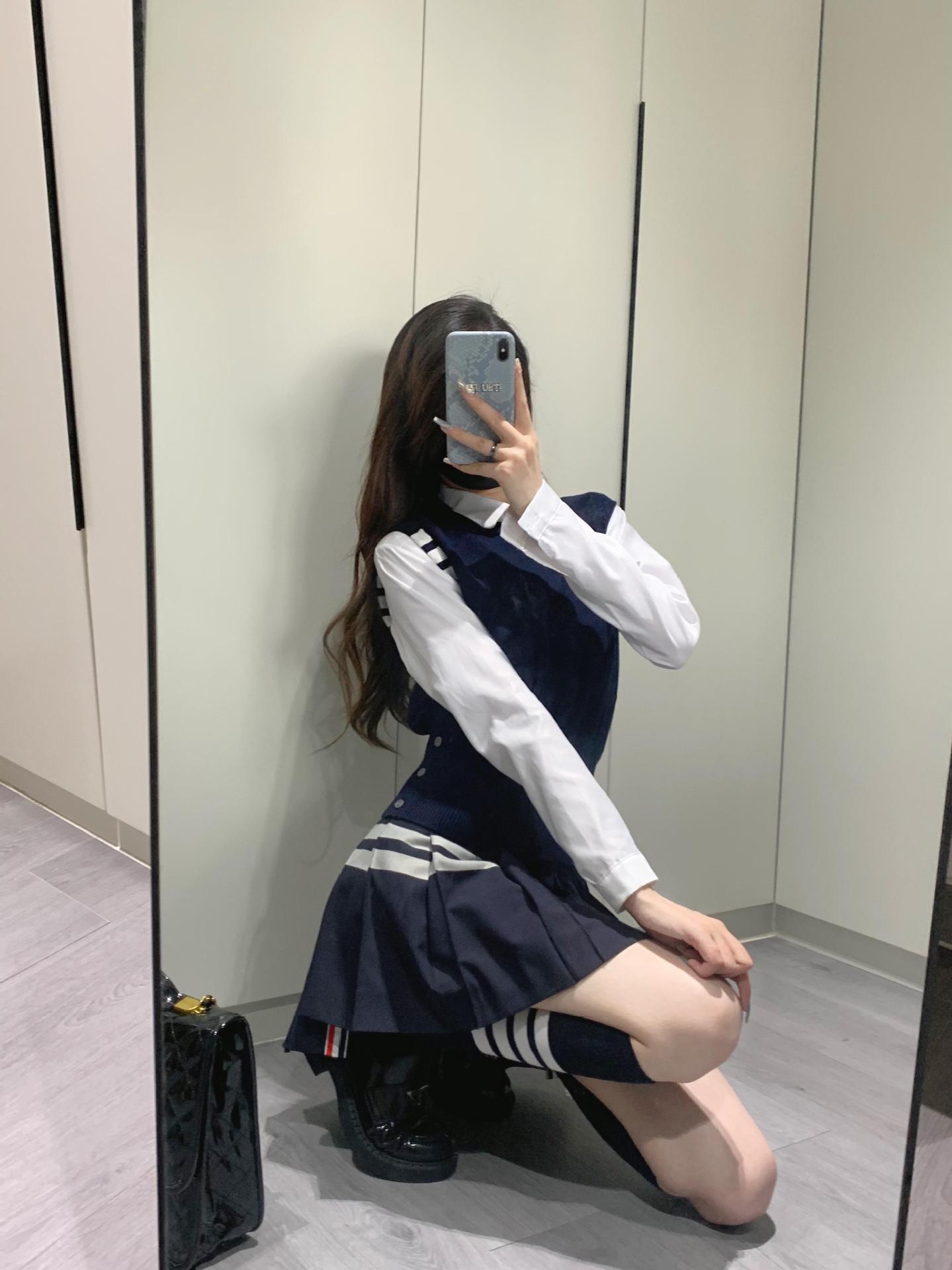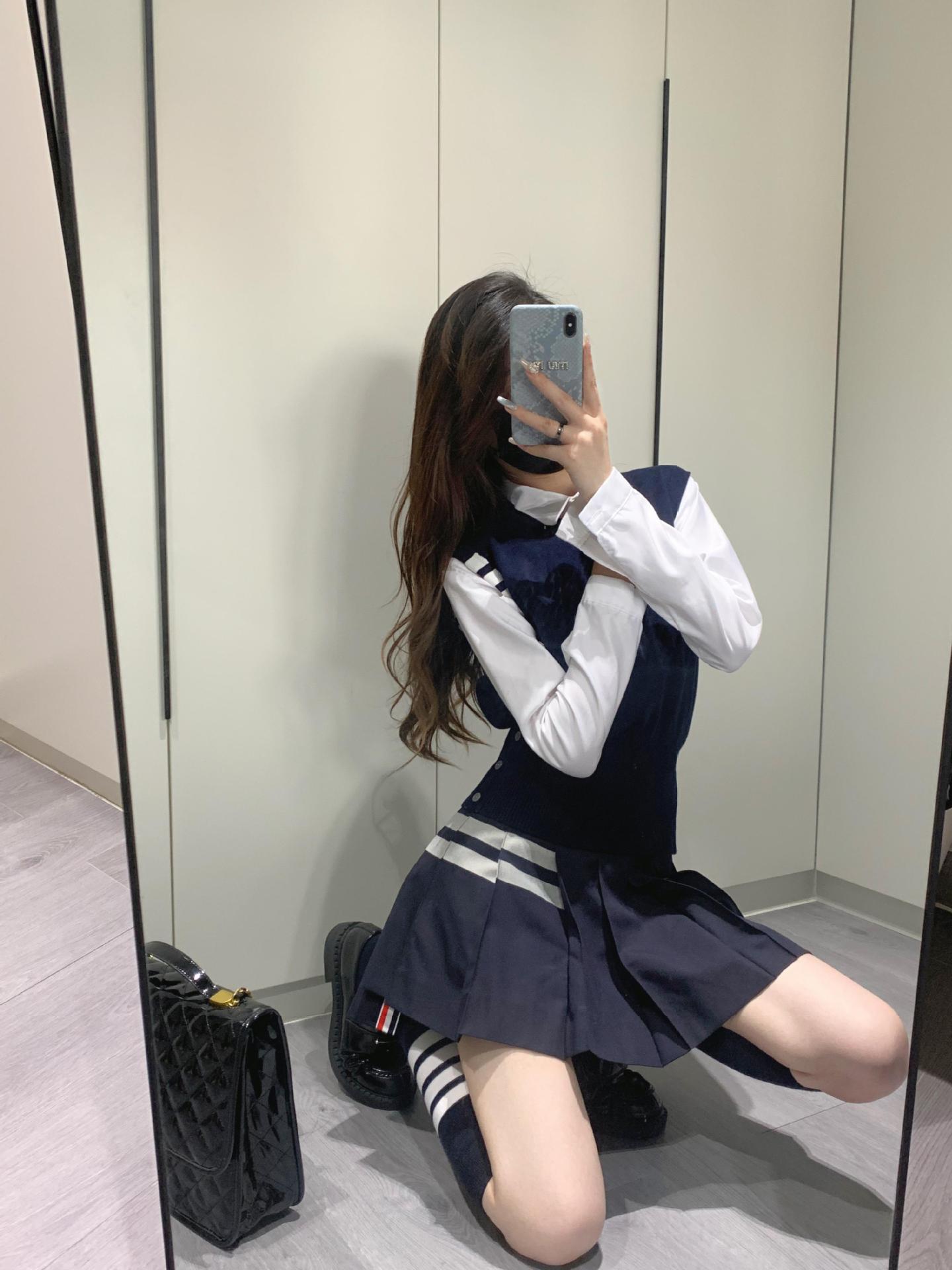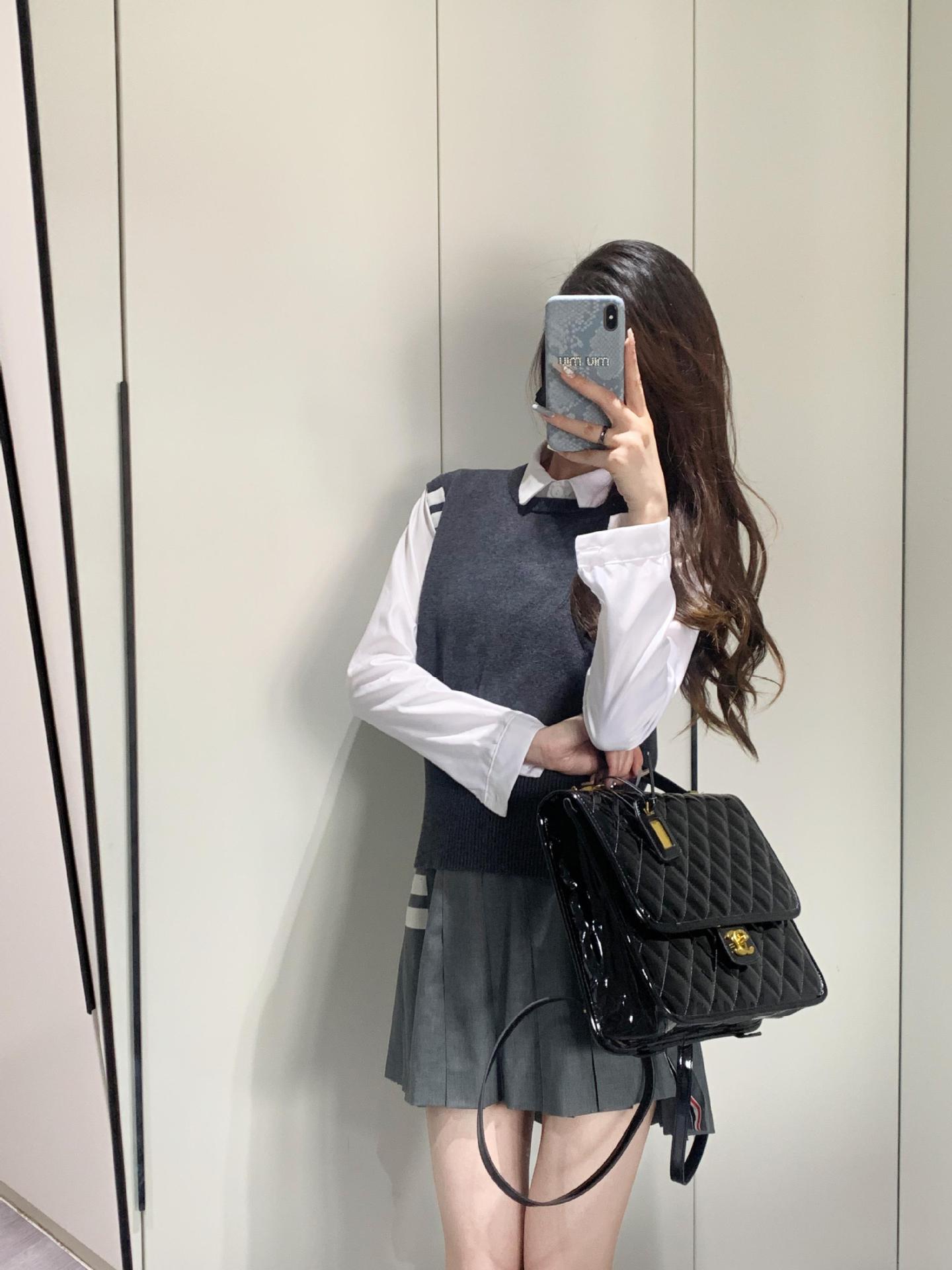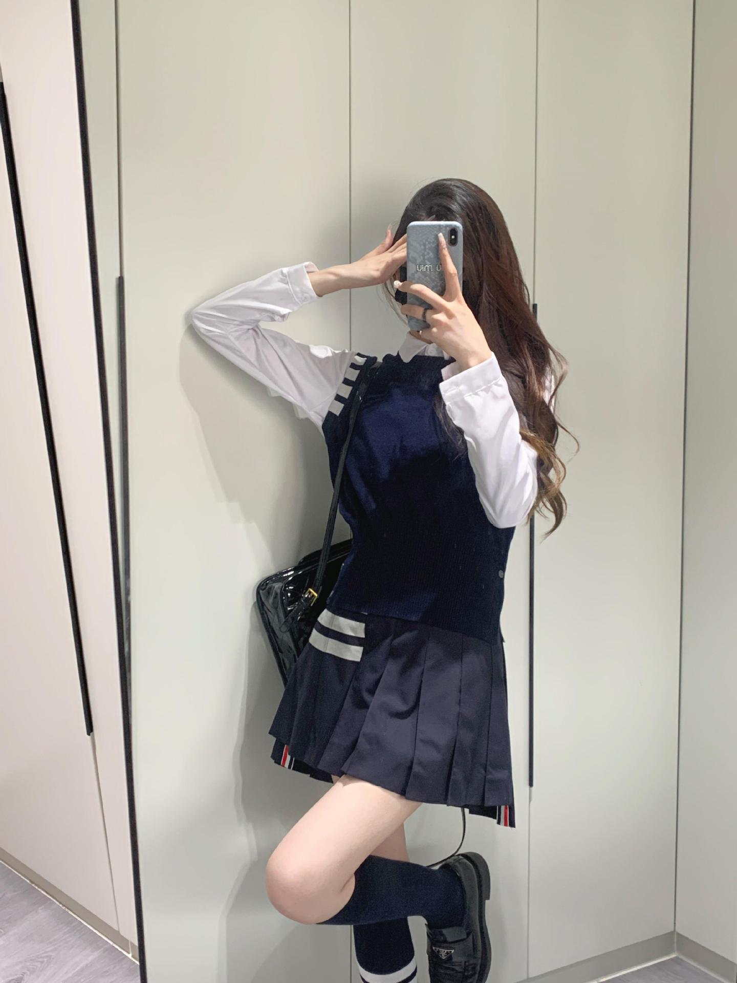TB Primavera Otoño e Invierno Nuevo Chaleco de Punto de Cuello Redondo para Mujer Casual Combinable Estilo Academia Puño Cuatro Barras Chaleco de Punto