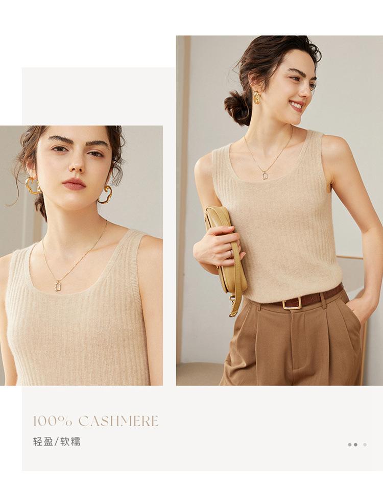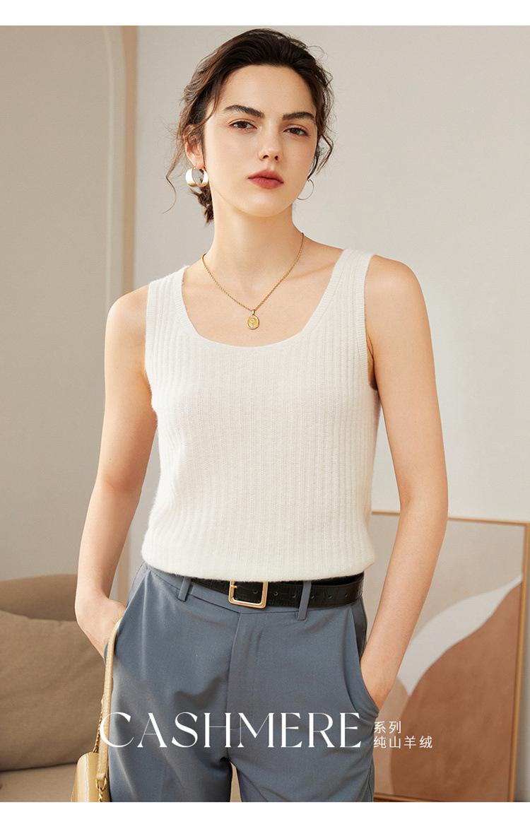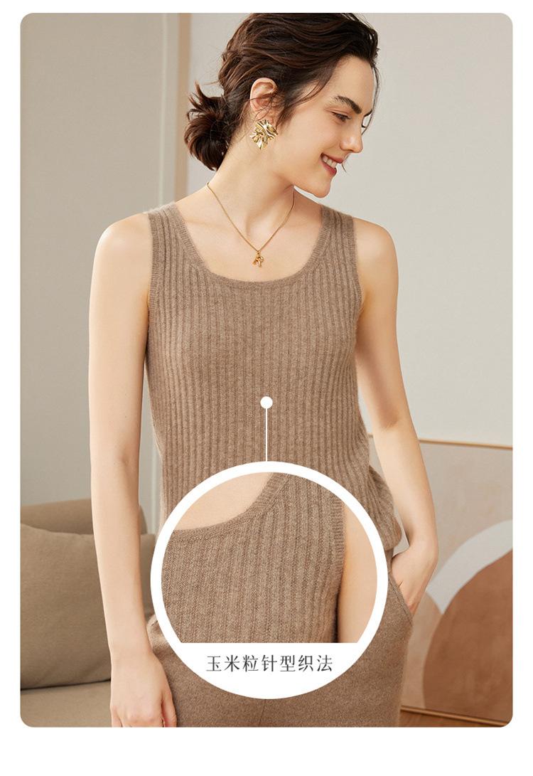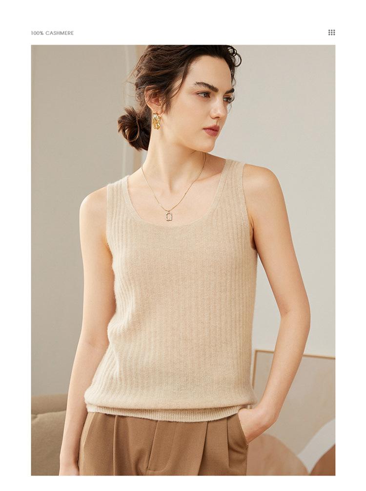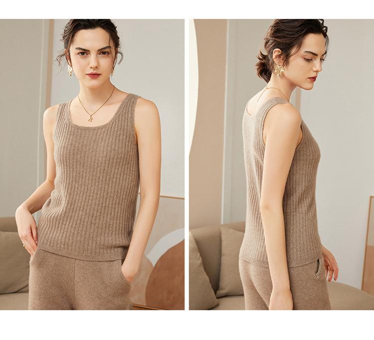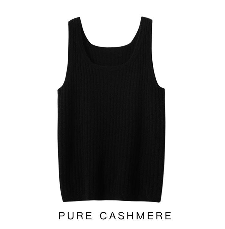 Camisola de cachemira para mujer, cuello en U, otoño e invierno, nueva, 100 % cachemira, sin mangas, de punto, con base interior pequeña y ajustada