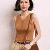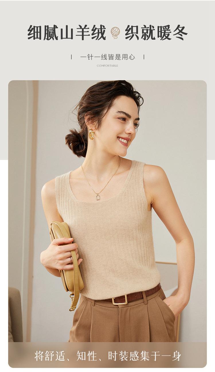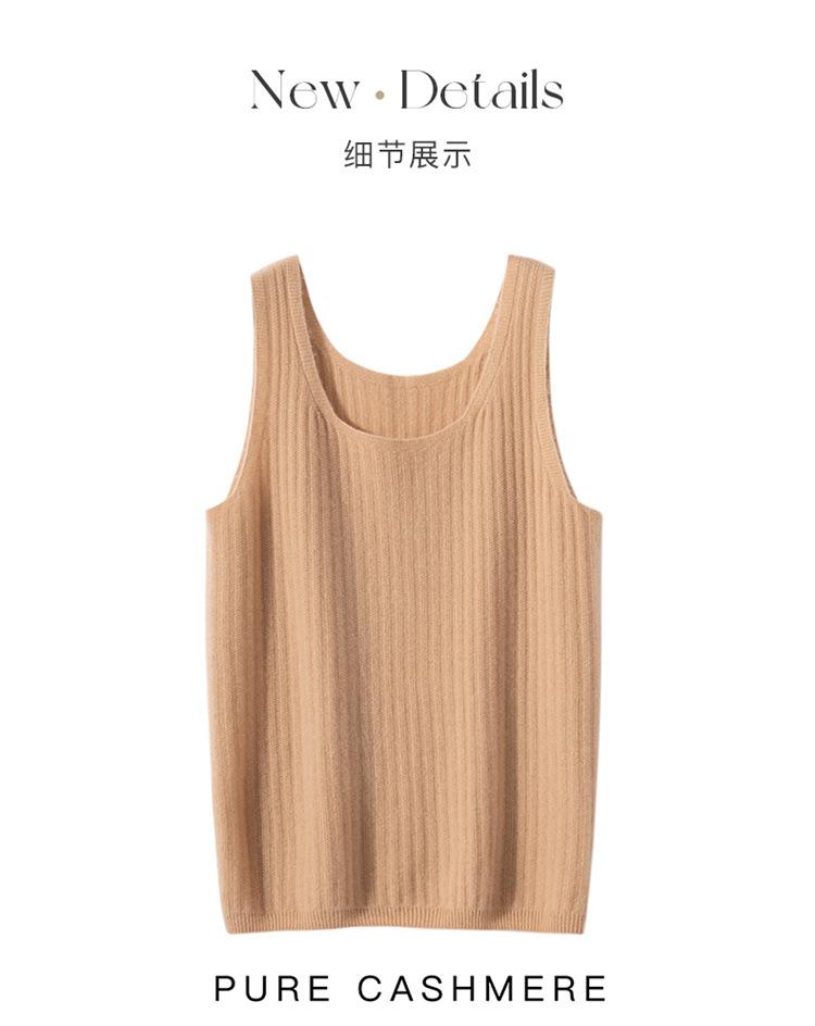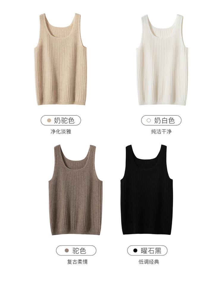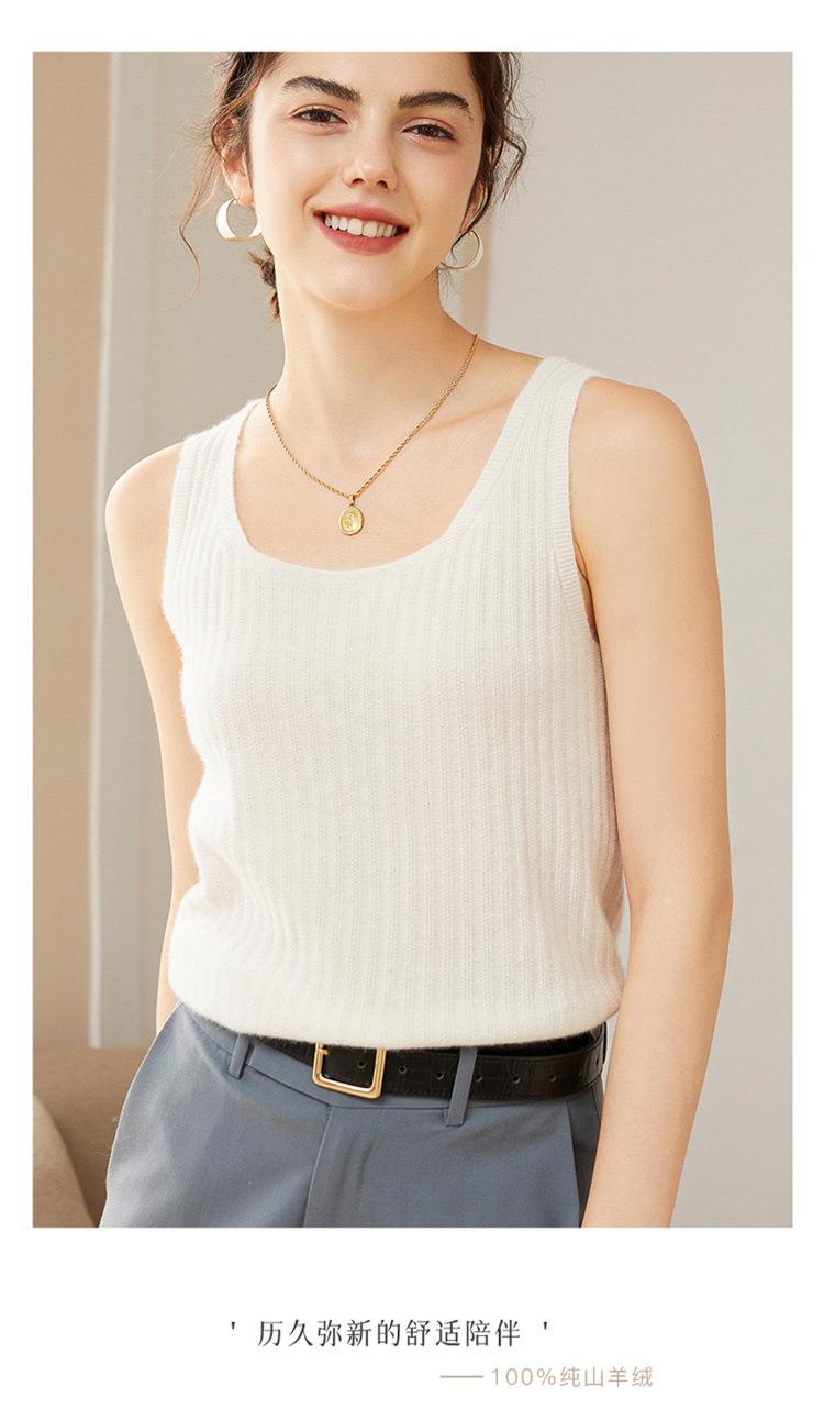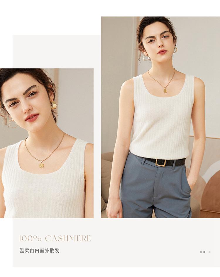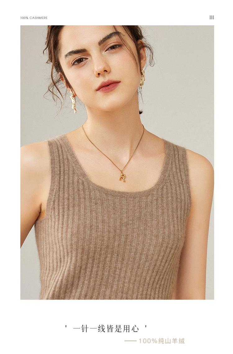 Camisola de cachemira para mujer, cuello en U, otoño e invierno, nueva, 100 % cachemira, sin mangas, de punto, con base interior pequeña y ajustada