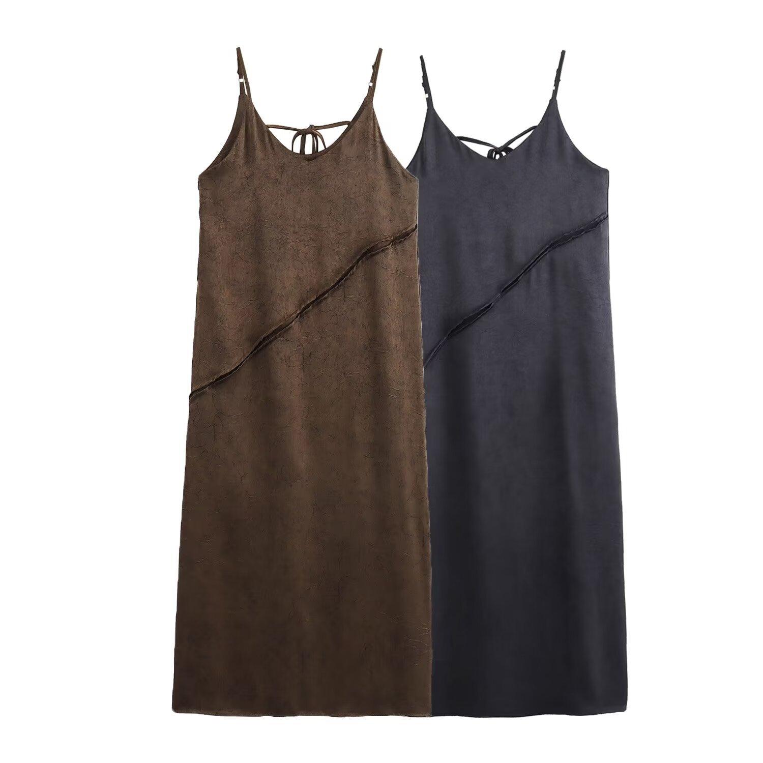 Vestido ajustado sin mangas con cordones en la espalda, estilo europeo y americano, novedad de verano 2024, sexy, con tirantes finos, de color puro