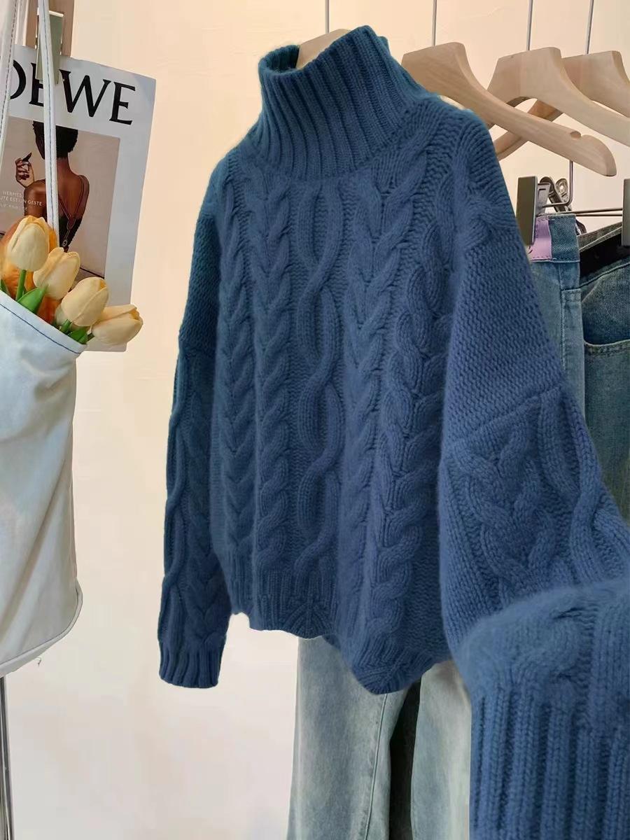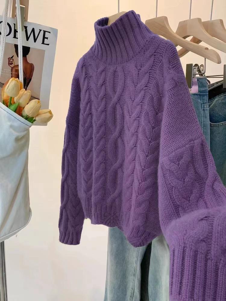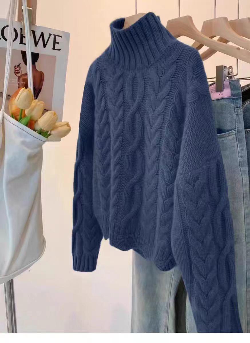 Suéter de Cuello Alto con Cable Retro para Mujer Suéter de Color Sólido para Mujer Suelto Casual para Ir al Trabajo Otoño e Invierno Casual Grueso Suéter Base