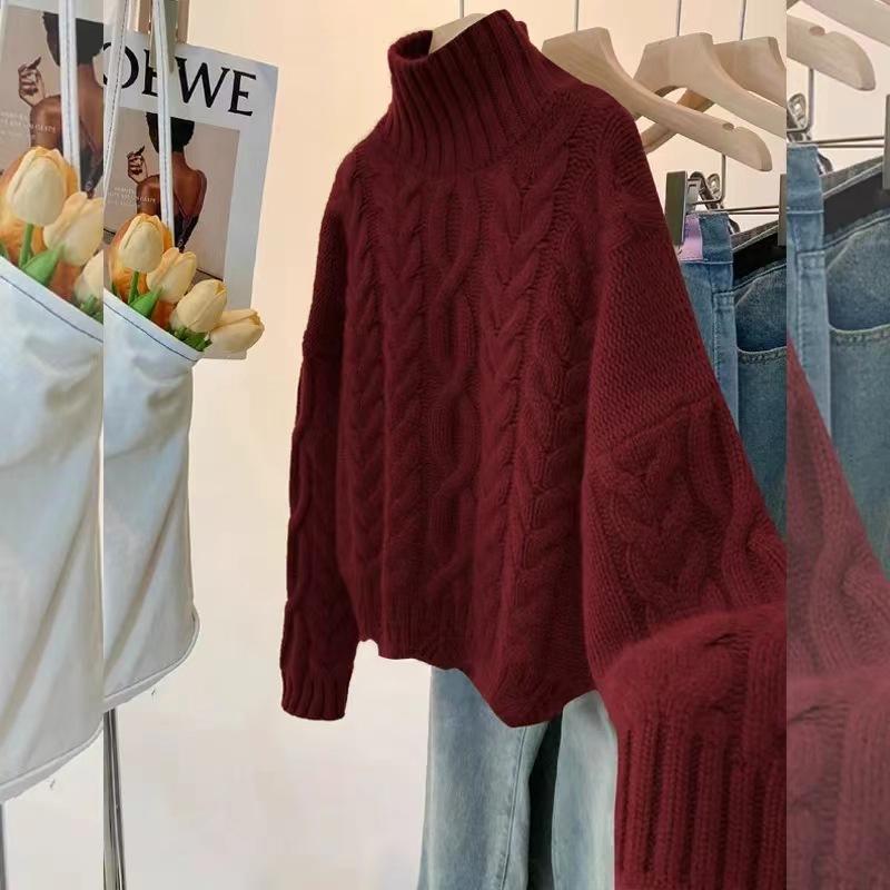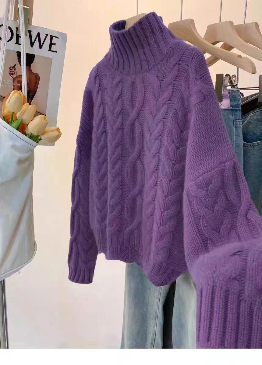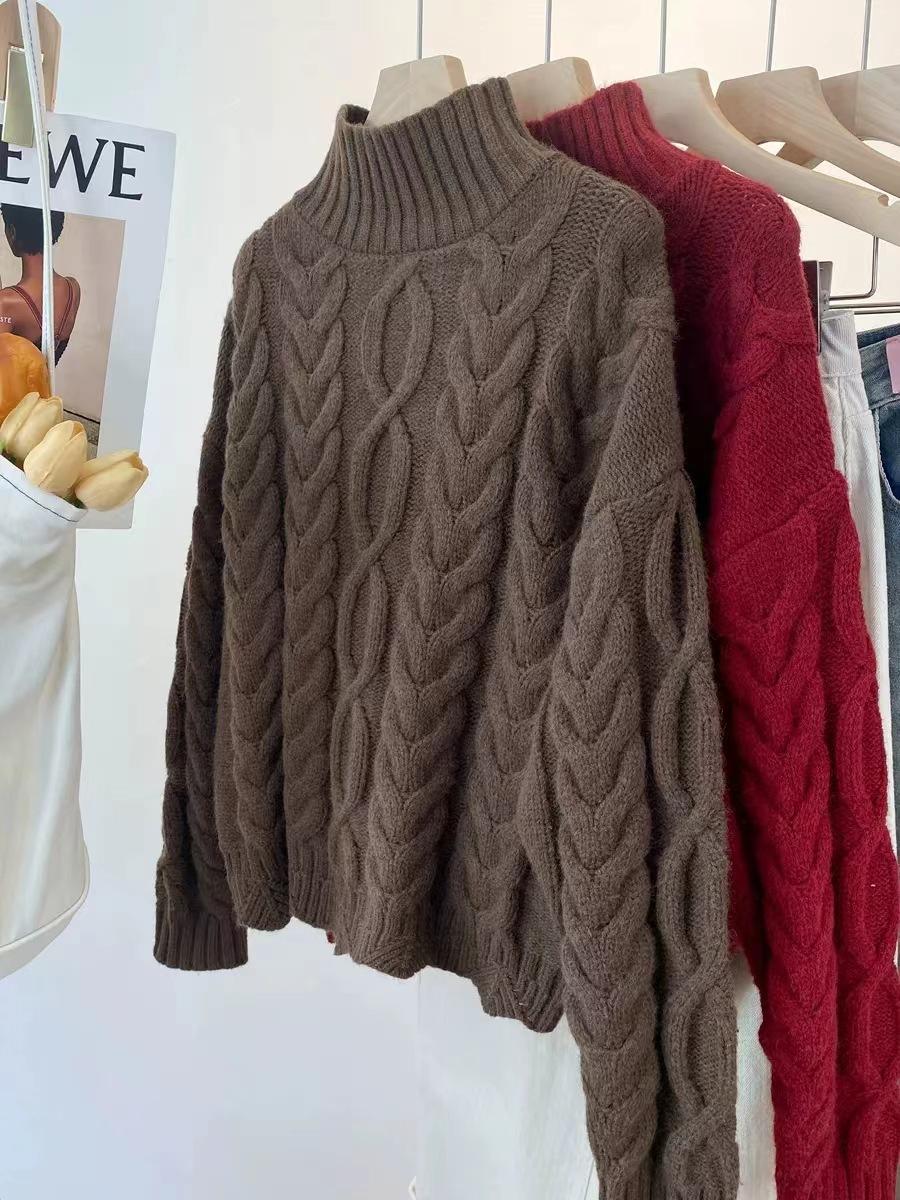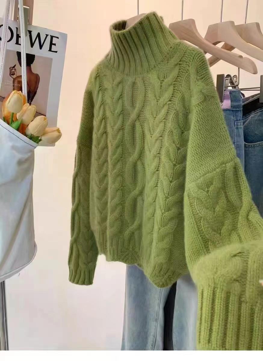 Suéter de Cuello Alto con Cable Retro para Mujer Suéter de Color Sólido para Mujer Suelto Casual para Ir al Trabajo Otoño e Invierno Casual Grueso Suéter Base