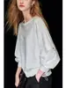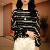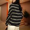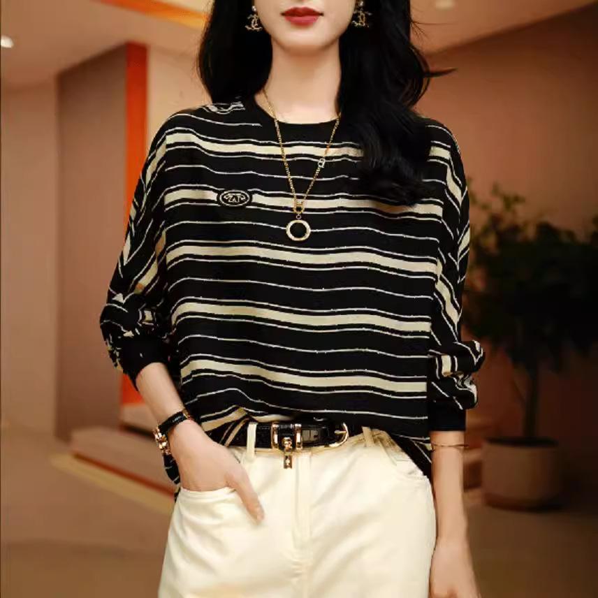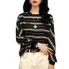 Otoño 2024 Nueva camiseta de manga larga para mujer, elegante, a rayas, estilo holgado, top para mujer, combinable