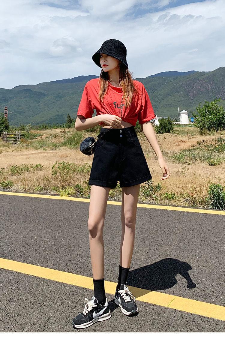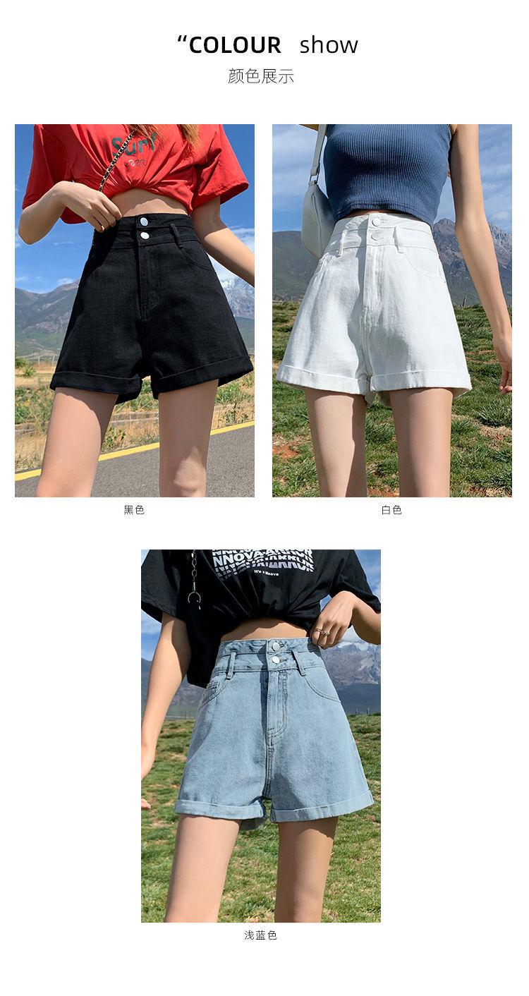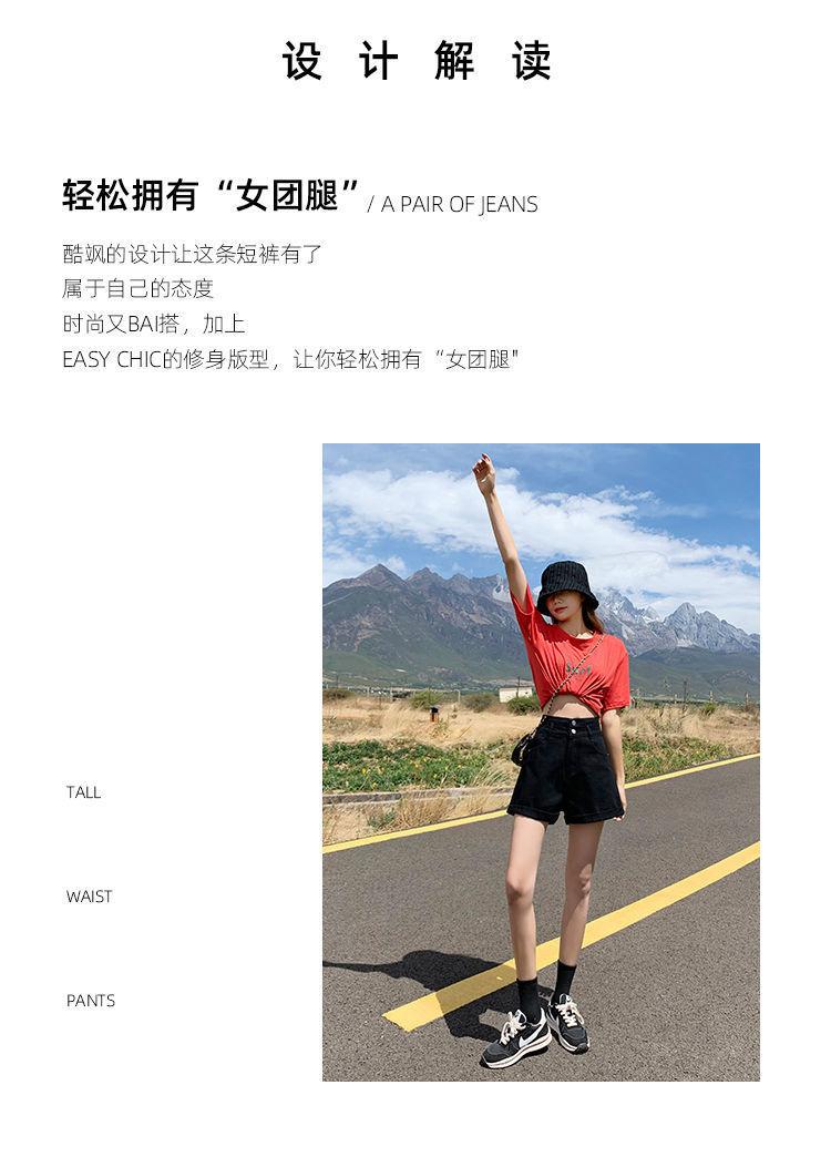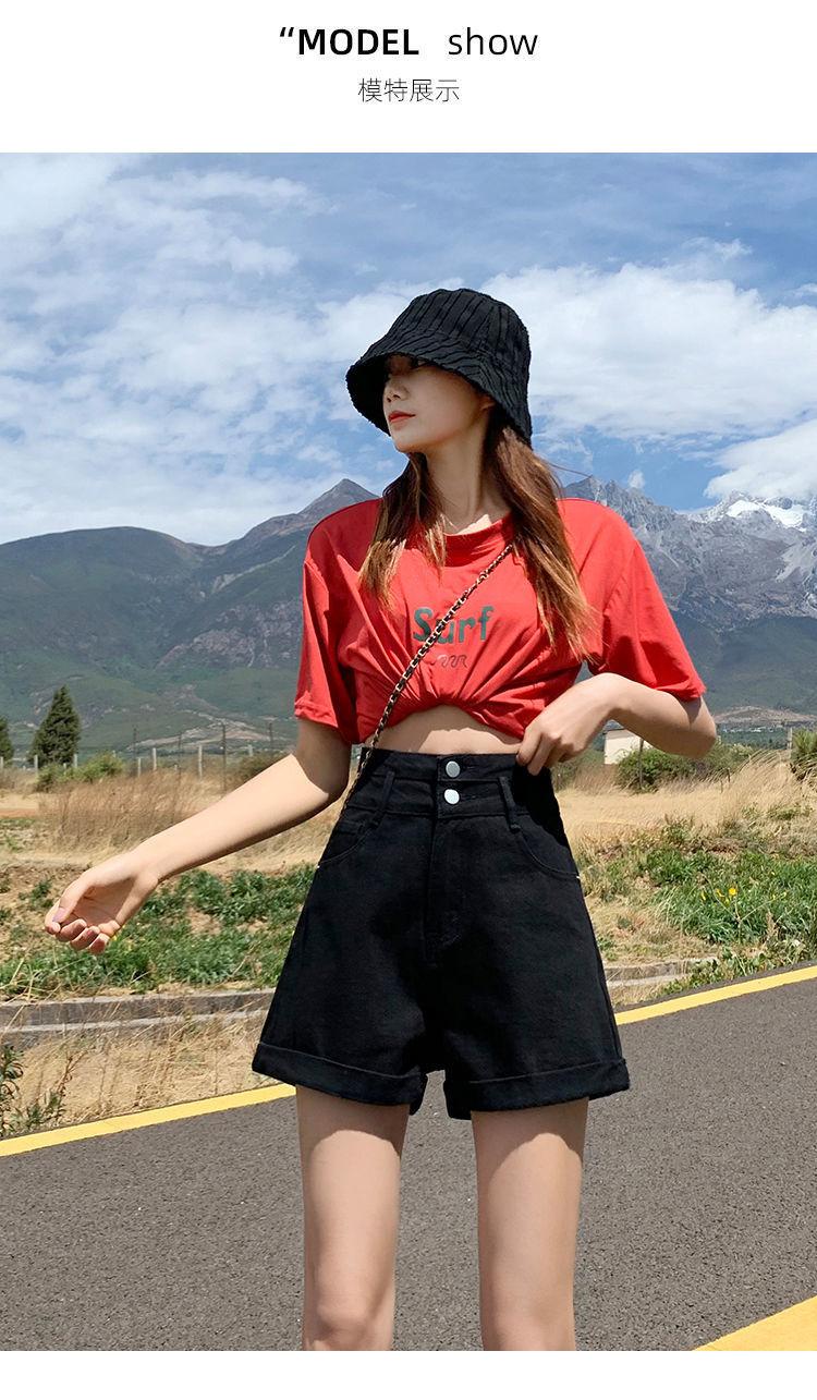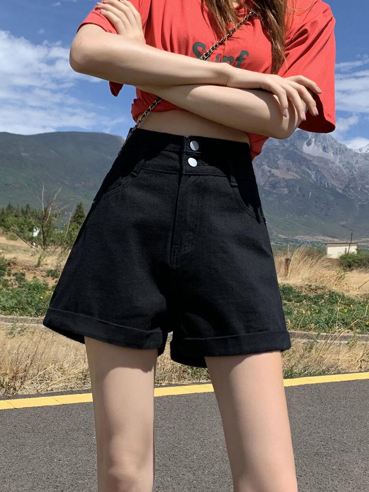 Cintura Shorts de mezclilla negros de mujer Verano 2022 Nuevo Look Slim Holgados Combinan con todo Pierna ancha Forma A Pantalones cortos de moda Ins