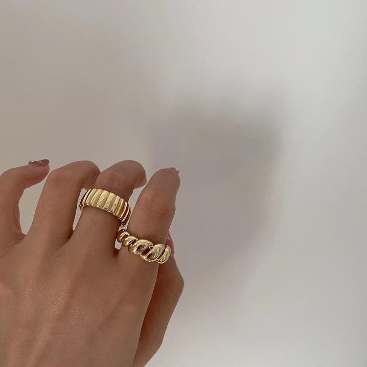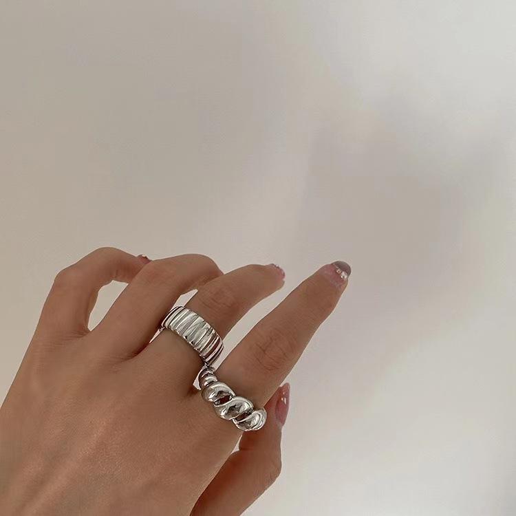 Anillo Cuerno Estilo Francés para Mujer Moda Retro Geométrico Patrón Vertical Anillo Abierto Hip Hop Plata S925 Anillo de Dedo Distintivo
