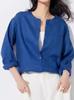 Camisa de manga larga con cuello redondo y botones para mujer, nueva camisa holgada de verano 2024, top de cuello redondo para mujer