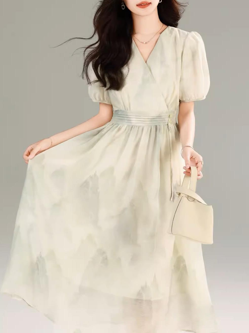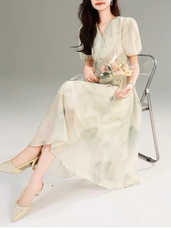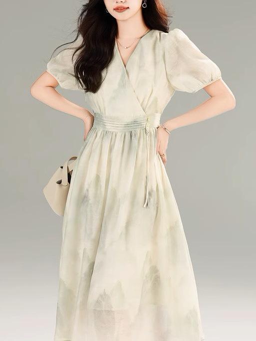 Nuevo vestido floral de estilo nacional chino para mujer, nuevo estilo de verano, suave, de alta gama, elegante, de moda, falda de longitud media
