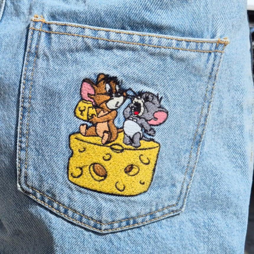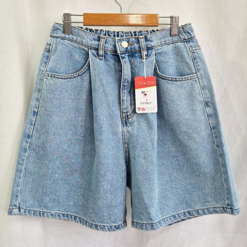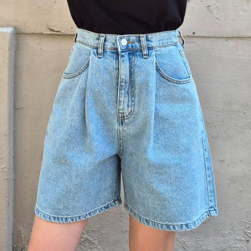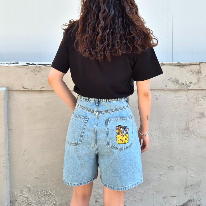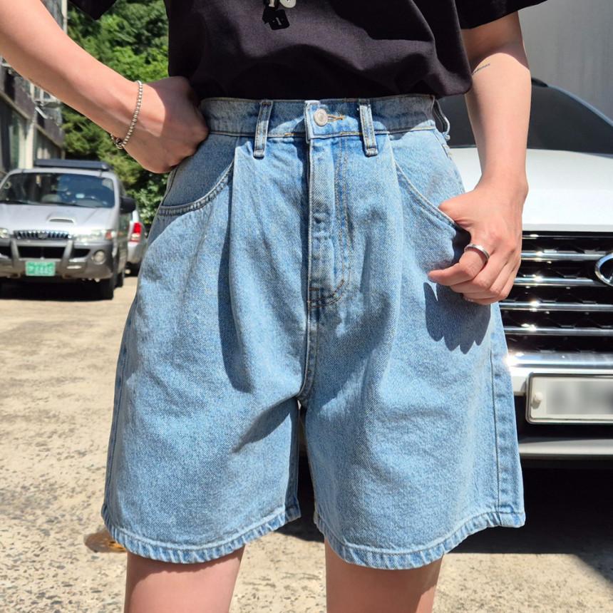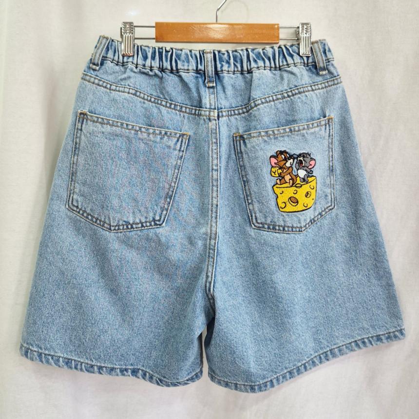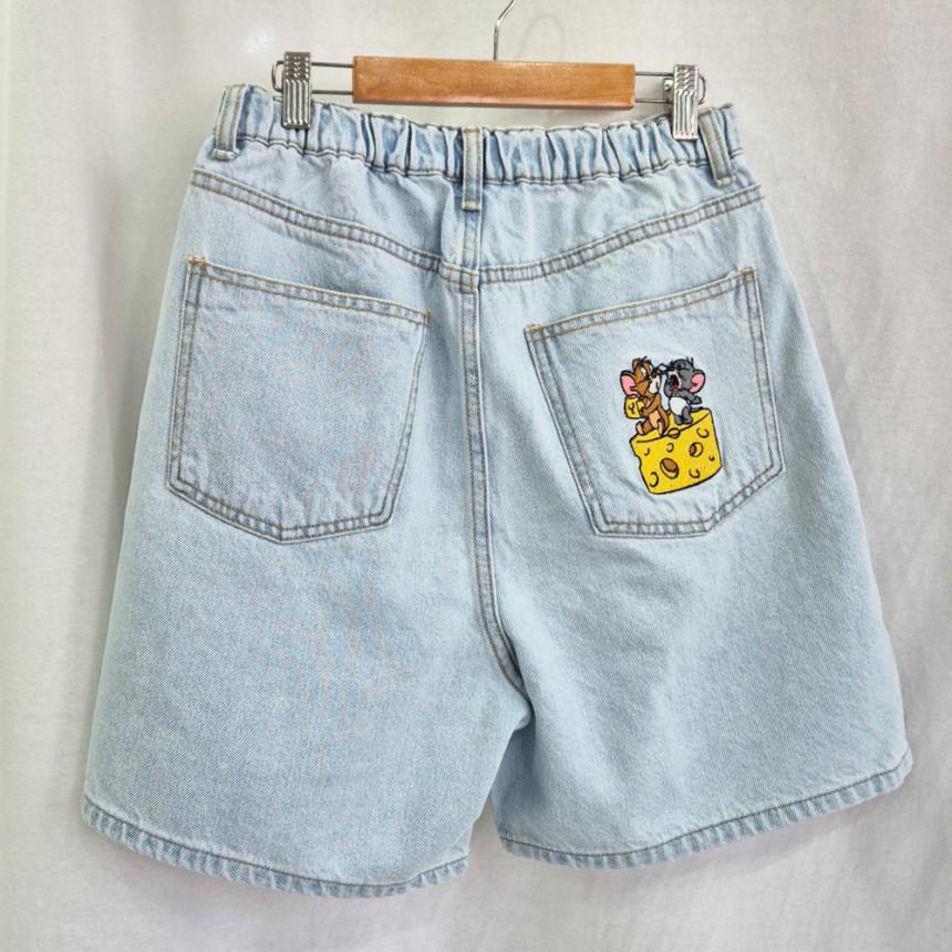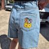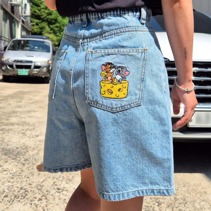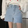 Pantalones cortos vaqueros Dongdaemun de verano de alta calidad para mujer, con cintura alta elástica, lavados y versátiles con dibujos animados.