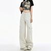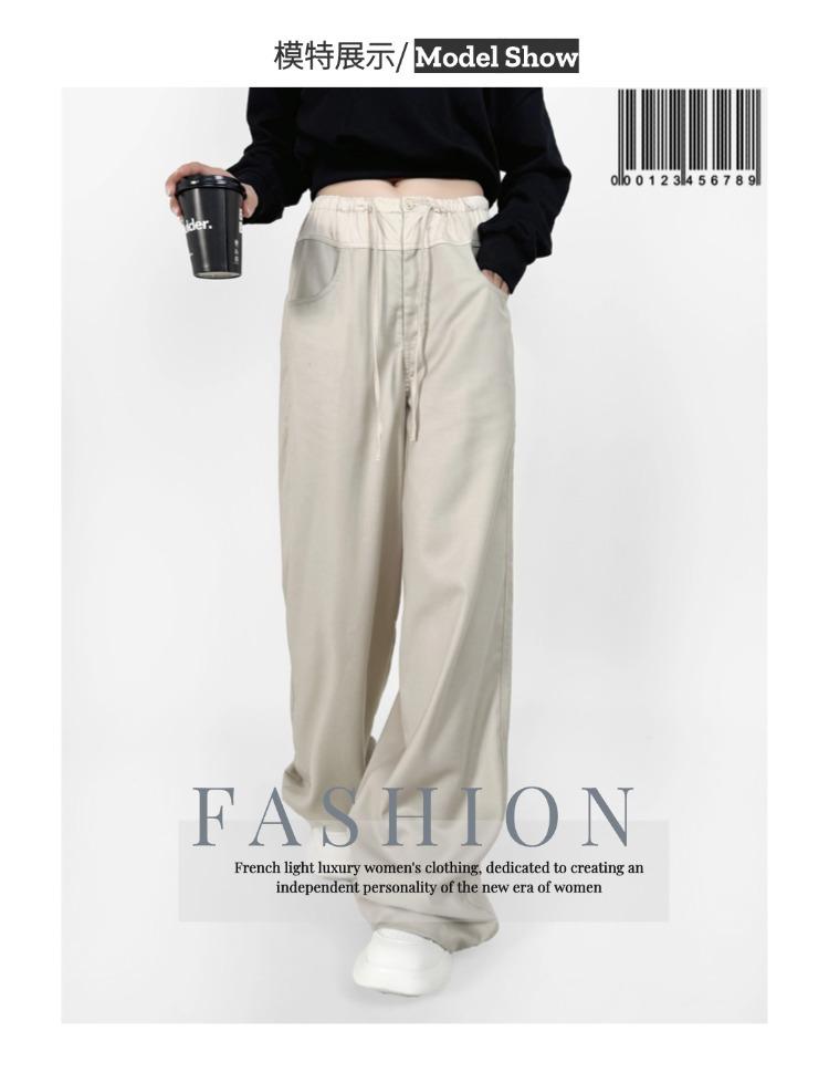 Pantalones de pierna ancha rectos sueltos con cintura elástica con cordón para mujer, nuevo otoño temprano 2024, pantalones casuales delgados X2419