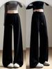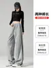 Pantalones deportivos grises de dos barras para mujer, de primavera y otoño, de cintura alta, rectos, de pierna ancha, informales, pequeños, holgados, a rayas