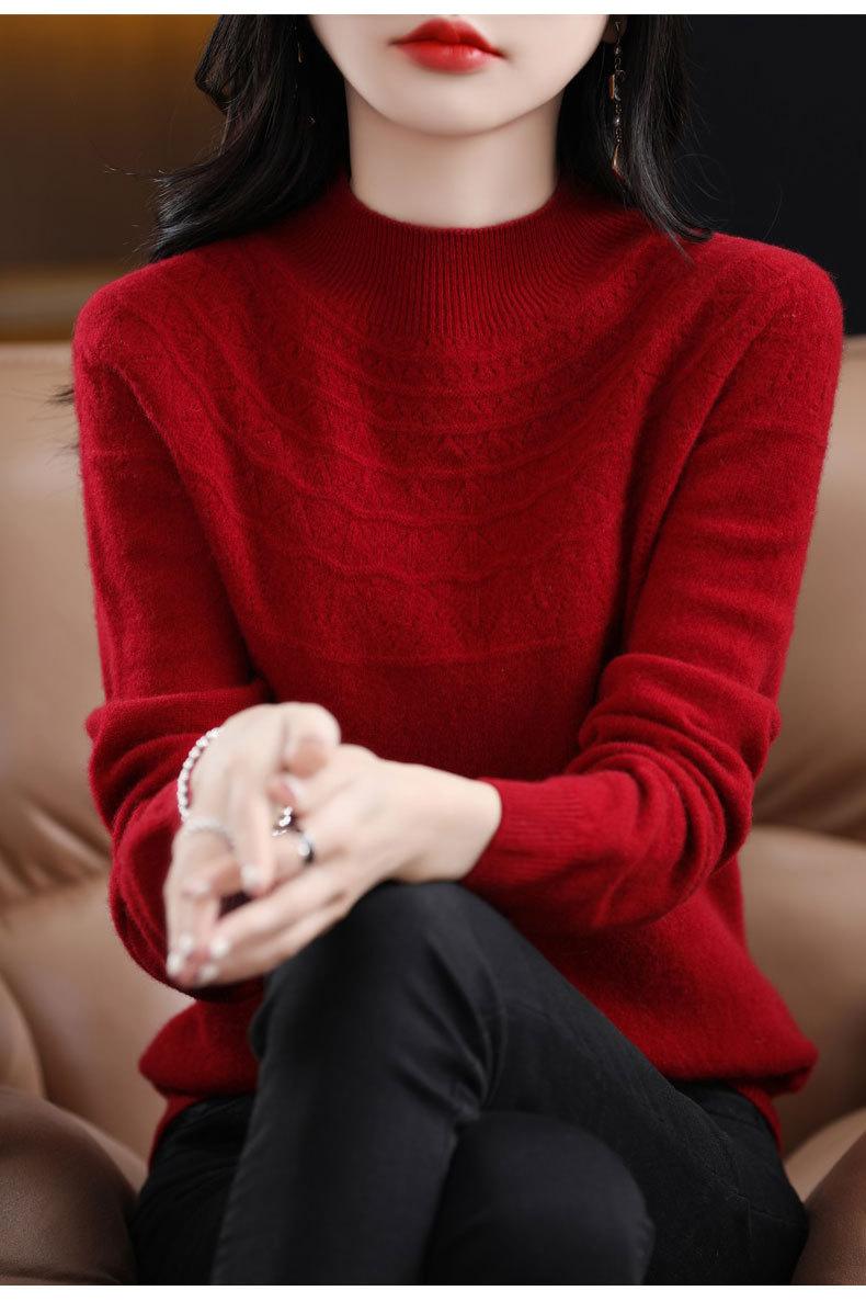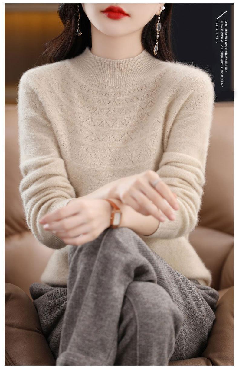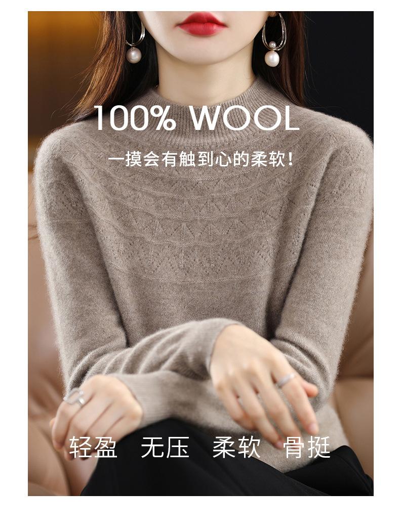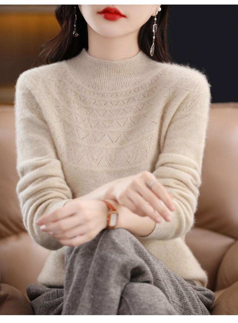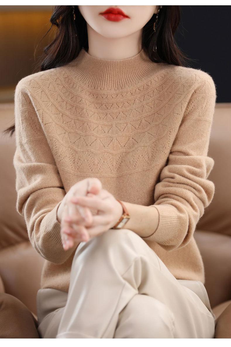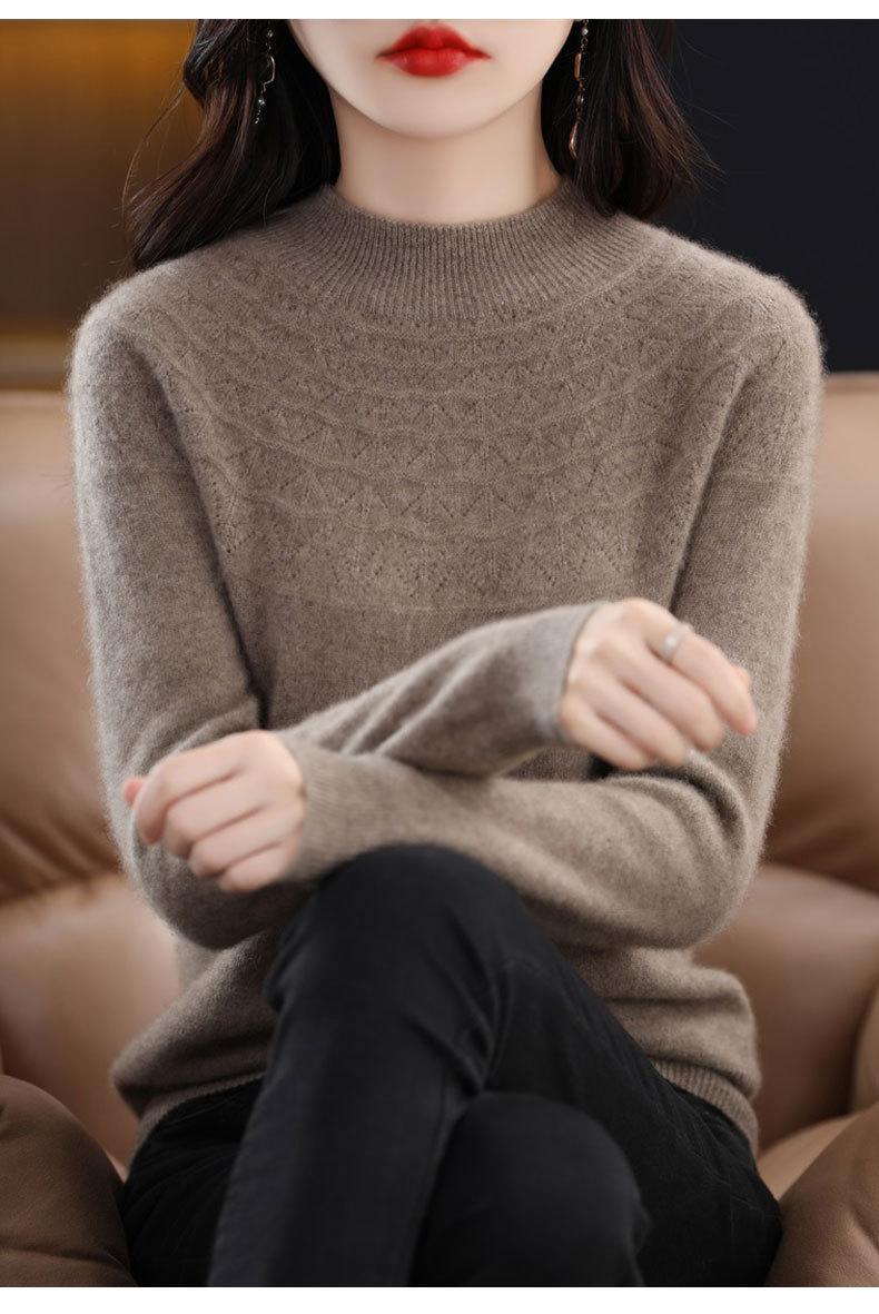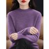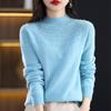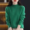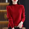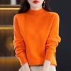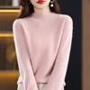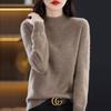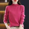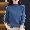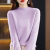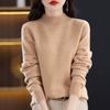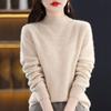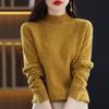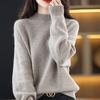 Suéter de lana pura para mujer, suéter holgado de manga larga, otoño e invierno 2024, con cuello medio alto
