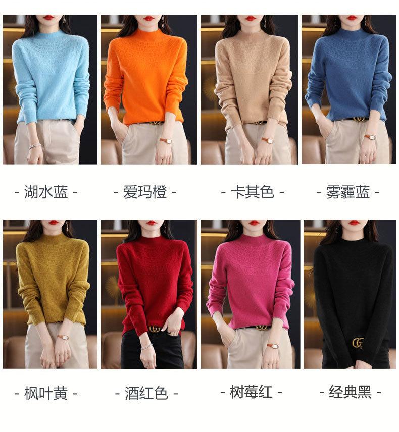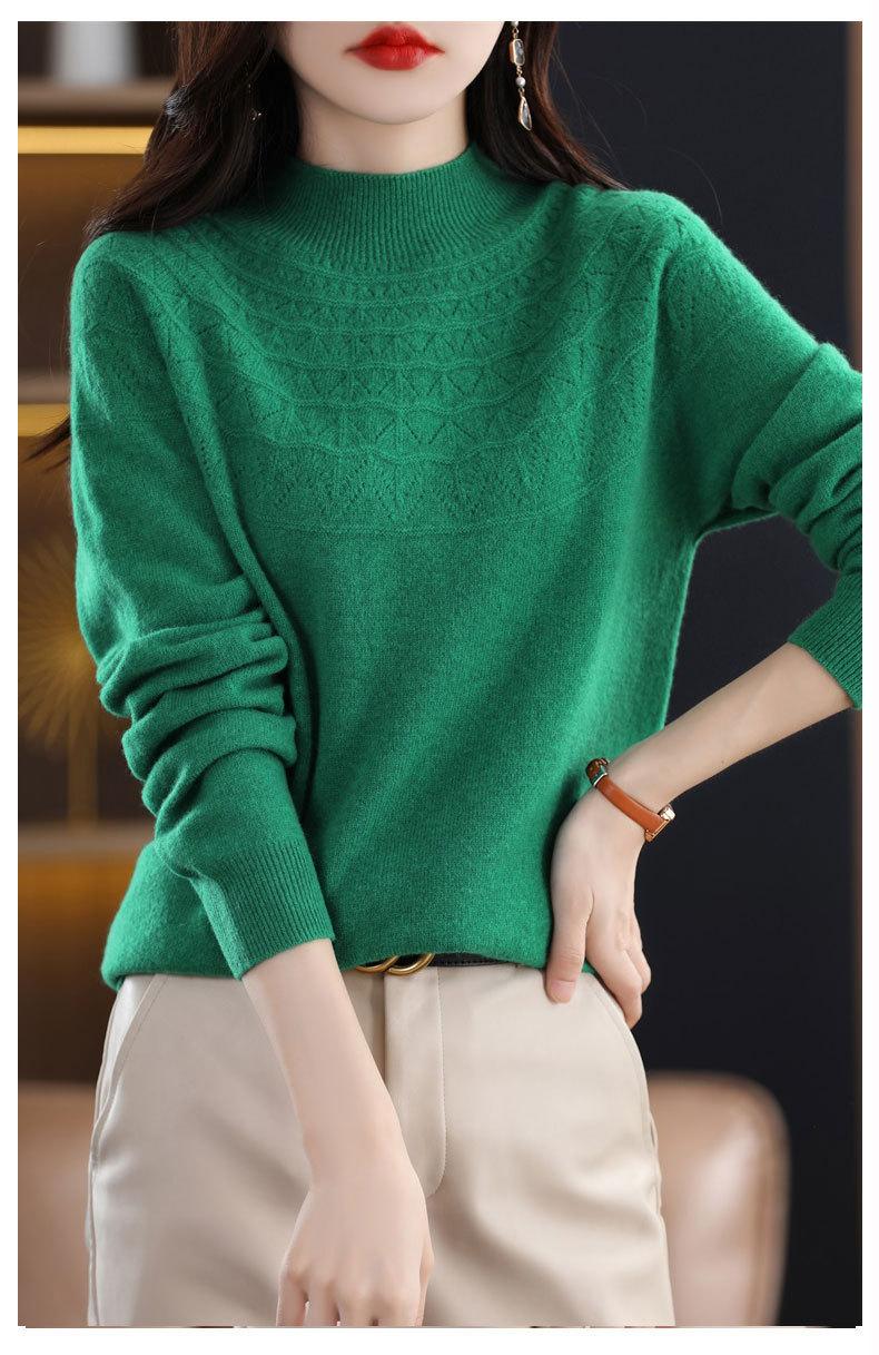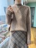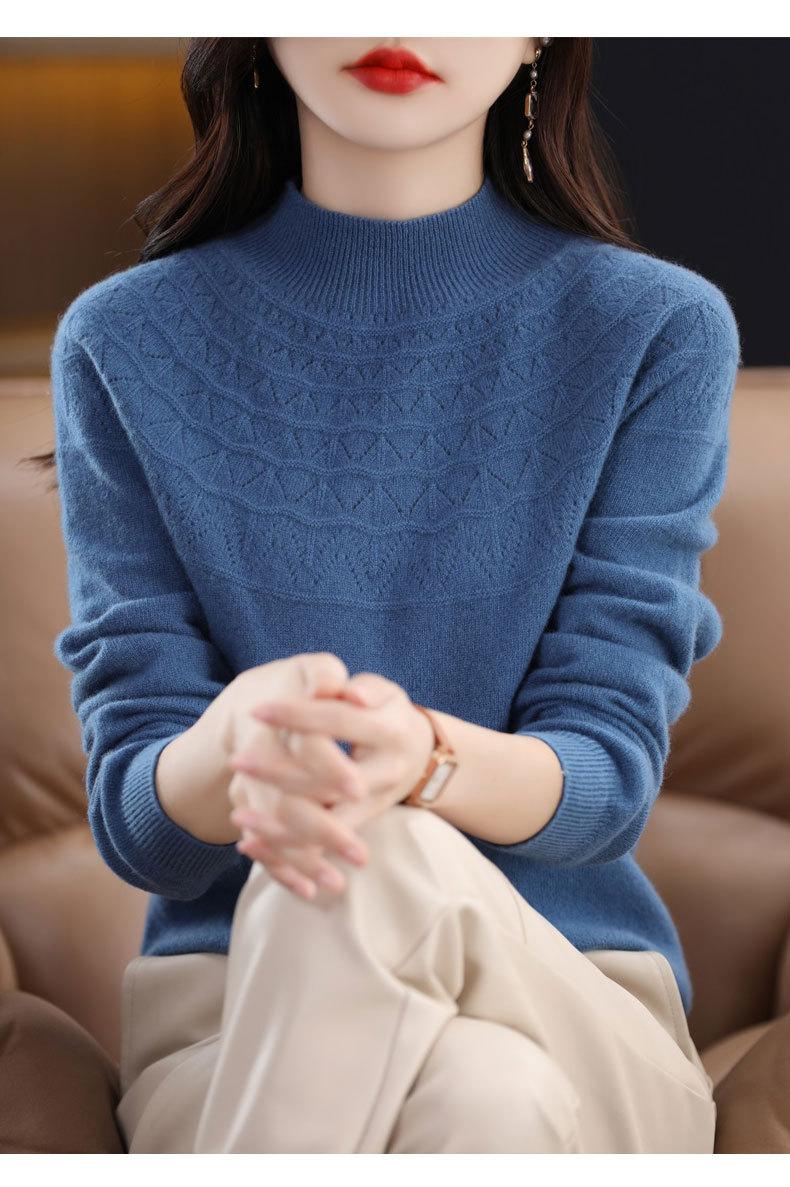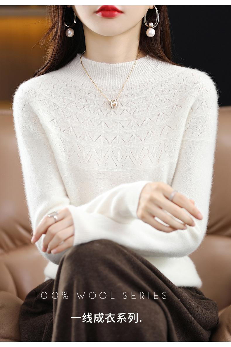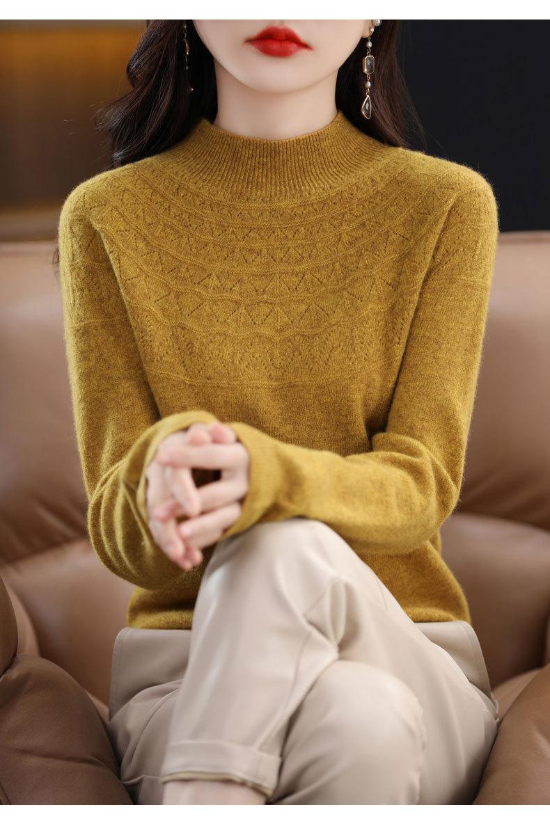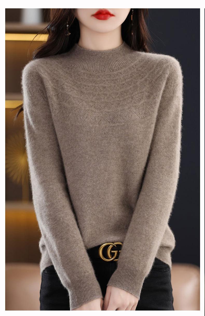 Suéter de lana pura para mujer, suéter holgado de manga larga, otoño e invierno 2024, con cuello medio alto